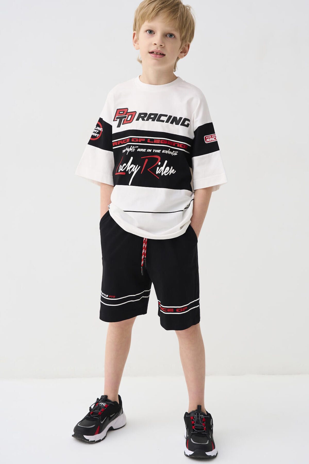 Комплект трикотажный для мальчиков: фуфайка (футболка), шорты PLAYTODAY, черный,белый