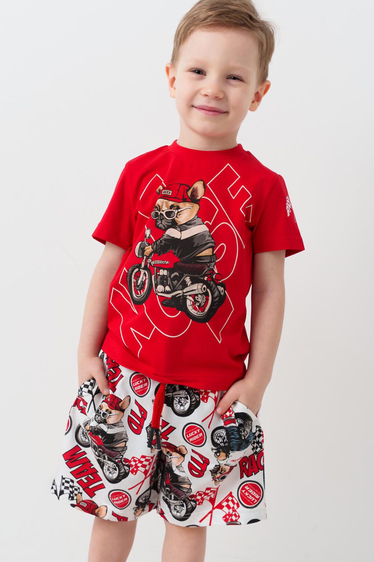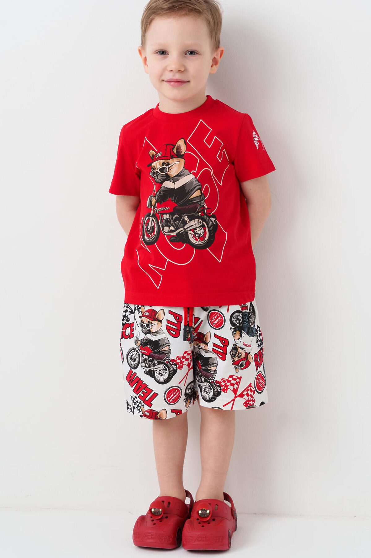 Комплект трикотажный для мальчиков: фуфайка (футболка), шорты PLAYTODAY, красный,белый,черный