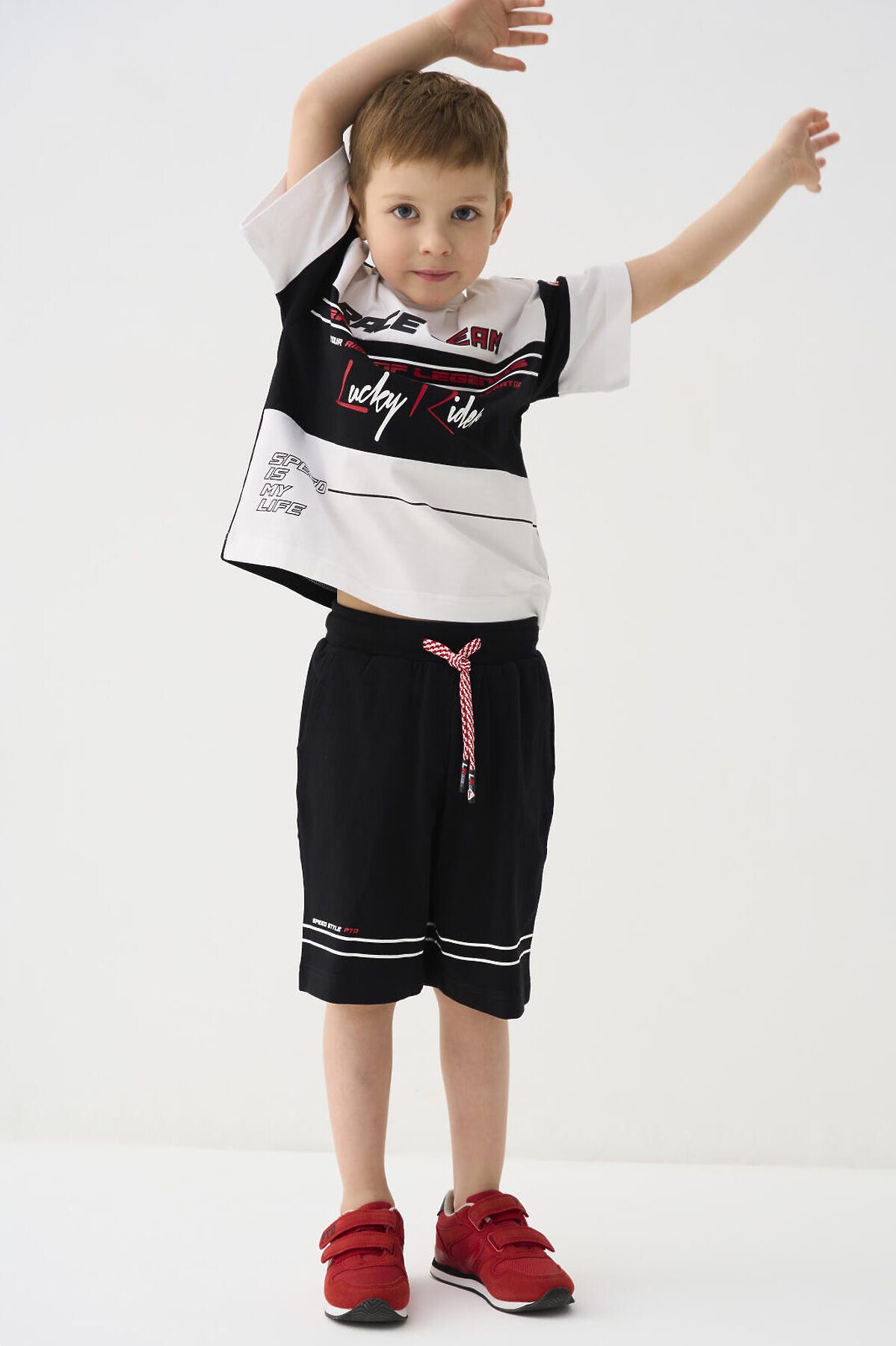 Комплект трикотажный для мальчиков: фуфайка (футболка), шорты PLAYTODAY, черный,белый