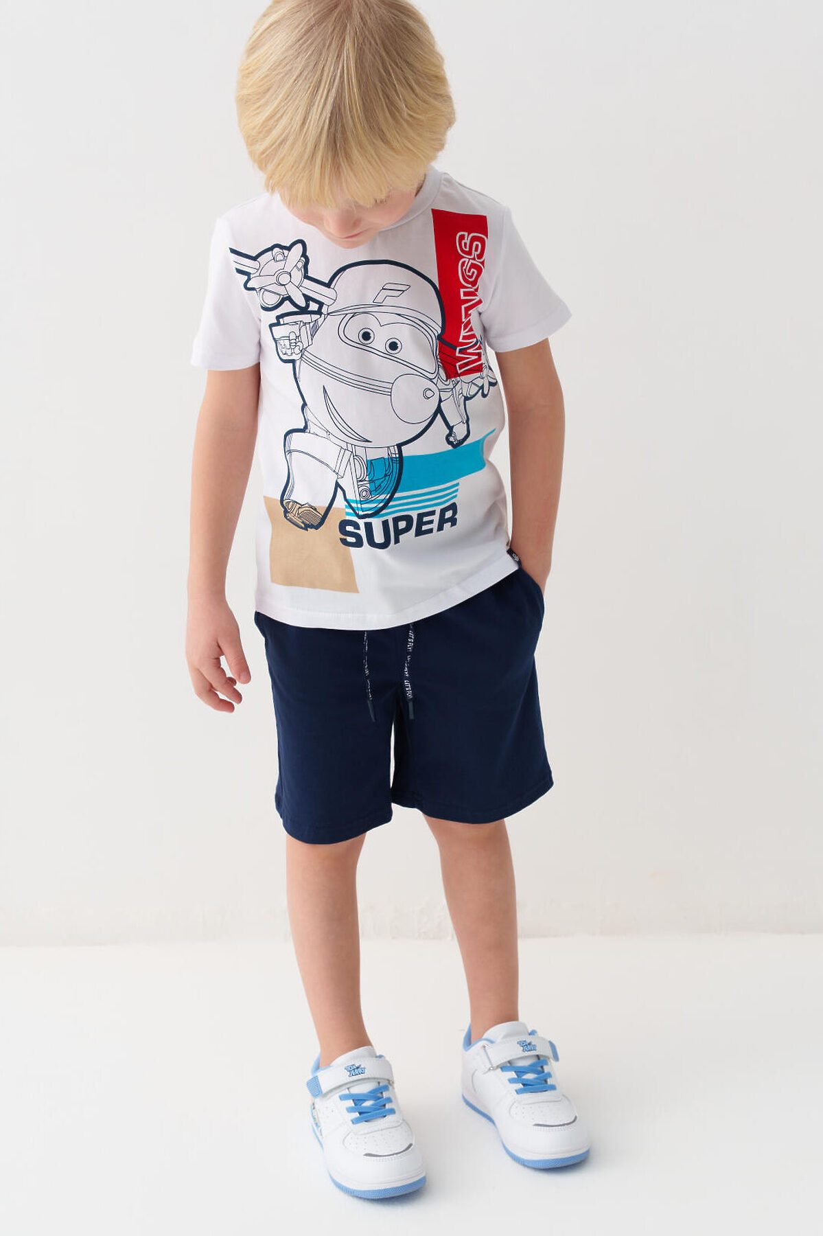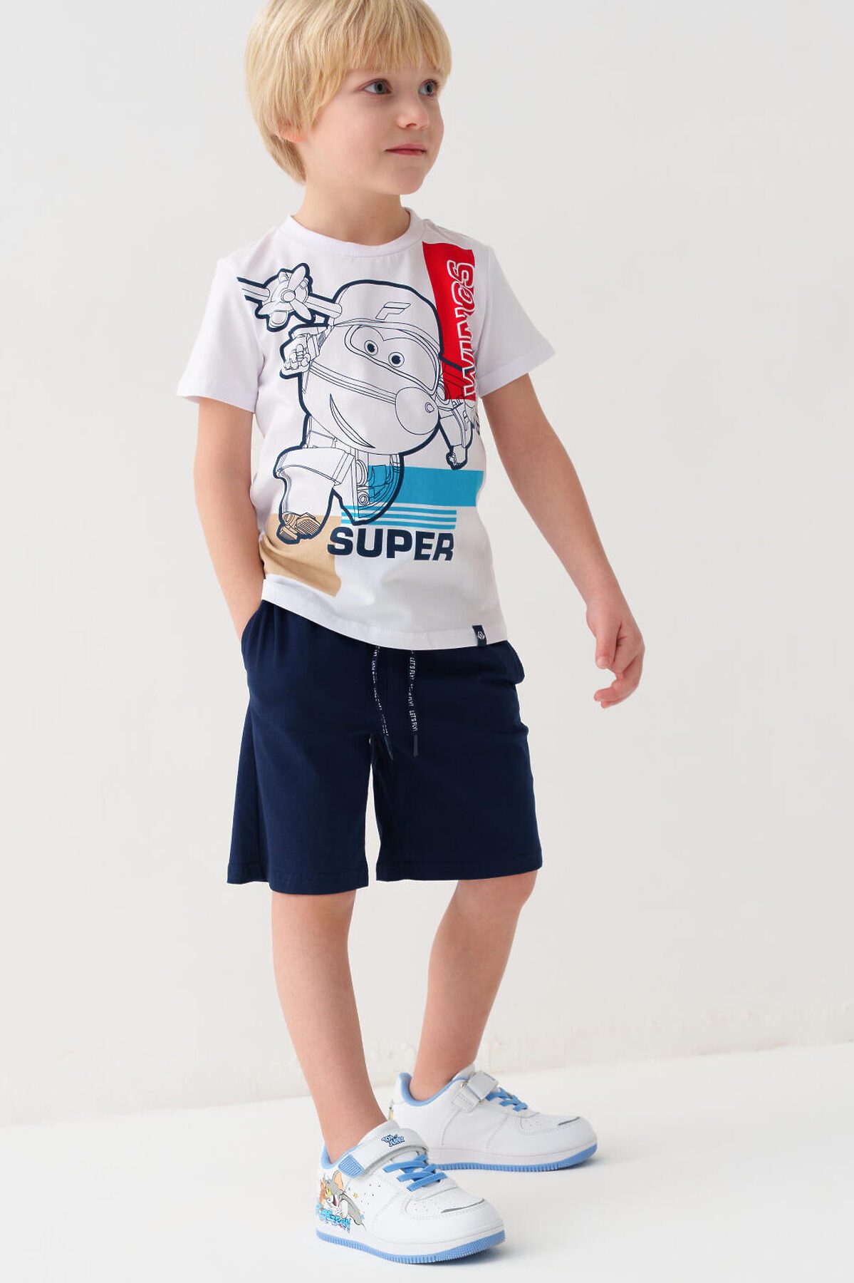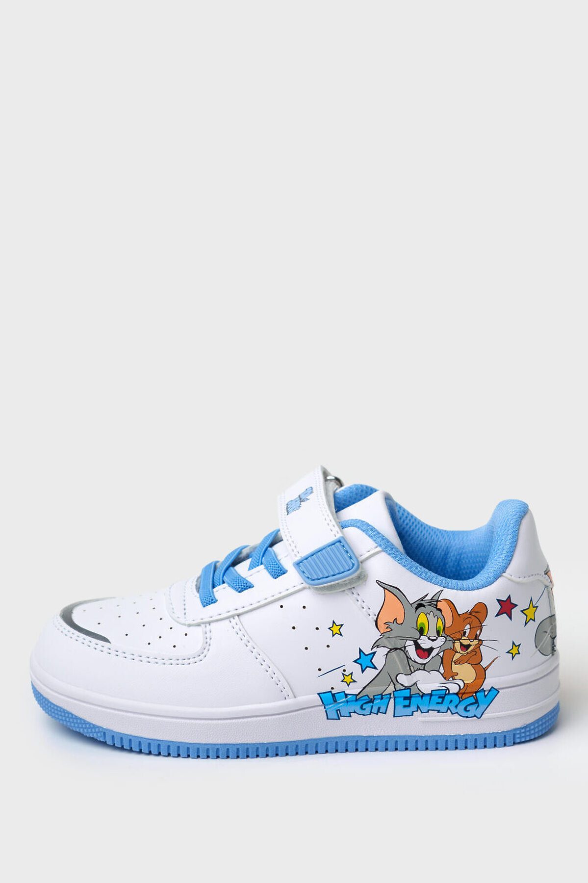Кеды детские для мальчика. Стильные кроссовки с оригинальным принтом с героями WARNER BROTHERS (Уорнер Бразерс): мышонок Jerry (Джерри) и кот Том (Tom). Кроссовки выполнены из искусственной кожи, обладающей высокими эксплуатационными свойствами. Модель имеет светоотражающие элементы В обуви стоит текстильная подкладка c высоким содержанием хлопка 80%, которая обладает высокой гигроскопичностью. Резиновые шнурки и липучка очень удобны для детей при обувании. Профилированная съемная стелька из натуральной кожи с анатомической формой подсводника обеспечивает правильную нагрузку на стопу. Формоустойчивый задник поддерживает стопу в правильном положении. Эргономичная форма колодки обеспечивает правильное формирование стопы ребенка. Подошва из ТПР гибкая, не скользит и устойчива к истиранию.