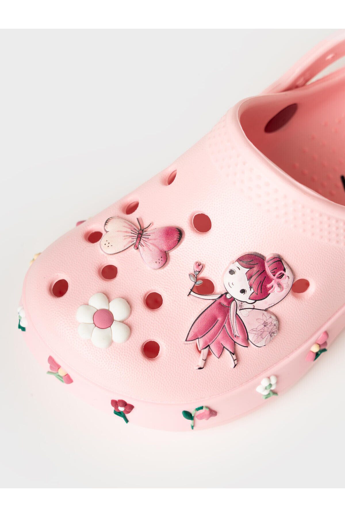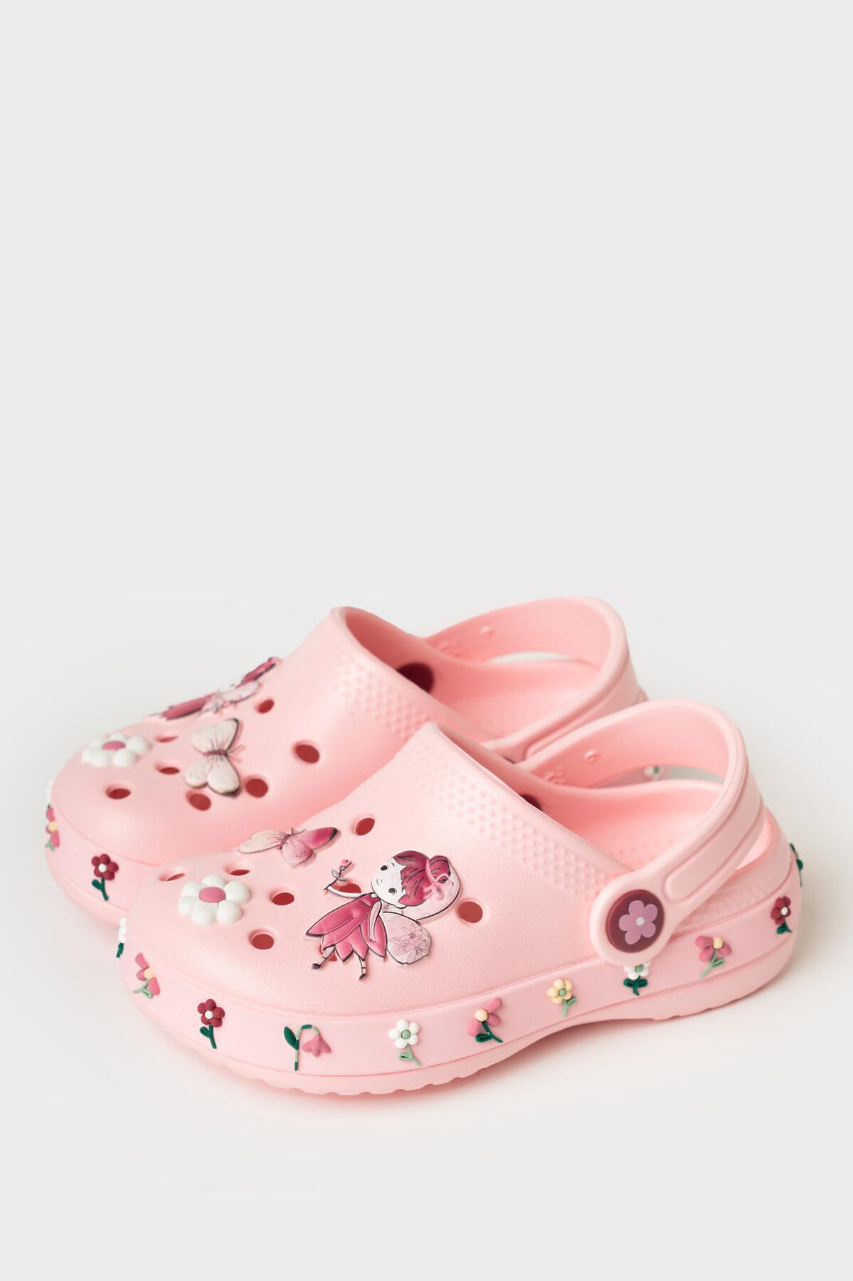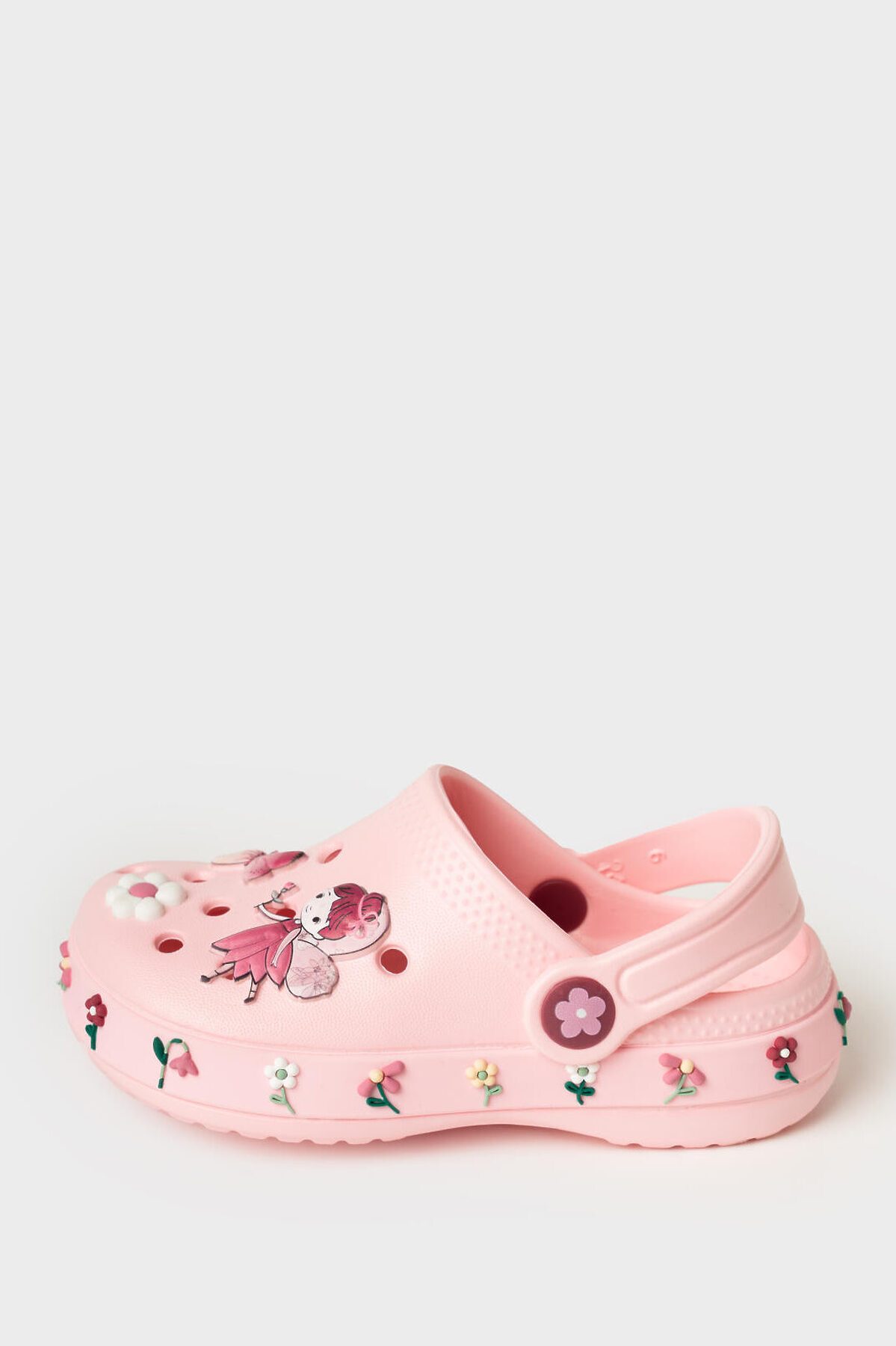 Сабо детские для девочки. Сабо из облегченного и прочного ЭВА. Материал хорошо моется. Объемный рисунок на правой и левой полупарах рассказывают нам целую историю из мира фей. Форма модели учитывает эргономику стопы. Модель имеет перекидной ремешок для лучшей фиксации обуви на ноге. Благодаря вентиляционным отверстиям сабо проветриваются, ноги ребенка дышат и не потеют. *Размер на подошве может отличаться от этикетки. Сверяйтесь с информацией на этикетке.