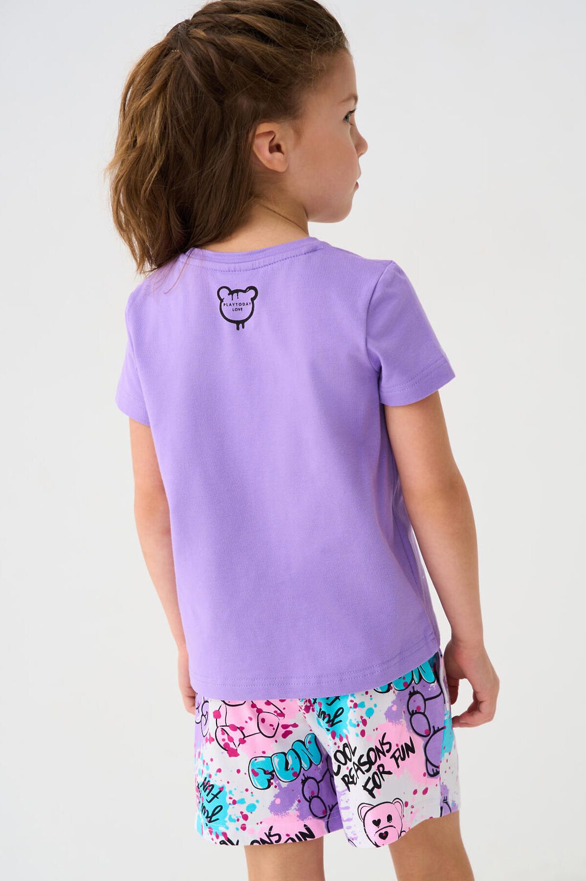 Комплект трикотажный для девочек: фуфайка (футболка), шорты PLAYTODAY, разноцветный