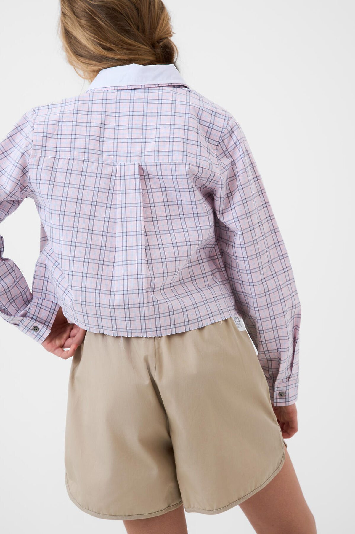 Шорты для девочки подростка. Модель имеет длину мини и комфортную посадку за счёт эластичного пояса и декоративного шнура с узором. По бокам — карманы на молниях. Низ фигурный, с закруглениями. Сзади — небольшая декоративная нашивка. Выполнена из дышащего, хлопкового твилла.