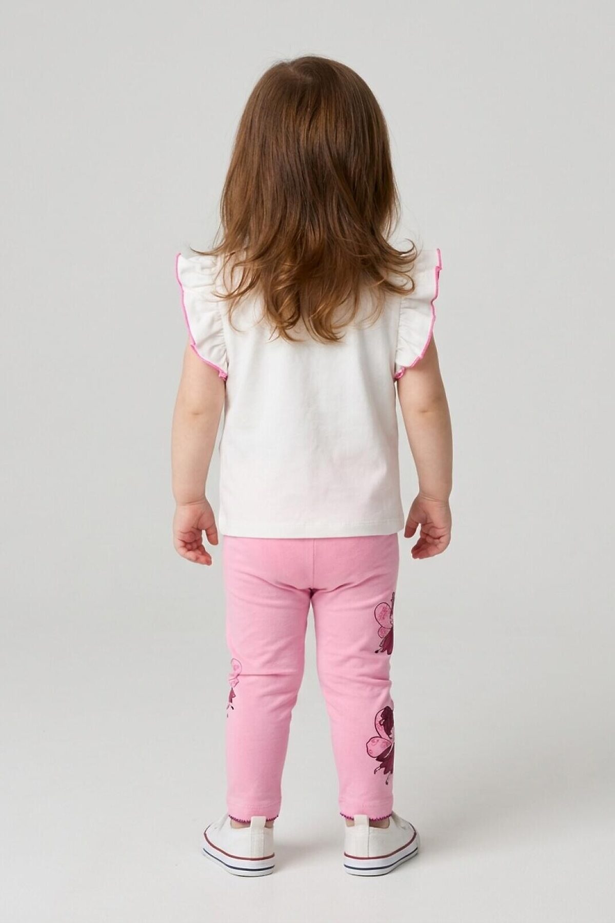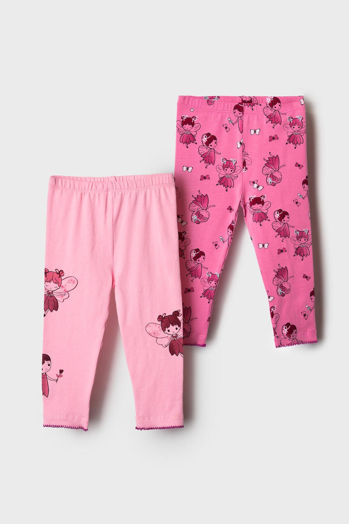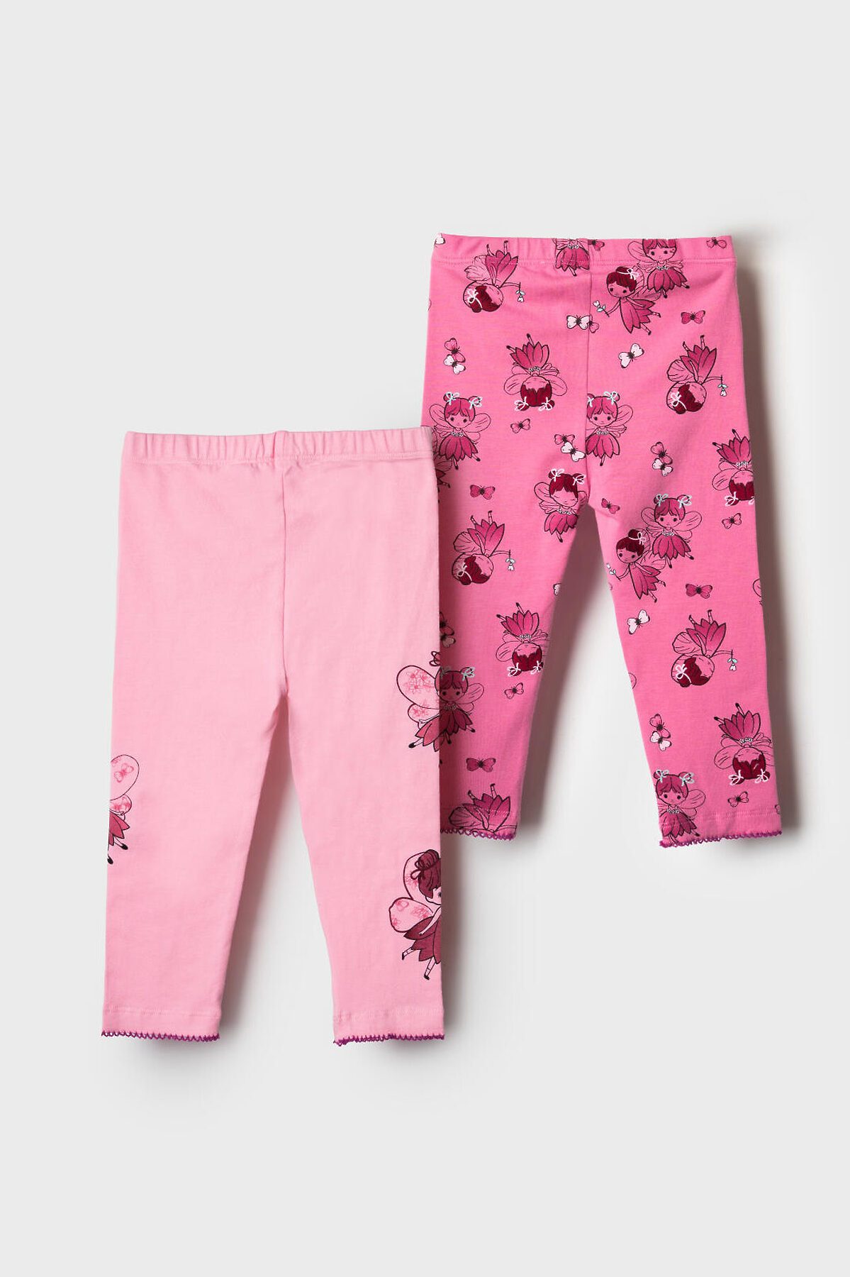 Набор детских легинсов для девочки. Комплект состоит из двух пар длинных легинсов. Принт с цветами в нежно-розовых оттенках. Обе модели имеют высокую посадку и эластичный пояс, который хорошо фиксирует изделие на талии. Материал - мягкий, хлопковый трикотаж.