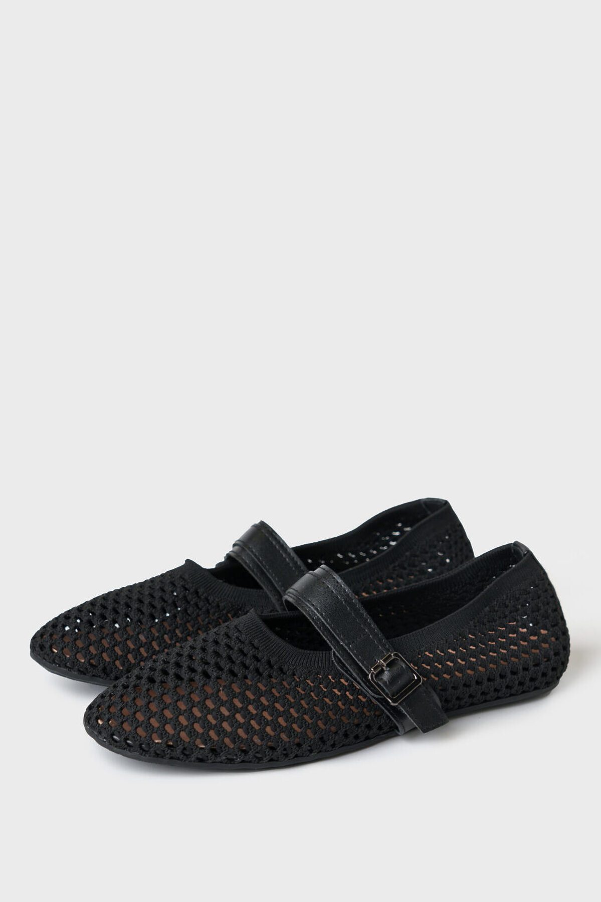 Трендовые балетки из вязаного сетчатого трикотажа . Туфли не имеют подкладки, поэтому идеально подходят для носки в жаркие летние дни. Стелька - натуральная ламинированная кожа. Балетки имеют чересподъемный ремешок. Пряжку не надо расстёгивать, она на резинке. Туфли имеют очень легкую и гибкую резиновую подошву.