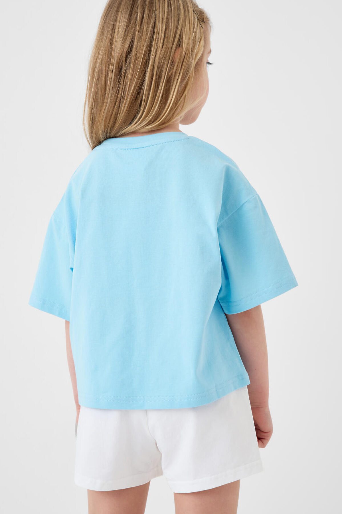 Комплект трикотажный для девочек: фуфайка (футболка), шорты PLAYTODAY, голубой,белый
