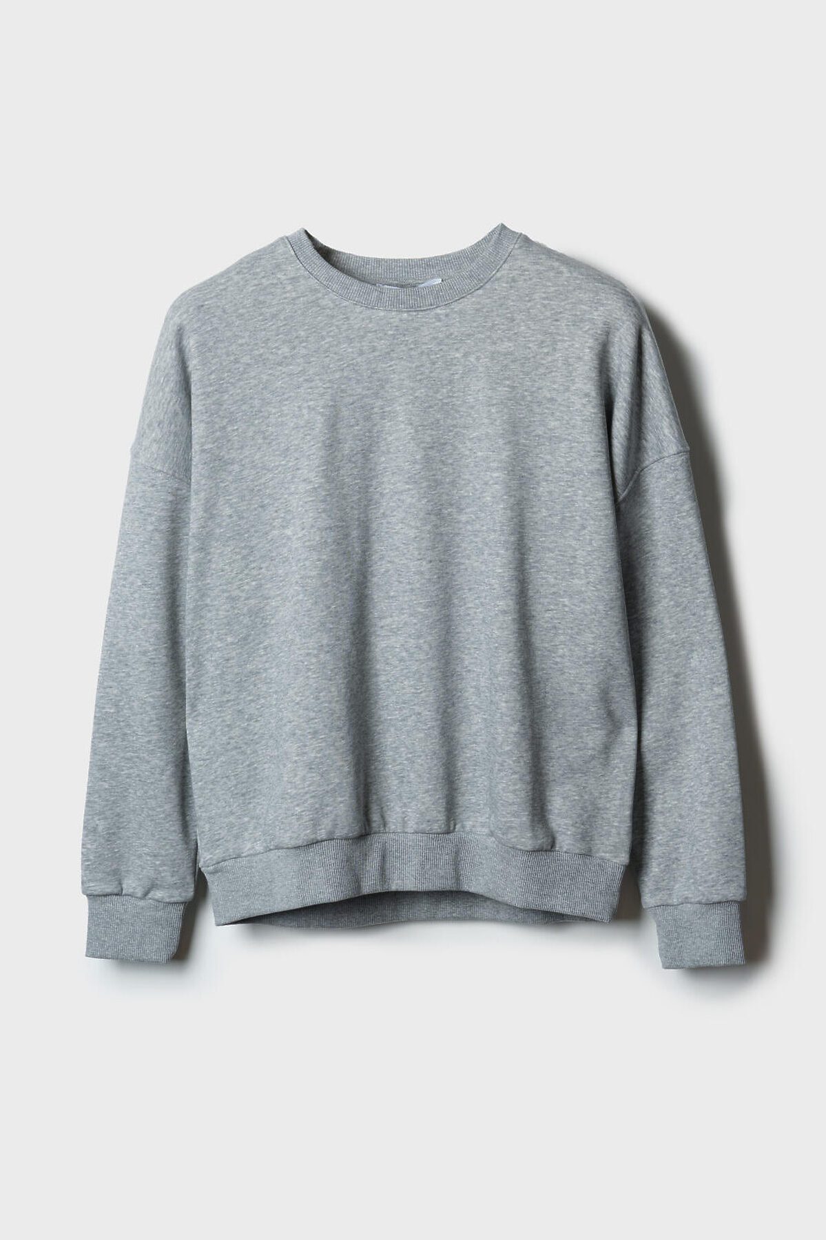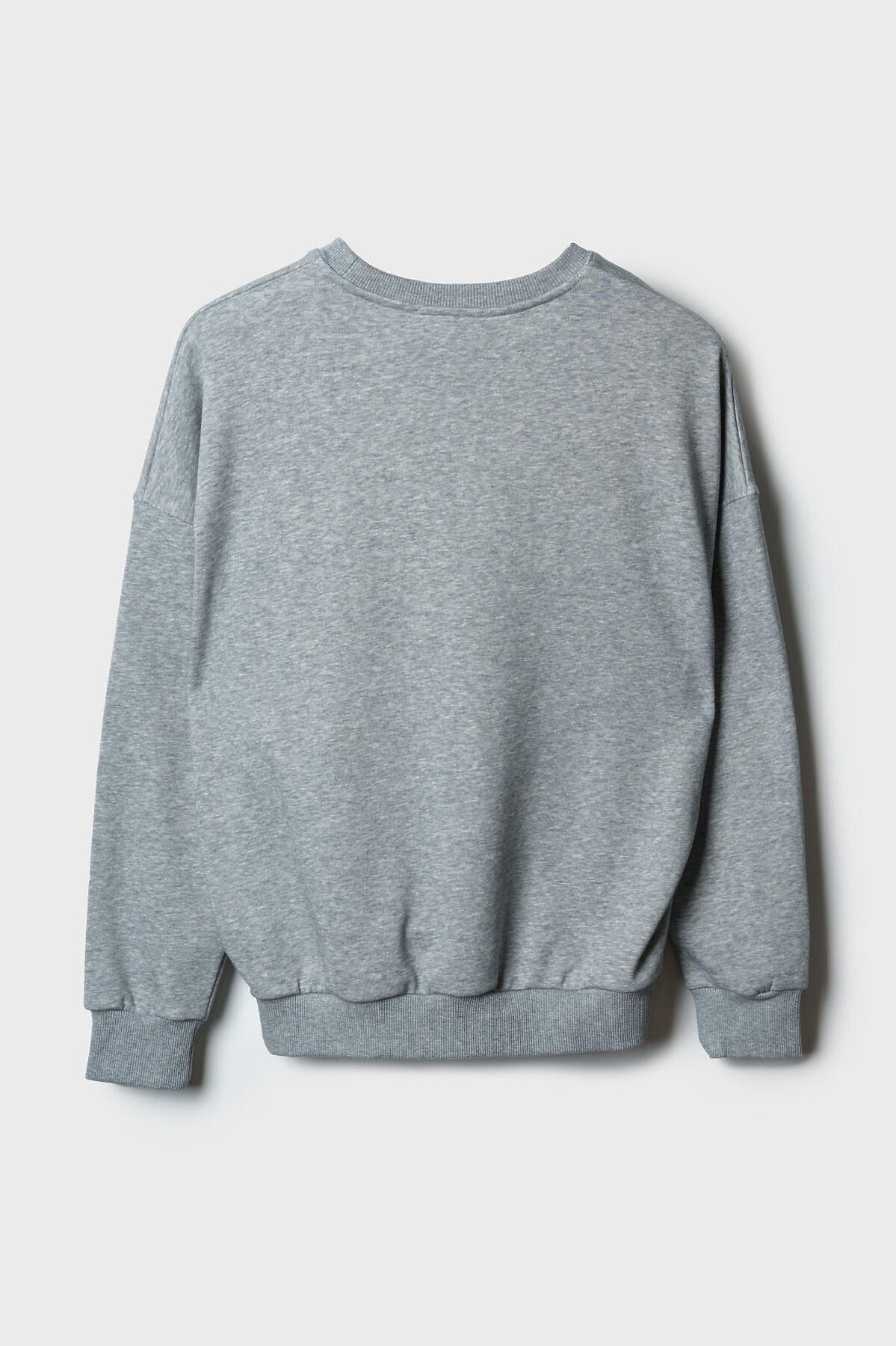 Женский серый свитшот оверсайз. Выполнен из хлопкового футера без начеса. Горловина, манжеты и низ изделия выполнены из эластичного риба, что обеспечивает комфортную посадку.