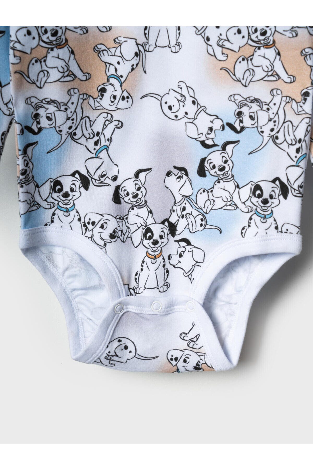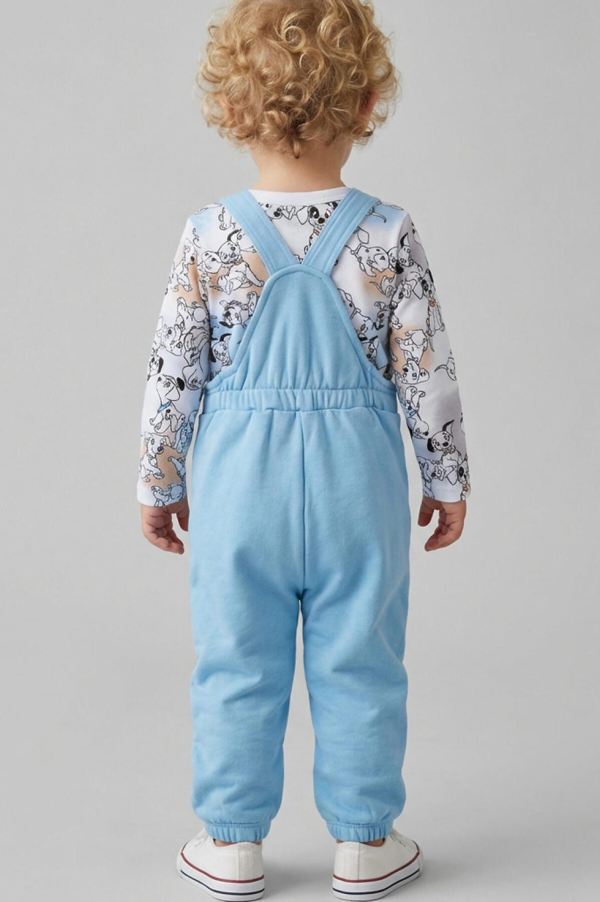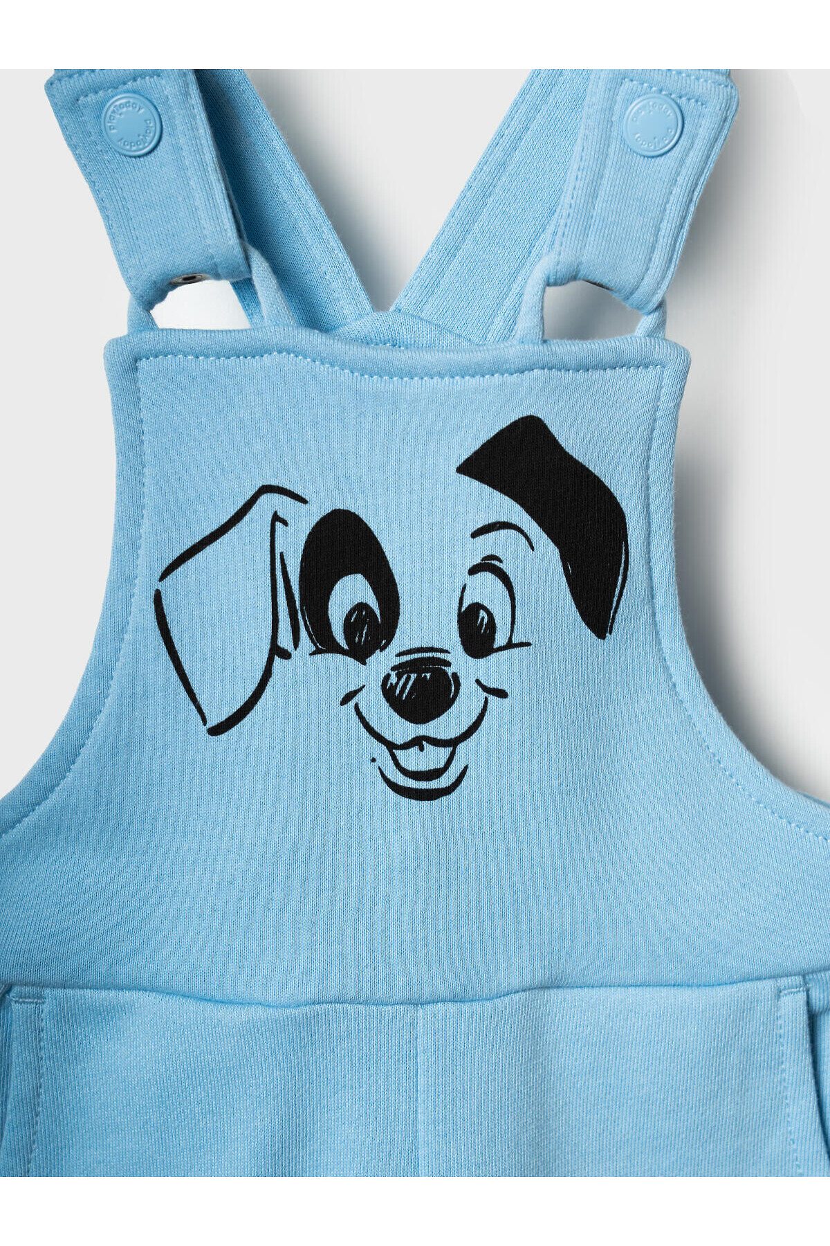 Комплект детский для мальчика. Состоит из двух изделий: боди с длинным рукавом и удобный полукомбинезон. Боди выполнен из мягкого хлопкового трикотажа интерлок с ярким принтом героев «101 далматинец», с застёжкой на кнопках внизу для легкого переодевания. У боди два ряда кнопок - растет вместе с малышом. Полукомбинезон — однотонный хлопковый, на широких перекрестных бретелях, с резинкой на спинке и удобными карманами. На груди размещён крупный рисунок мордочки щенка, а сбоку — милые следы лапок.