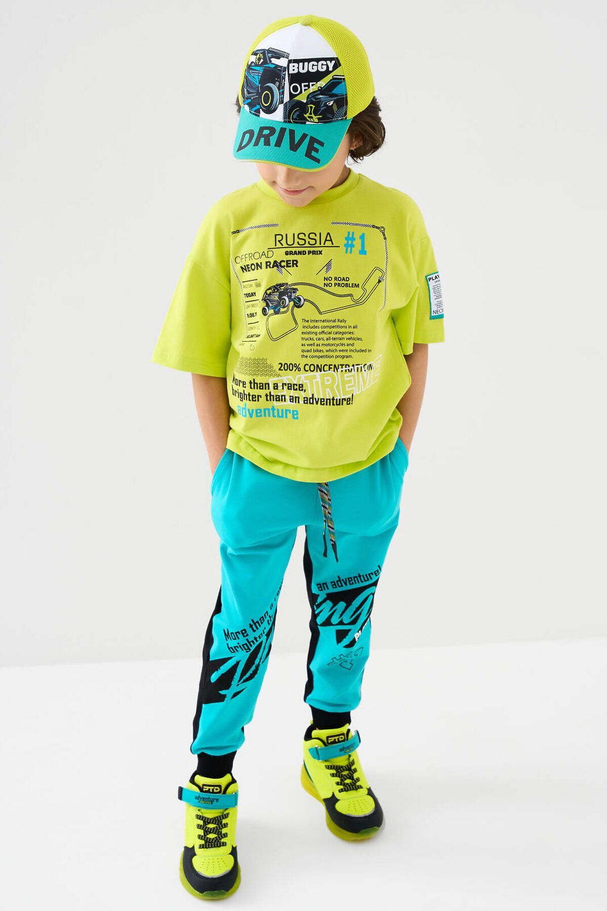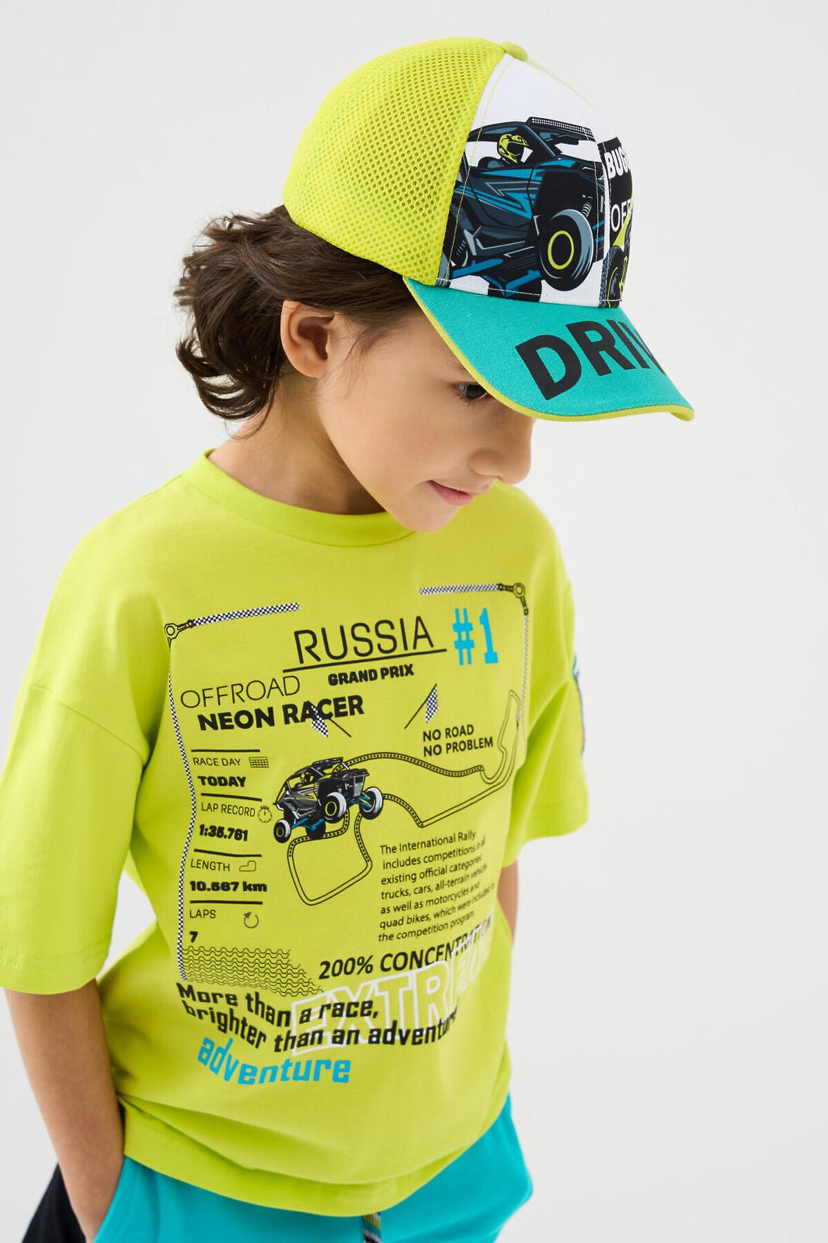 Детская бейсболка для мальчика. Выполнена из текстильного хлопкового материала, имеет изогнутый козырёк. На передней части — крупный принт. Сзади — удобная застёжка на липучке с регулировкой по размеру.