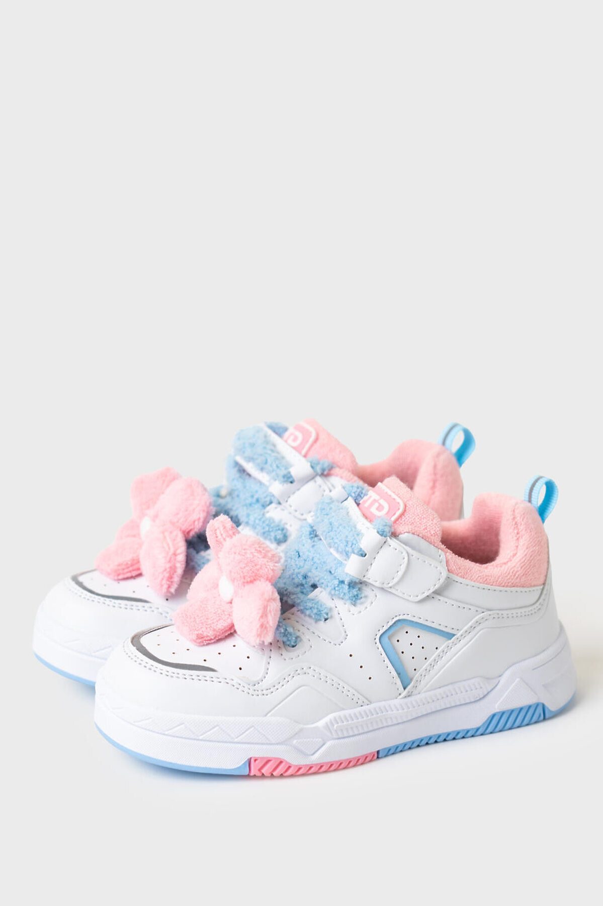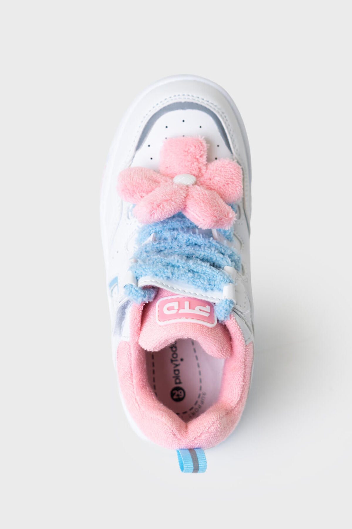 Трендовые кеды для девочки. Кроссовки выполнены из искусственной кожи с высокими износостойкими свойствами и отделаны текстилем из махры. Декор - большой цветок. Кроссовки с оригинальными махровыми шнурками, продетыми через липучку. Поэтому обувь легко обувать . В носочной части обуви стоит текстильная подкладка c высоким содержанием хлопка 80%, которая обладает высокой гигроскопичностью. В пяточной части обуви текстильная подкладка обладает хорошей износостойкостью. Профилированная съемная стелька из натуральной кожи с анатомической формой подсводника обеспечивает правильную нагрузку на стопу. Формоустойчивый задник поддерживает стопу в правильном положении. Эргономичная форма колодки обеспечивает правильное формирование стопы ребенка. Подошва из ТПР гибкая, не скользит и устойчива к истиранию.