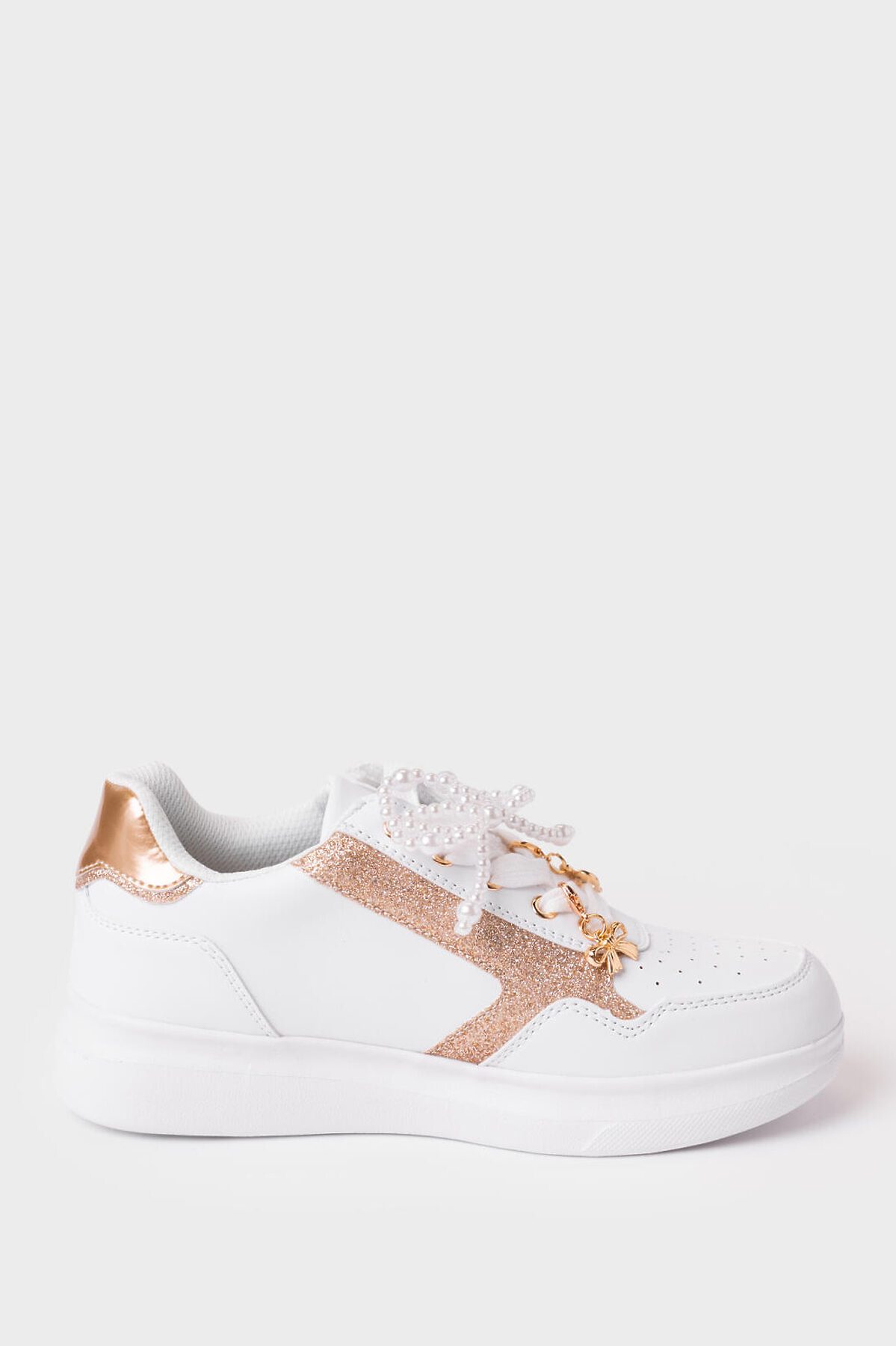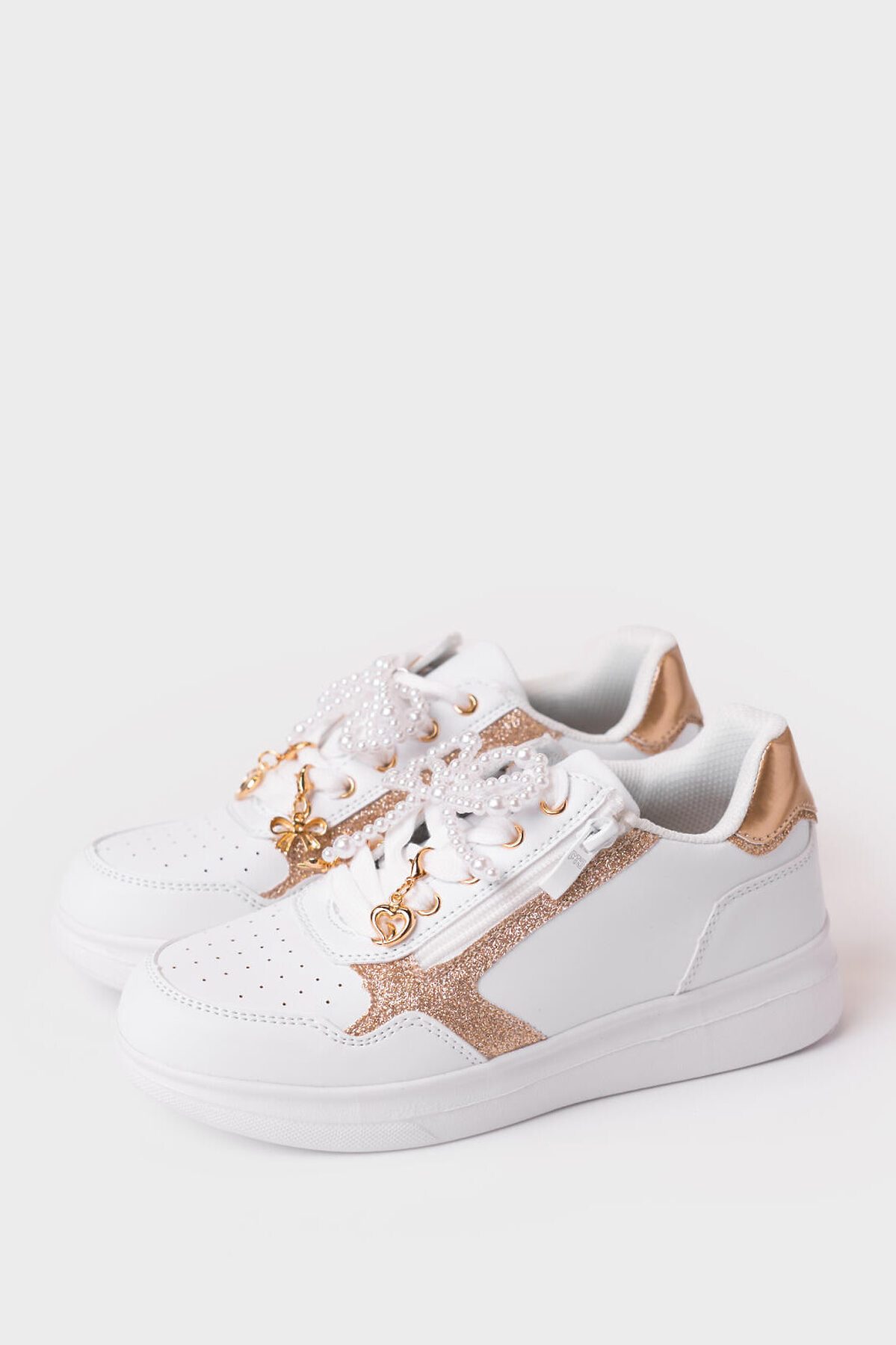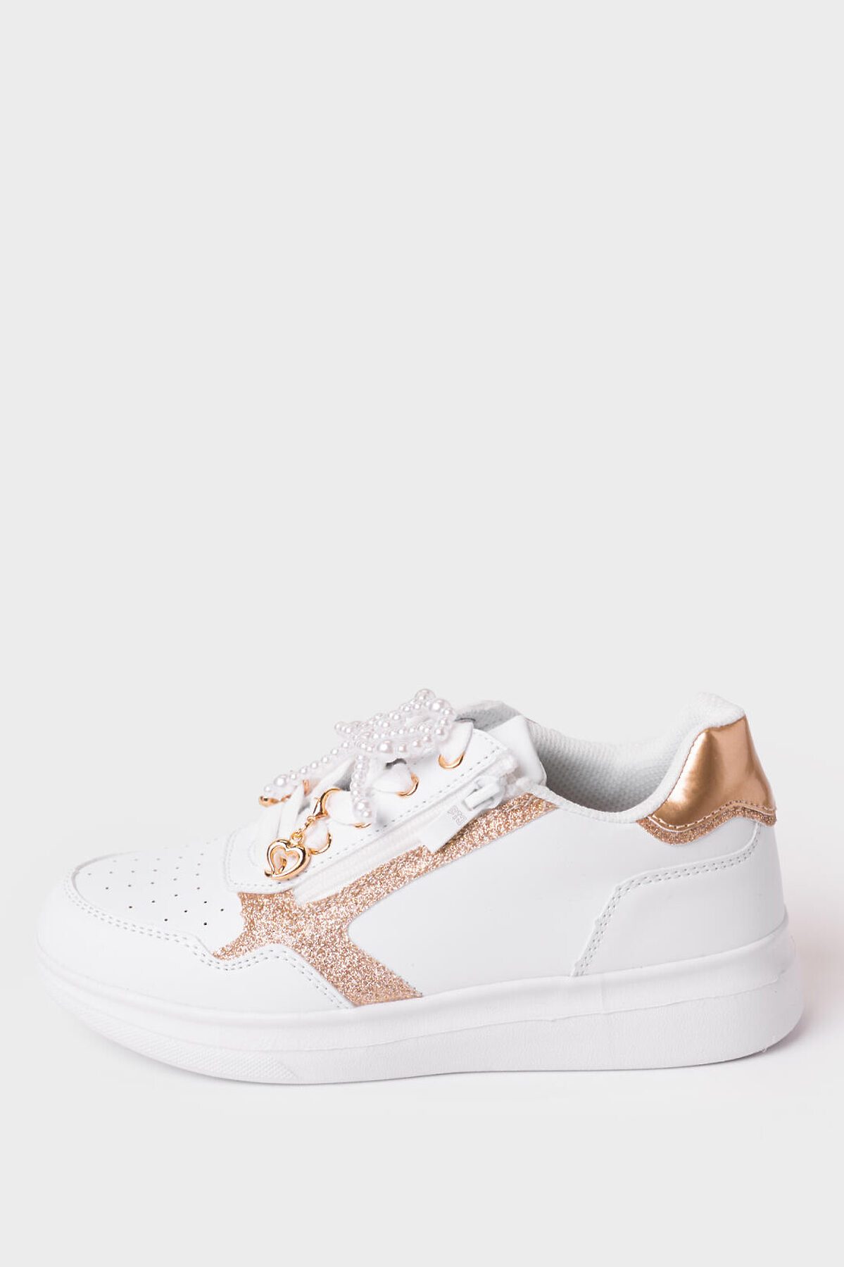 Классические белые кроссовки из искусственной кожи для девочки подростка. Практичный дизайн с боковой молнией делает их стильным и функциональным выбором на каждый день. Обувь декорирована маленькими симпатичными навесами на шнурках. Верх обуви выполнен из искусственной кожи с перфорацией в носочной части. В носочной части обуви стоит текстильная подкладка c высоким содержанием хлопка 80%, которая обладает высокой гигроскопичностью. В пяточной части обуви текстильная подкладка обладает хорошей износостойкостью. Профилированная съемная стелька из натуральной кожи с анатомической формой подсводника обеспечивает правильную нагрузку на стопу. Формоустойчивый задник поддерживает стопу в правильном положении. Эргономичная форма колодки обеспечивает правильное формирование стопы ребенка. Подошва из Эва очень легкая.
