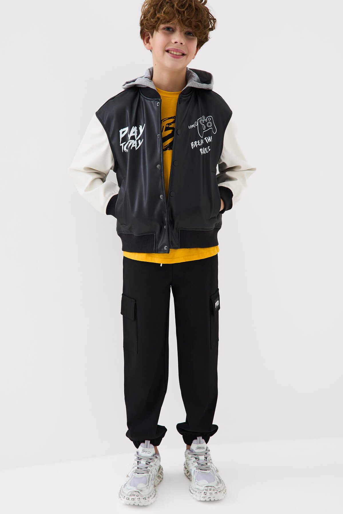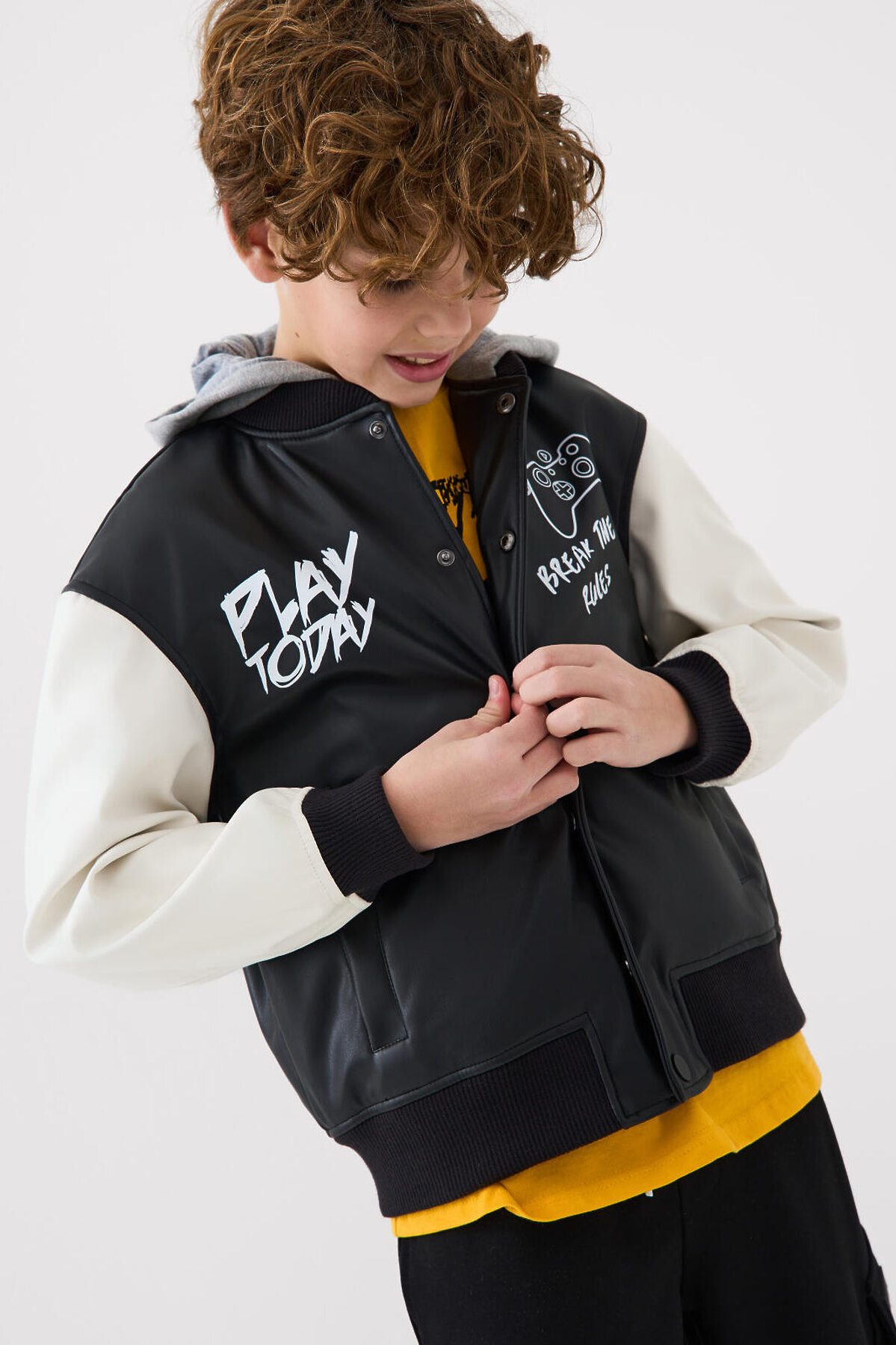 Куртка текстильная с полиуретановым покрытием для мальчиков (бомбер) PLAYTODAY, черный,белый,серый