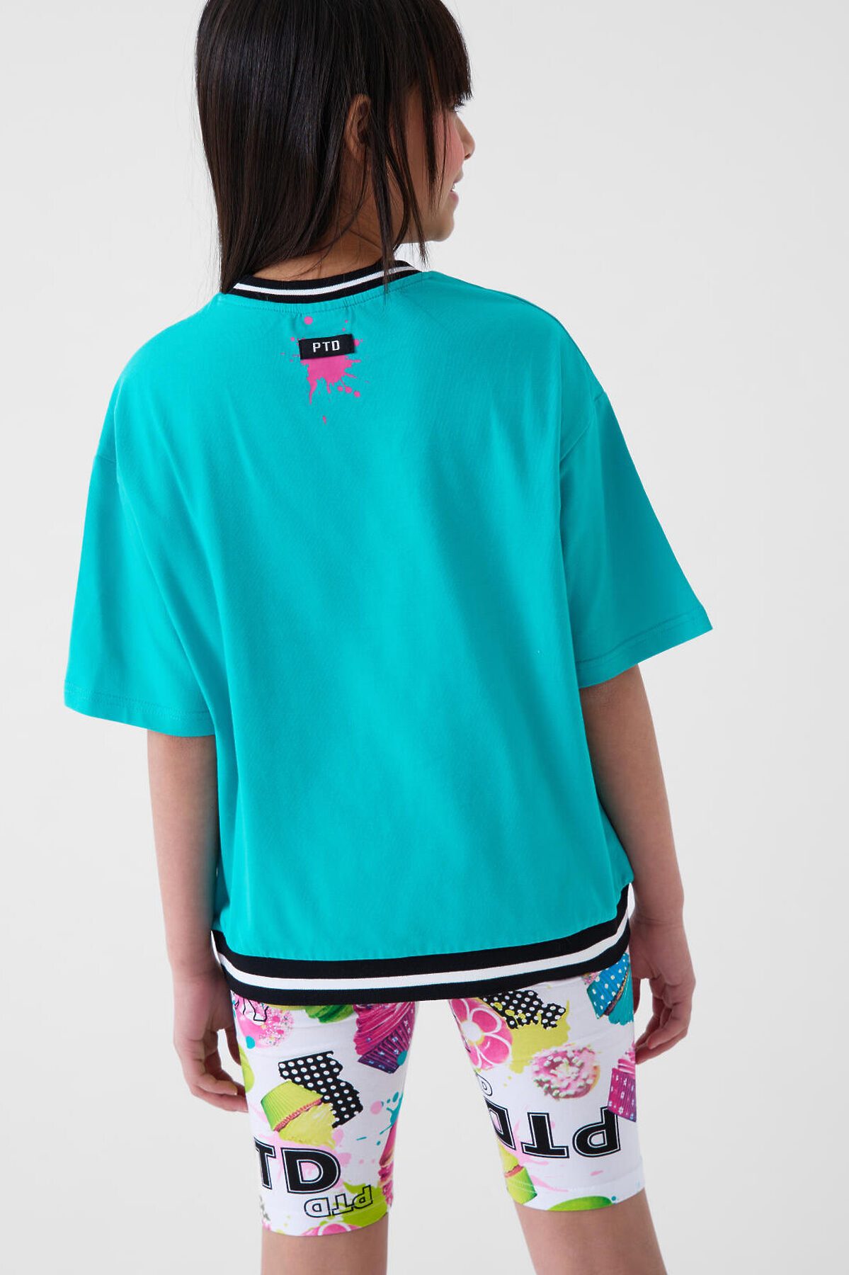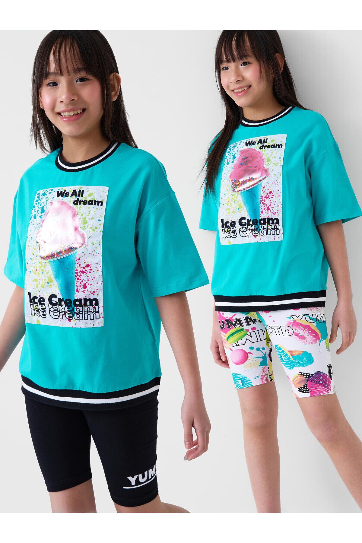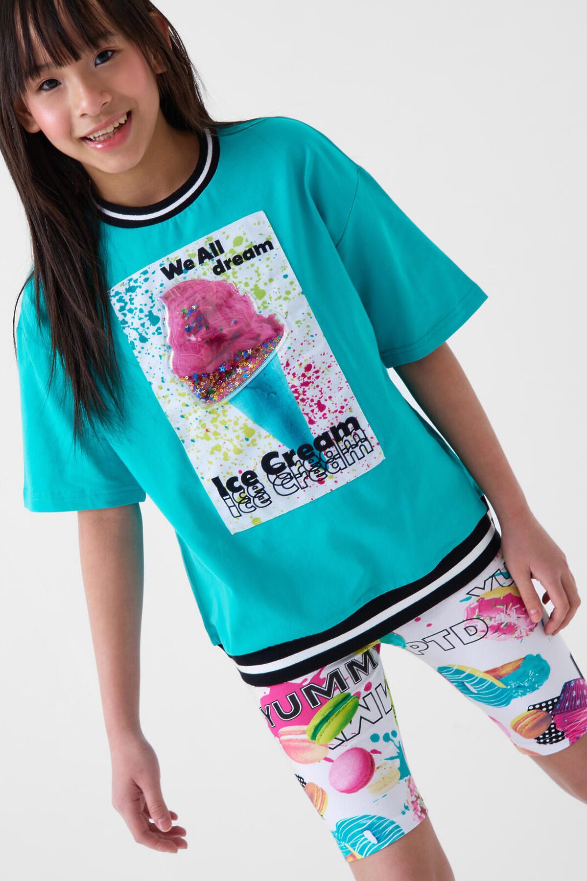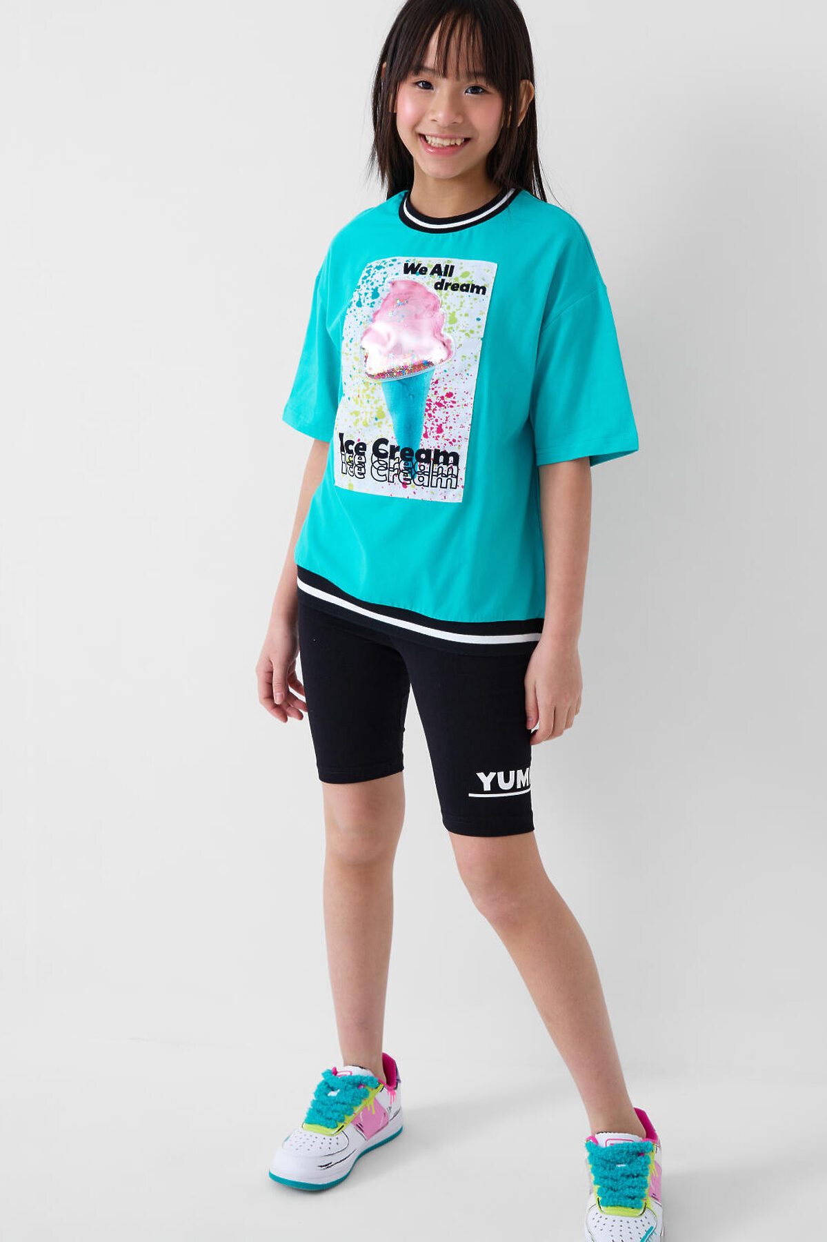 Набор легинсов для девочки подростка. Комплект состоит из двух пар укороченных легинсов. Первая пара выполнена в классическом черном цвете, вторая — с ярким принтом. Обе модели имеют высокую посадку и эластичный пояс, который хорошо фиксирует изделие на талии. Материал - мягкий, хлопковый трикотаж.