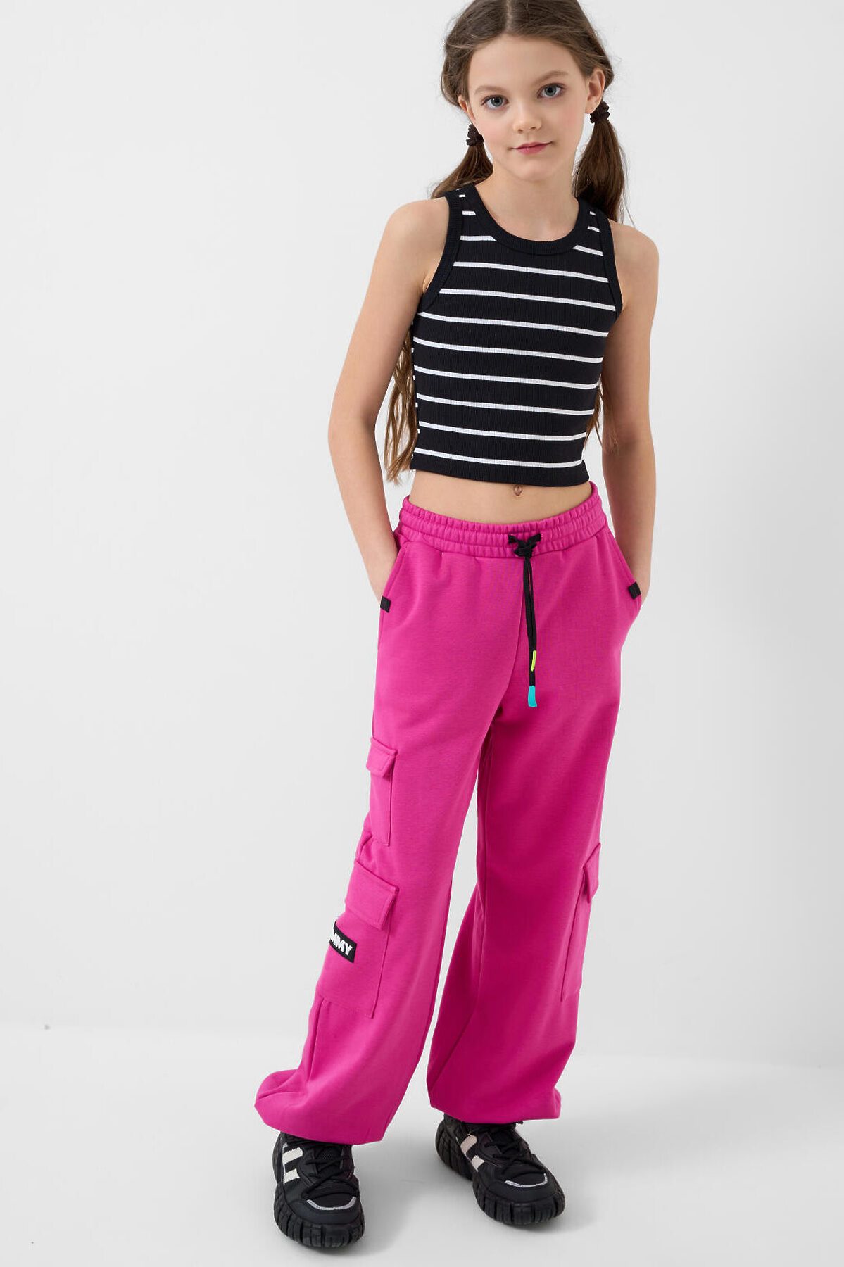 Майка трикотажная для девочек PLAYTODAY, черный,белый