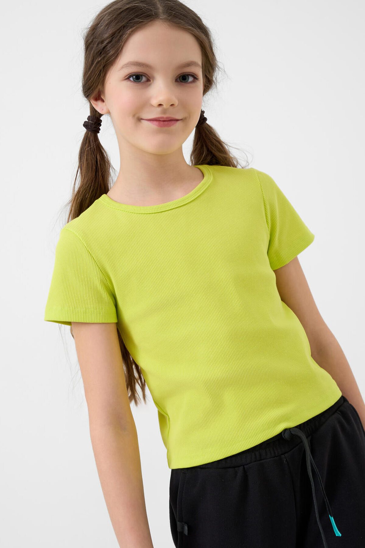 Фуфайка трикотажная для девочек (футболка) PLAYTODAY, светло-зеленый неоновый