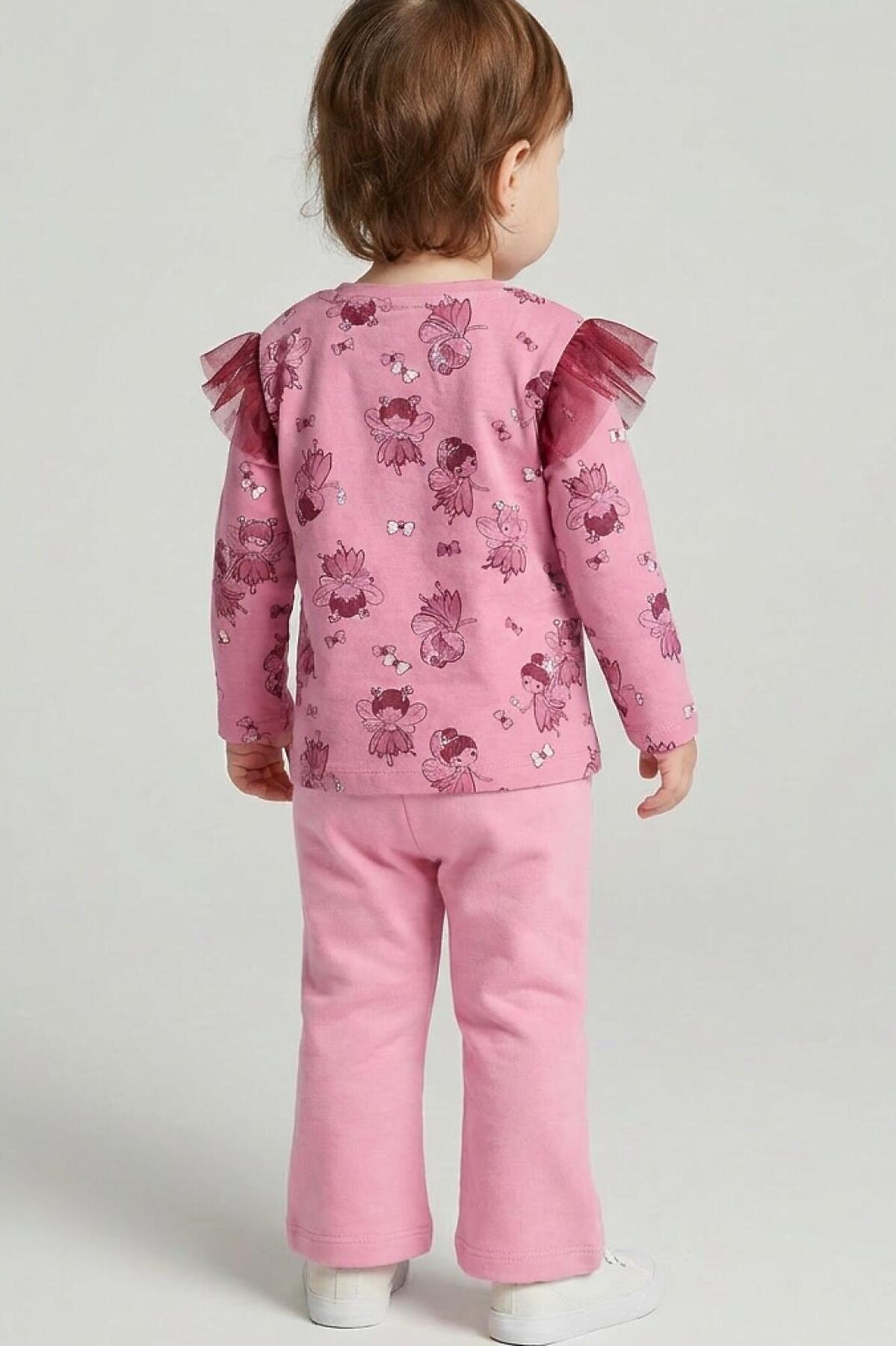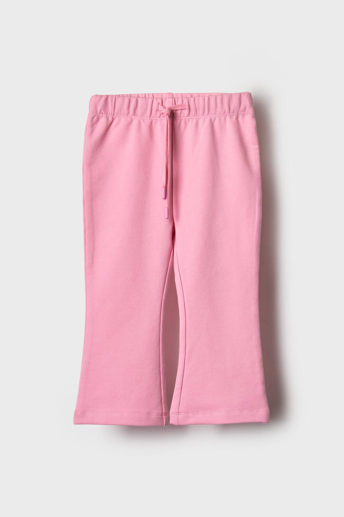 Детские брюки клеш для девочки. Выполнены из хлопкового трикотажа футер без начеса. Средняя посадка на талии. Пояс на резинке, дополнительно регулируется шнурком.