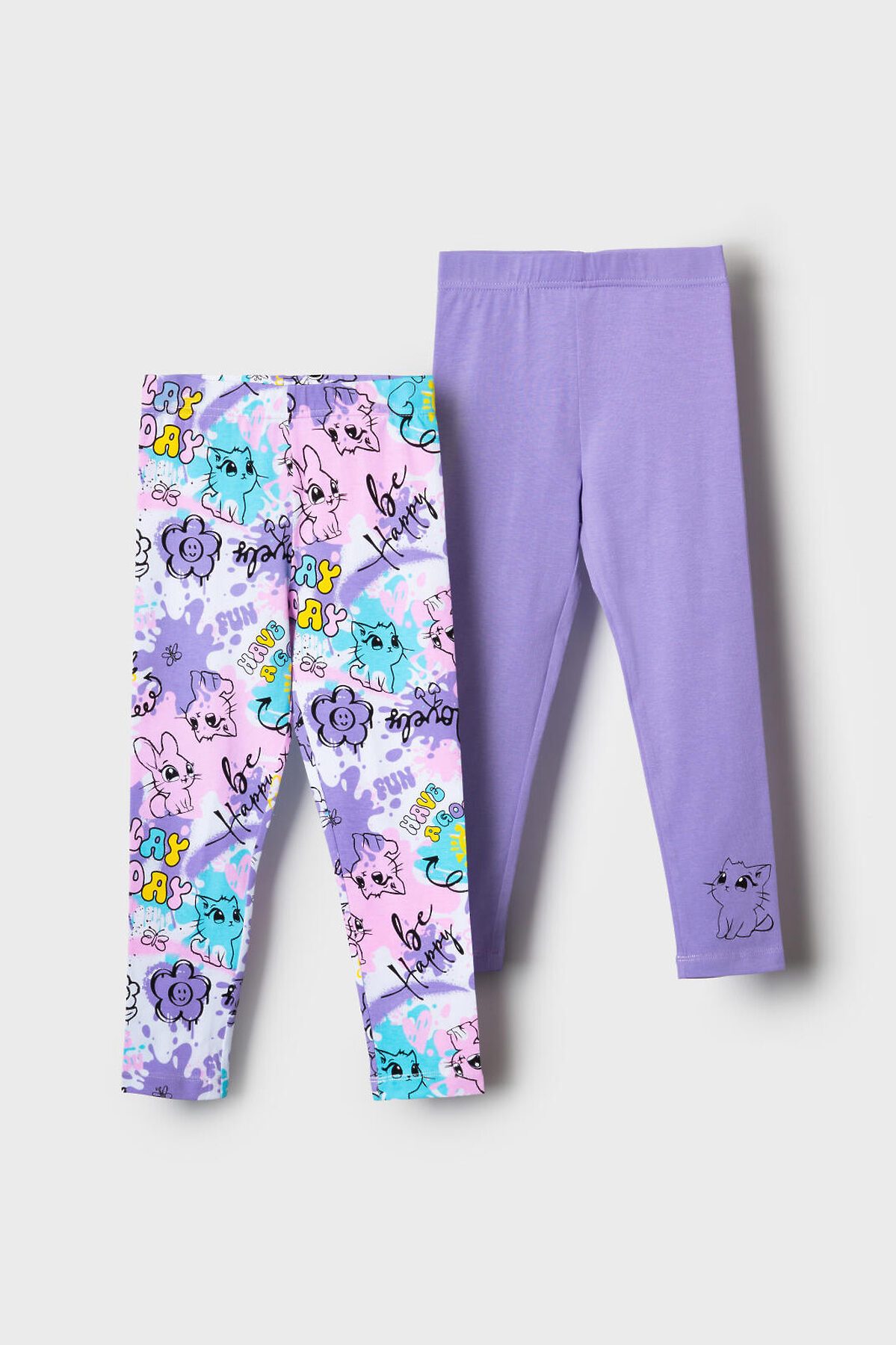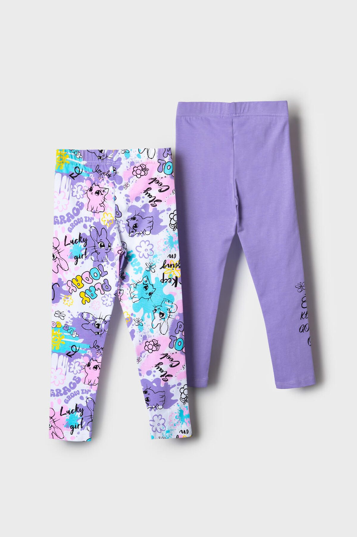 Брюки трикотажные для девочек (легинсы), 2 пары в комплекте PLAYTODAY, разноцветный