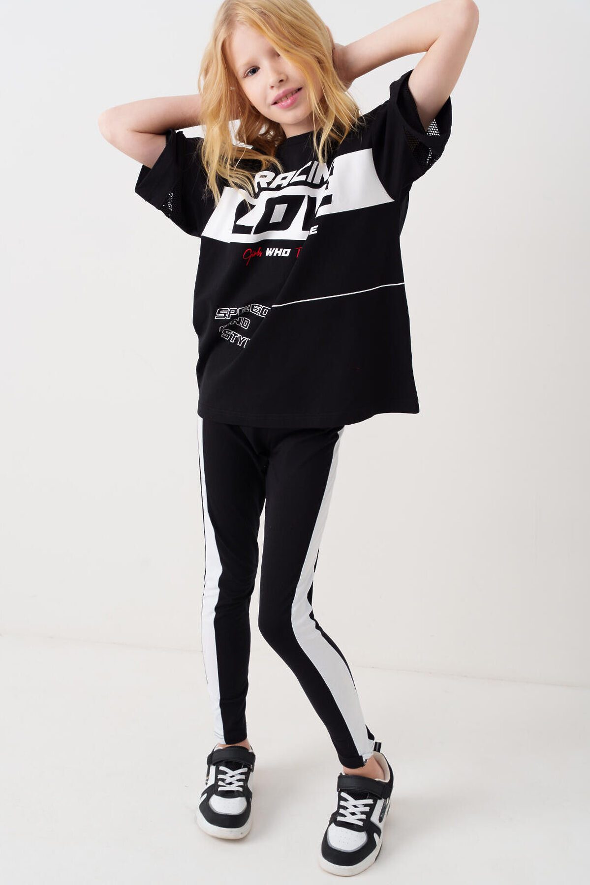 Брюки трикотажные для девочек (легинсы) PLAYTODAY, белый,черный