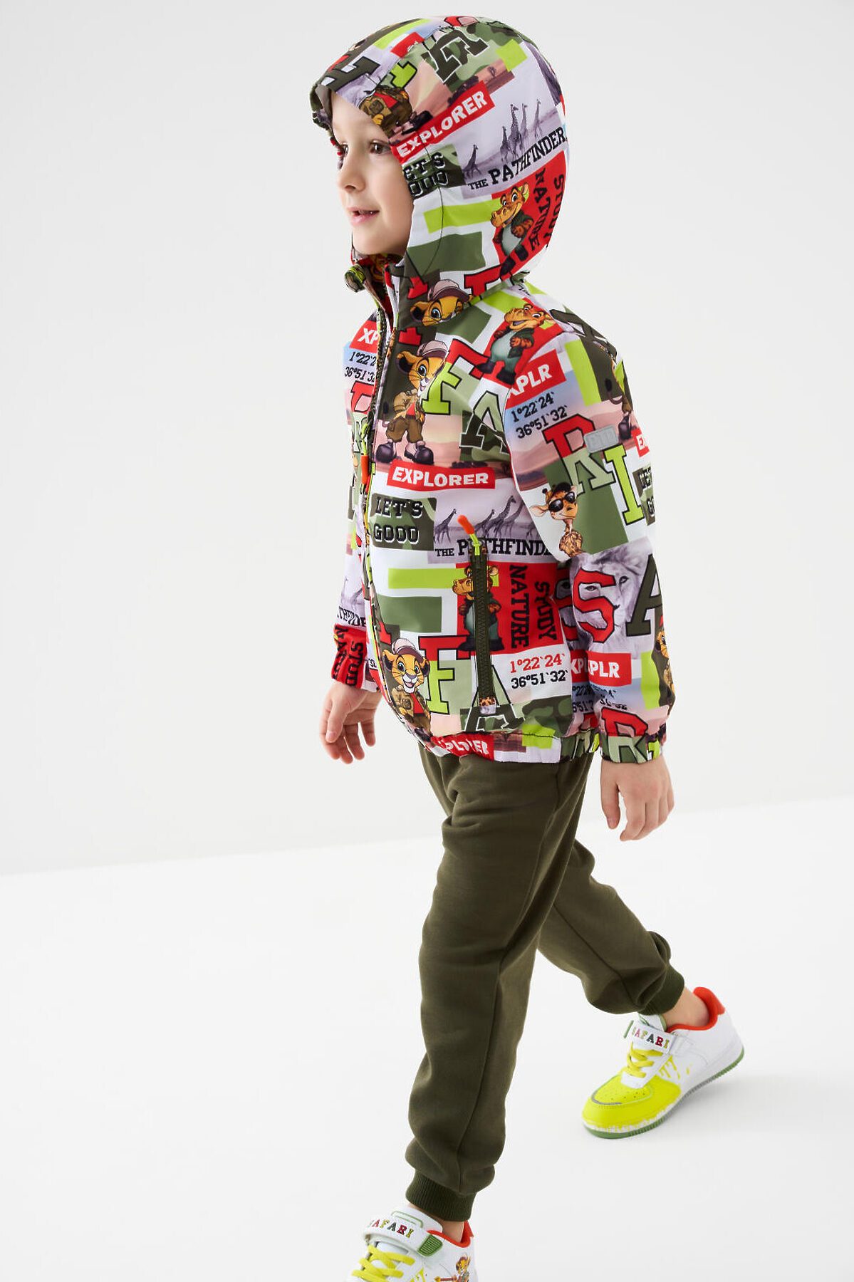 Детская ветровка для мальчика. Температурный режим от +20С до +10С. Ткань с мембранным покрытием 5000х5000. Внутри мягкая подкладка из трикотажа. Капюшон несъемный на резинке. Два боковых кармана на молнии. Внутренний карман на липучке. Манжеты и низ изделия на резинке. Добавлены светоотражающие элементы для безопасности.