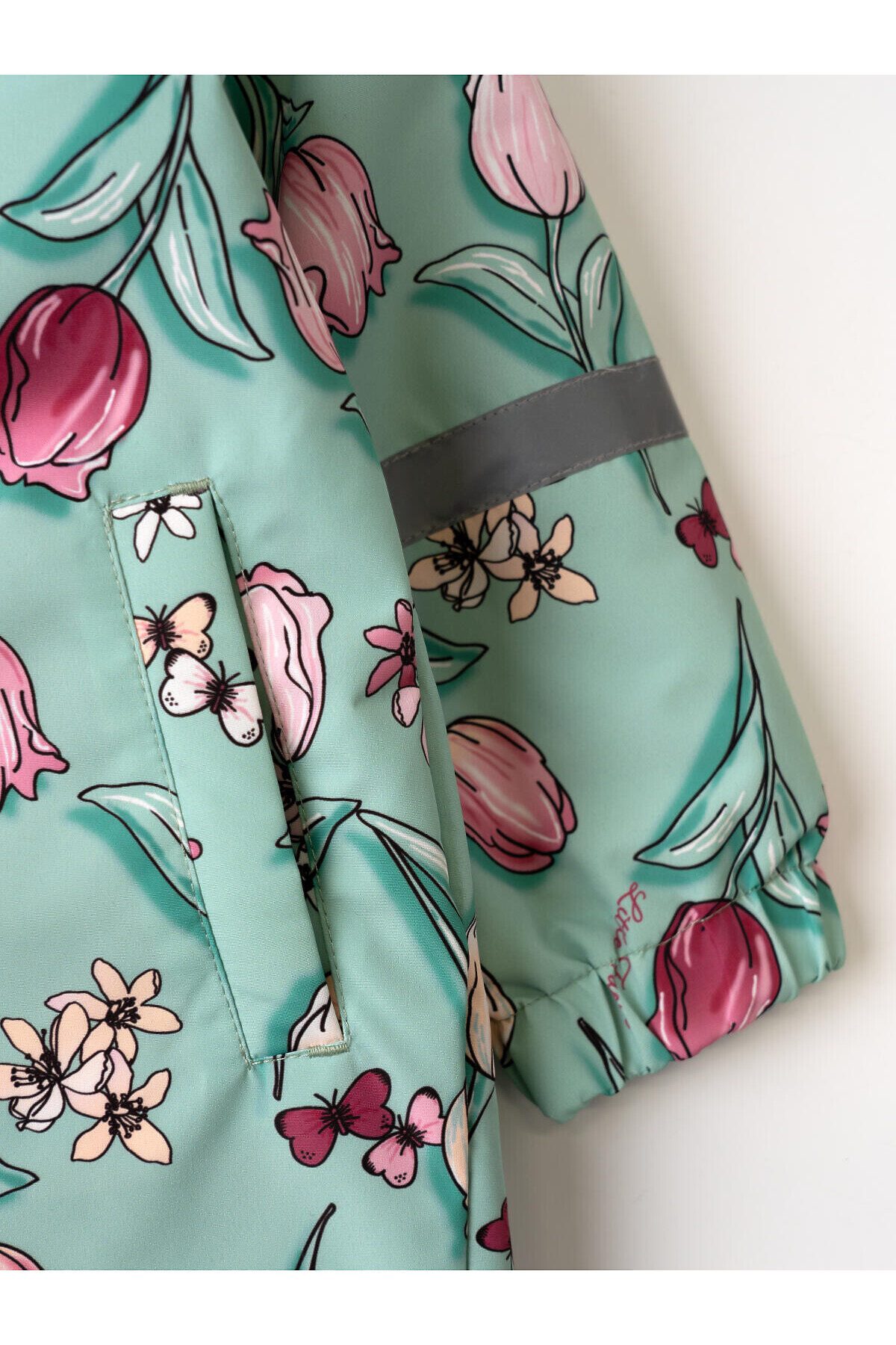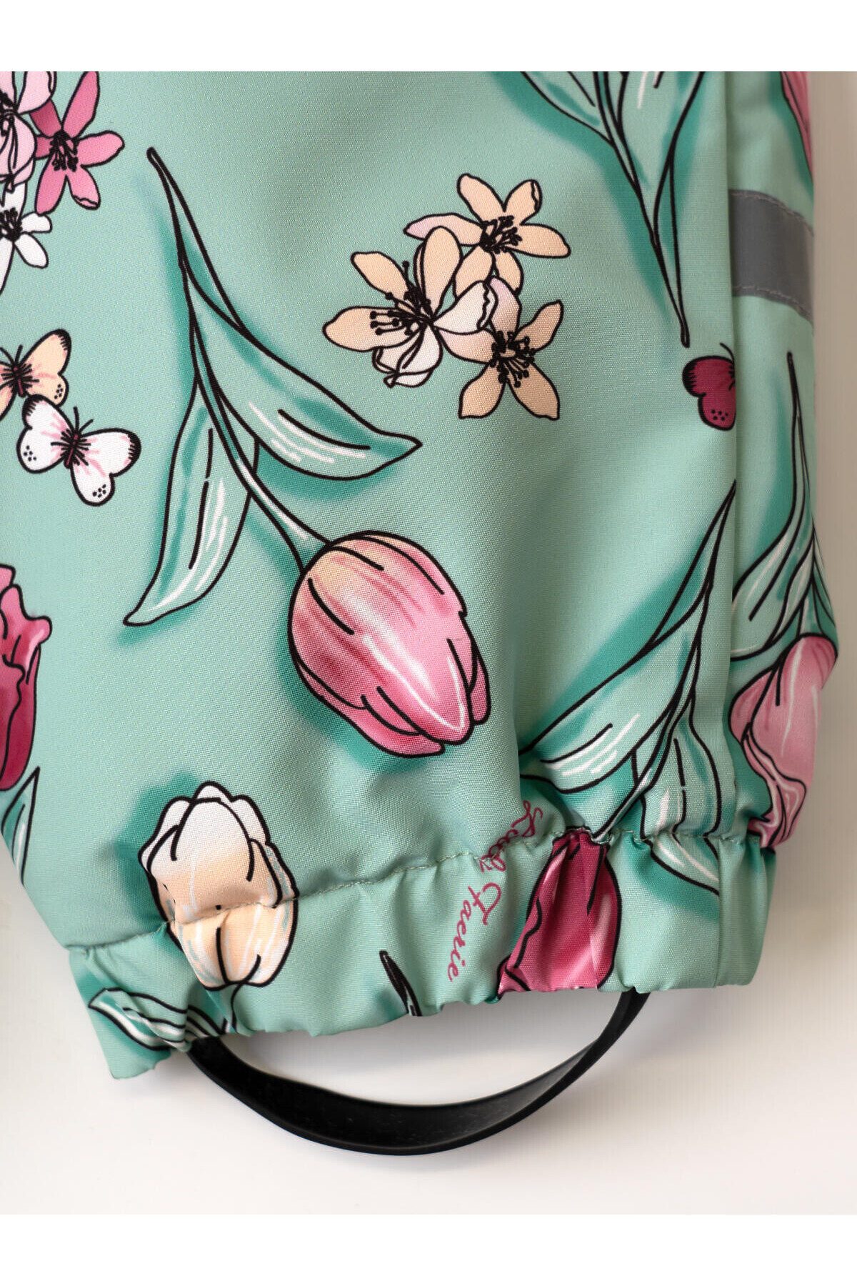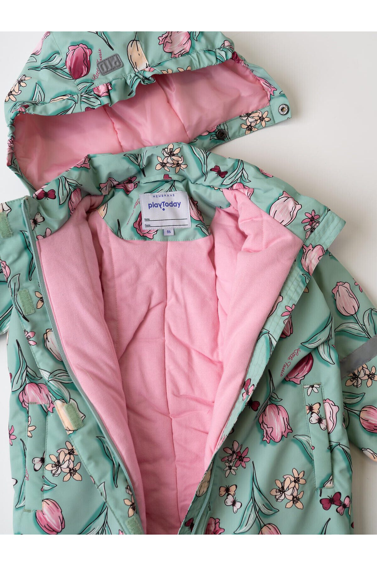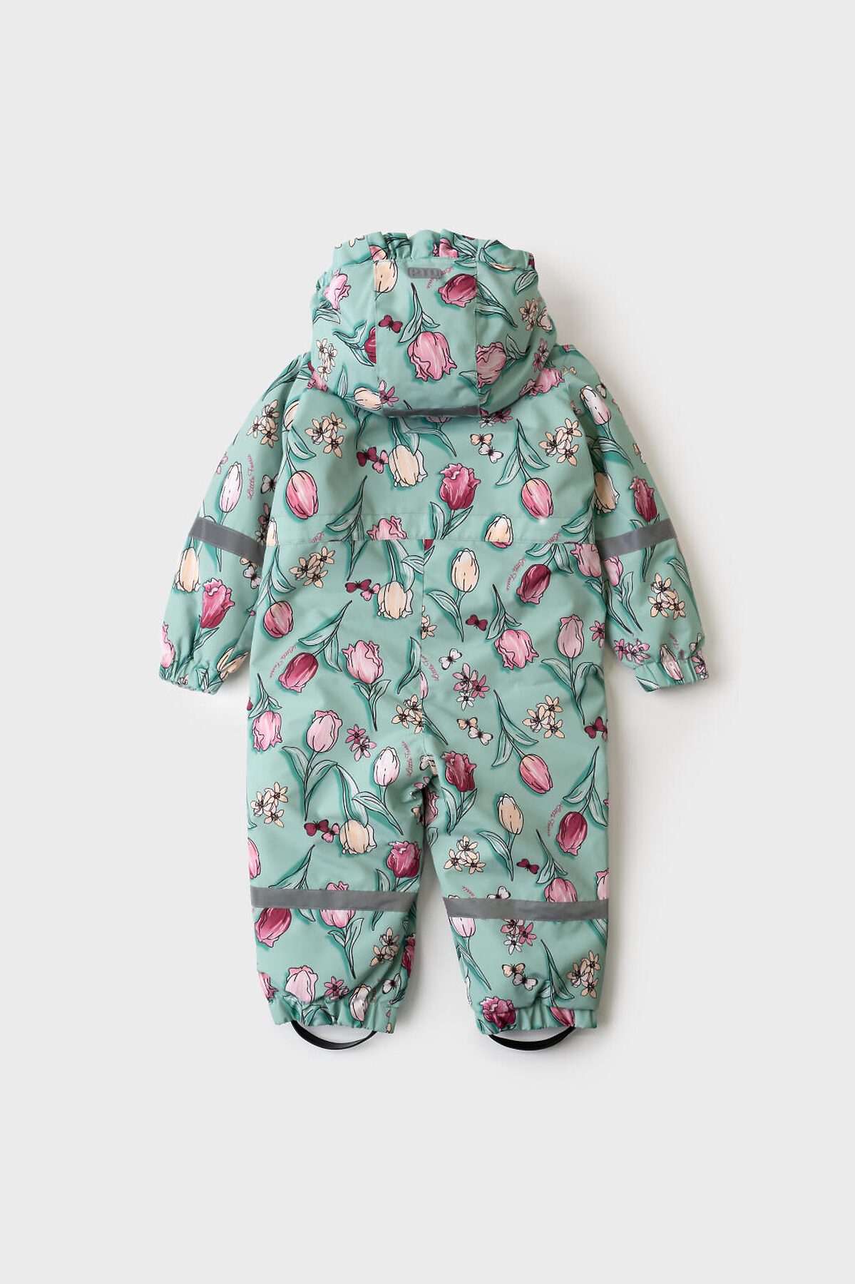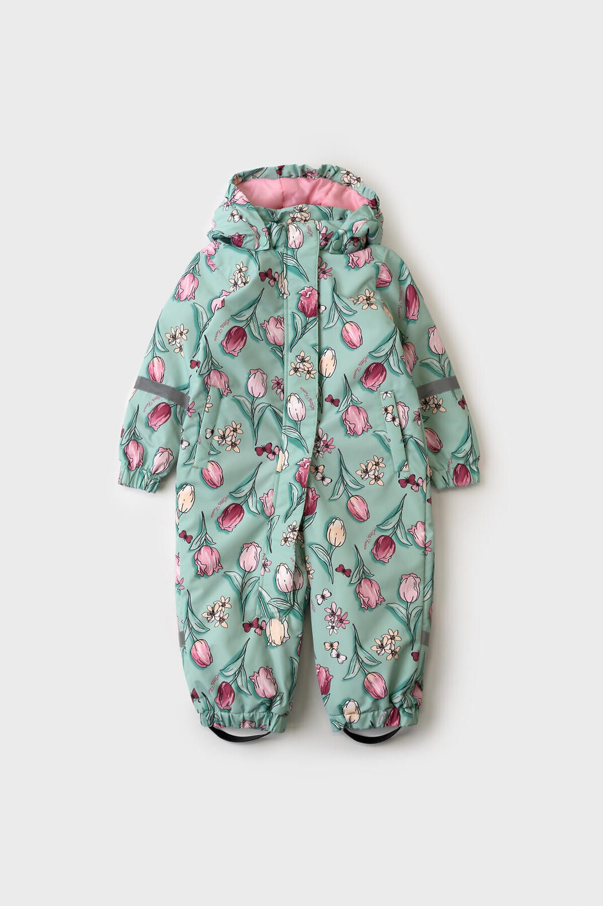 Лёгкий демисезонный комбинезон для новорождённой девочки. Температурный режим от +15 до 0С. Ткань с мембранным покрытием 5000х5000. Внутри трикотажная подкладка. Комбинезон застёгивается на косую молнию, которая закрыта ветрозащитной планкой на липучках. Капюшон съёмный, застёгивается на кнопки и фиксируется липучкой сзади. Боковые карманы. На рукавах и штанинах есть светоотражающие полосы, а низ собран на резинку. Внизу предусмотрены эластичные штрипки с пуговицами, чтобы комбинезон надёжно держался на обуви. Спинка собрана на внутреннюю резинку для лучшей посадки.