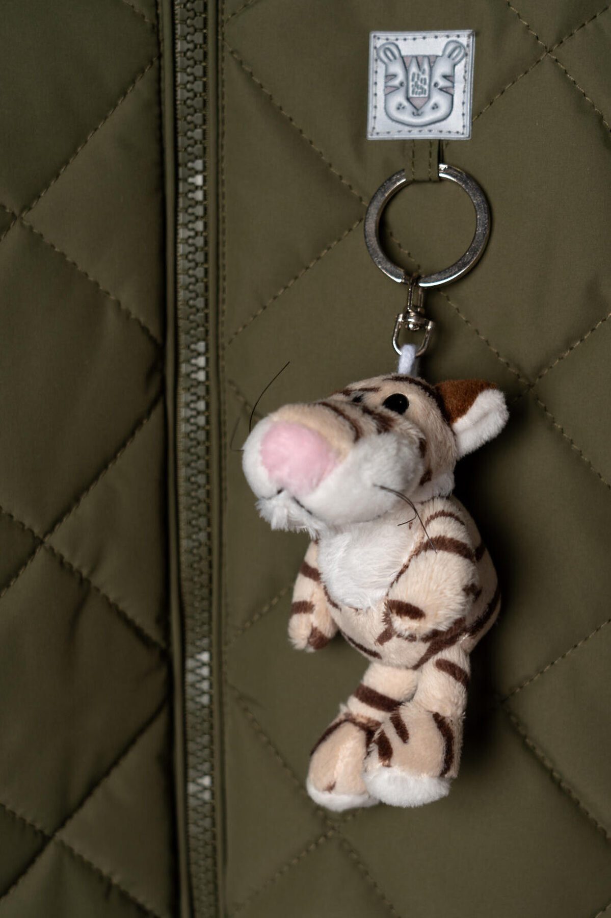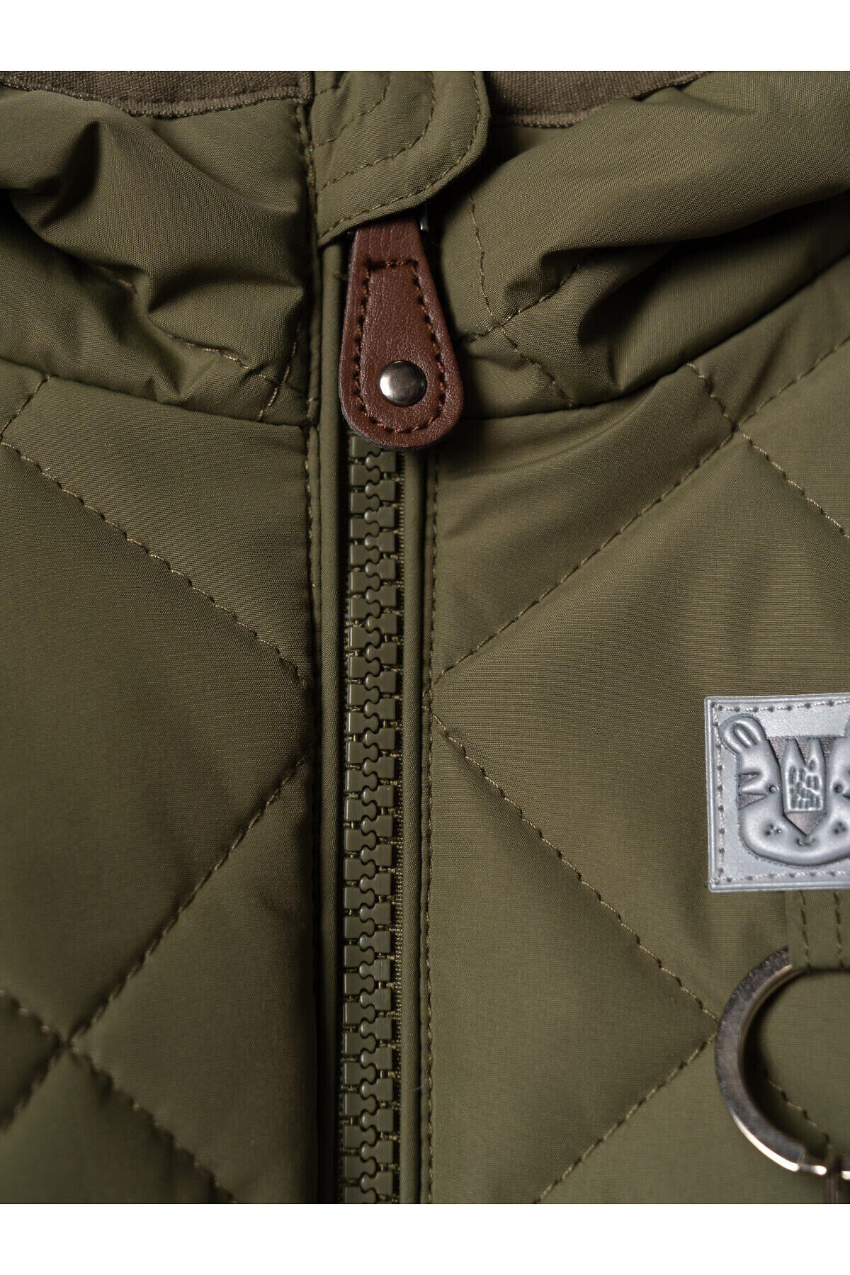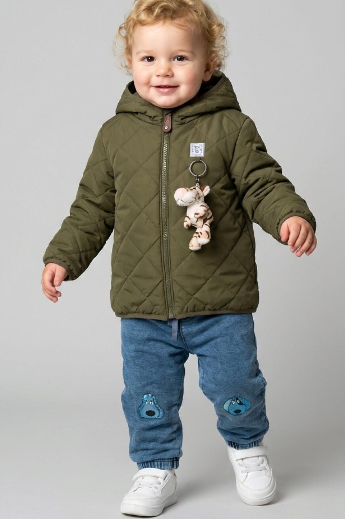 Куртка демисезонная стеганая для мальчика. Температурный режим от +15С до 0С. Ткань с ветрозащитным и водоотталкивающим покрытием. Внутри — гладкая подкладка из таффеты. Капюшон несъемный с эластичной окантовкой. Удобные боковые карманы. Внизу изделия и на манжетах — эластичная окантовка, которая помогает лучше прилегать к телу. Яркий акцент — мягкий съемный брелок в виде тигрёнка и декоративная нашивка спереди.