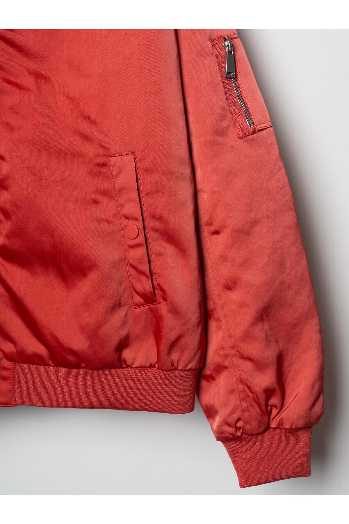 Женский бомбер оверсайз. Температурный режим от+15С до 0С. Ткань с ветрозащитным и водоотталкивающим покрытием. Внутри гладкая стеганная подкладка. У изделия классический короткий трикотажный воротник. трикотажная резинка по низу и на манжетах. Удобные боковые карманы на кнопках и один декоративный карман на рукаве с молнией и логотипом.
