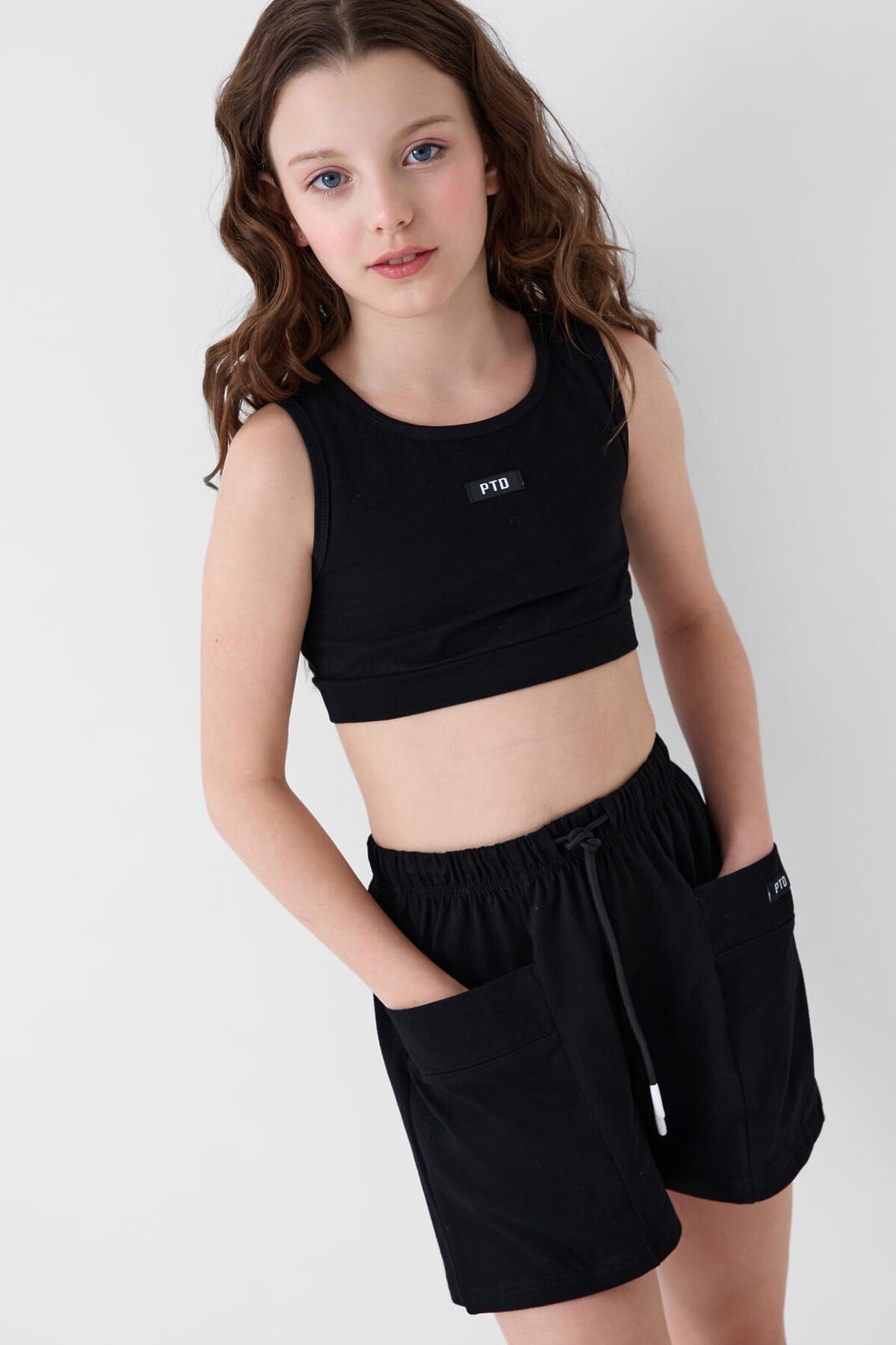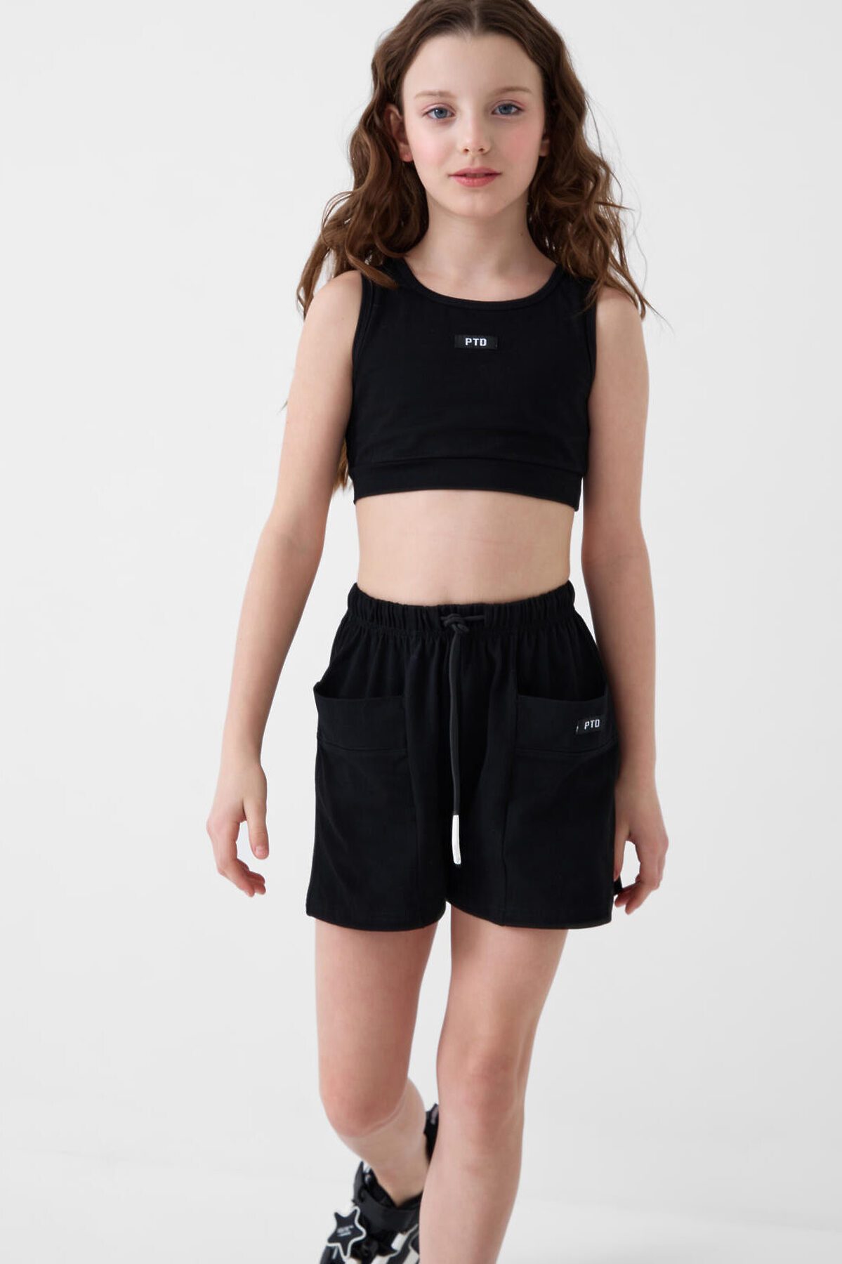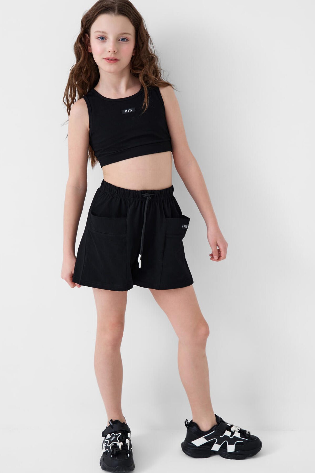 Комплект трикотажный для девочек: топ, шорты PLAYTODAY, черный