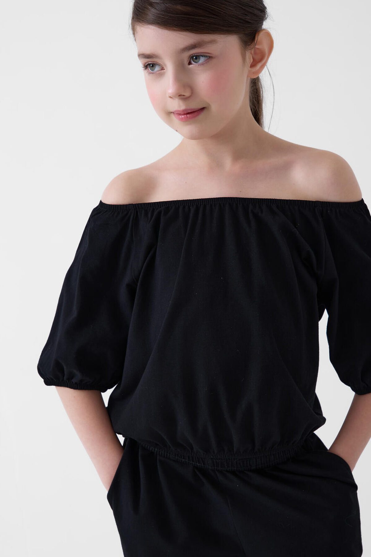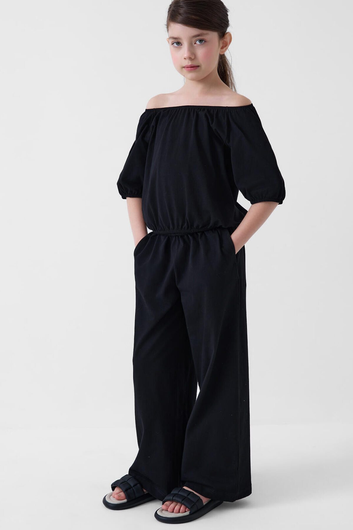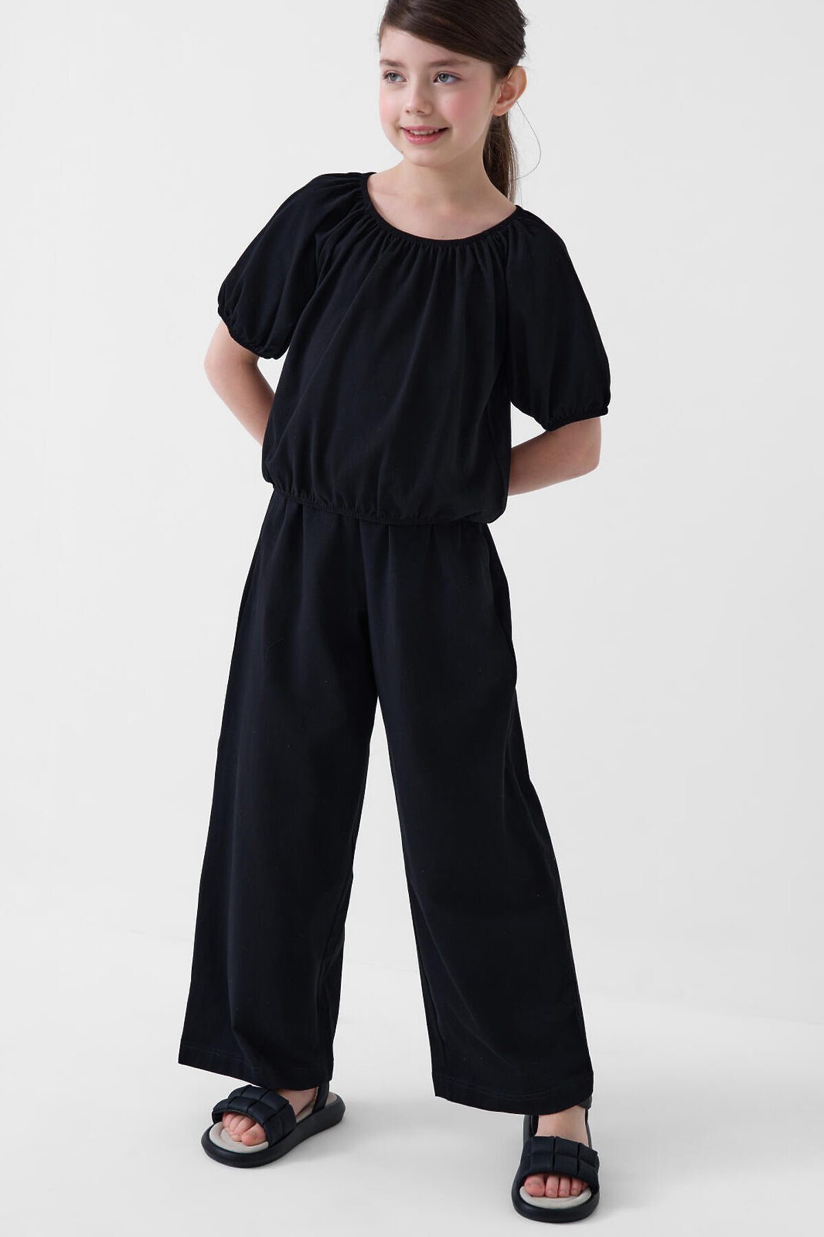 Комплект трикотажный для девочек: джемпер (футболка), брюки PLAYTODAY, черный