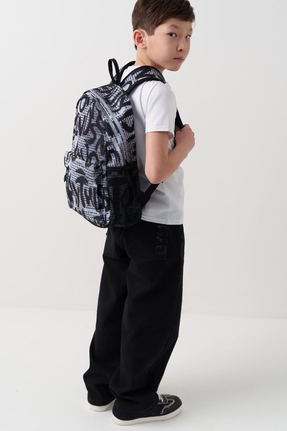Стильный рюкзак для мальчика-подростка с принтом "газета". Прямые широкие регулируемые лямки с мягкими вкладками и сетчатым покрытием для улучшения вентиляции. Основной отдел на молнии с защитным клапаном. Спереди большой удобный карман на молнии с защитным клапаном, 2 боковых кармана из сетки на резинке. Внутри: отдел для папок, карман на молнии, 2 кармана без замка для телефона. Используется брендированная подкладка. Усиленная спинка и дно. Светоотражающие элементы на плечевых ремнях. Параметры: высота - 40 см, ширина -30 см, глубина - 15 см. Очень легкий