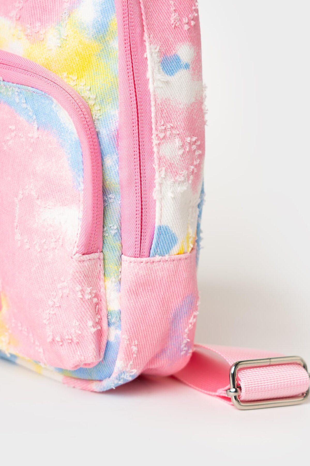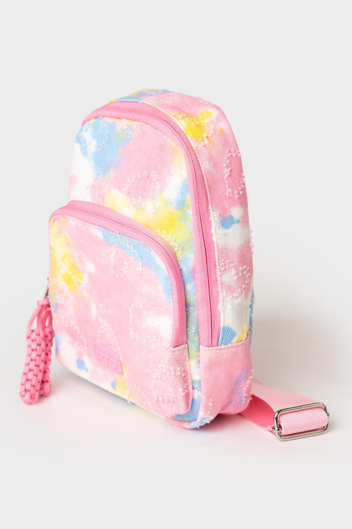 Оригинальная сумка кросс-боди для девочки-подроста. Молодежный однолямочный рюкзак выполнен из вареный джинсы градиентного окрашивания с эффектом рваности. Нагрудная сумка имеет одно основное отделение на молнии и карман на молнии спереди. Внутри имеется карман. Регулируемый ремень. Параметры сумки: высота - 24 см, ширина - 17 см, глубина - 6 см
