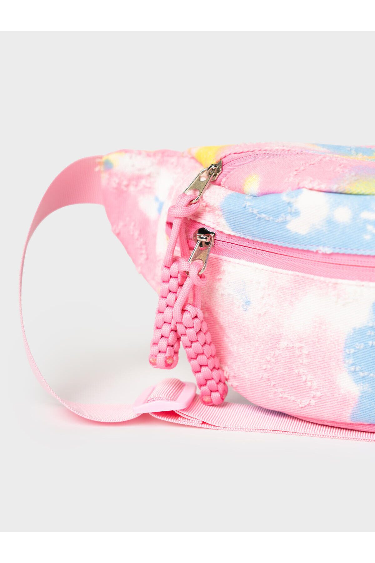 Оригинальная поясная сумка для девочки-подроста. Сумка выполнена из вареный джинсы градиентного окрашивания с эффектом рваности. Сумка имеет одно основное отделение на молнии и карман на молнии спереди. Внутри имеется карман. Регулируемый ремень. Параметры сумки: высота - 16 см, ширина - 38 см, глубина - 6 см