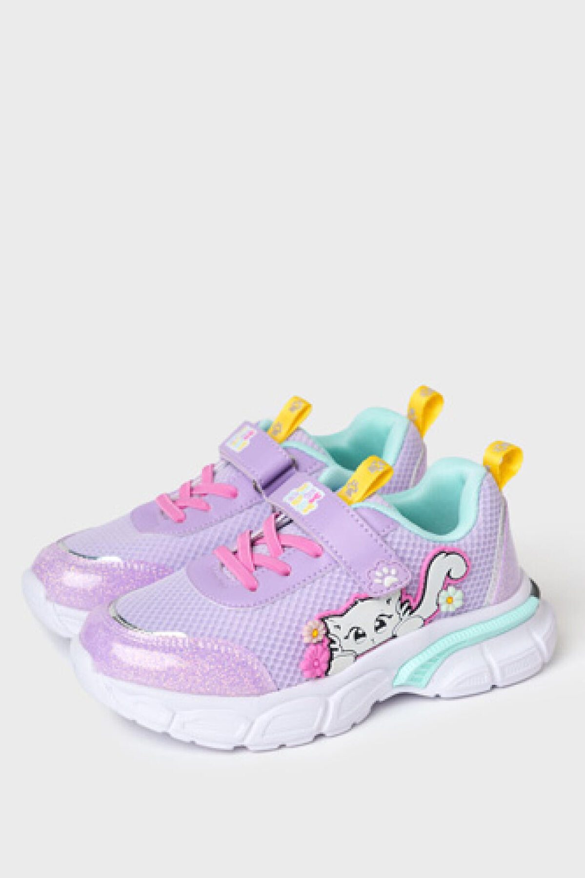 Кроссовки для девочки выполнены из дышащего текстиля и искусственной кожи, обладающей высокими износостойкими свойствами. Сбоку имеется оригинальный патч в виде котенка. Кроссовки имеют эластичные шнурки и липучку, что позволяет их легко обувать. В носочной части обуви стоит текстильная подкладка c высоким содержанием хлопка 80%, которая обладает высокой гигроскопичностью. В пяточной части обуви текстильная подкладка обладает хорошей износостойкостью. Двухсоставная подошва из ЭВА и ТПР легкая и гибкая. Вставки из ТПР в носочной и пяточной частях предотвращают быстрый износ подошвы и делают ее нескользкой. Профилированная стелька из натуральной кожи с анатомической формой подсводника обеспечивает правильную нагрузку на стопу. Формоустойчивый задник поддерживает стопу в правильном положении. Эргономичная форма колодки обеспечивает правильное формирование стопы ребенка.