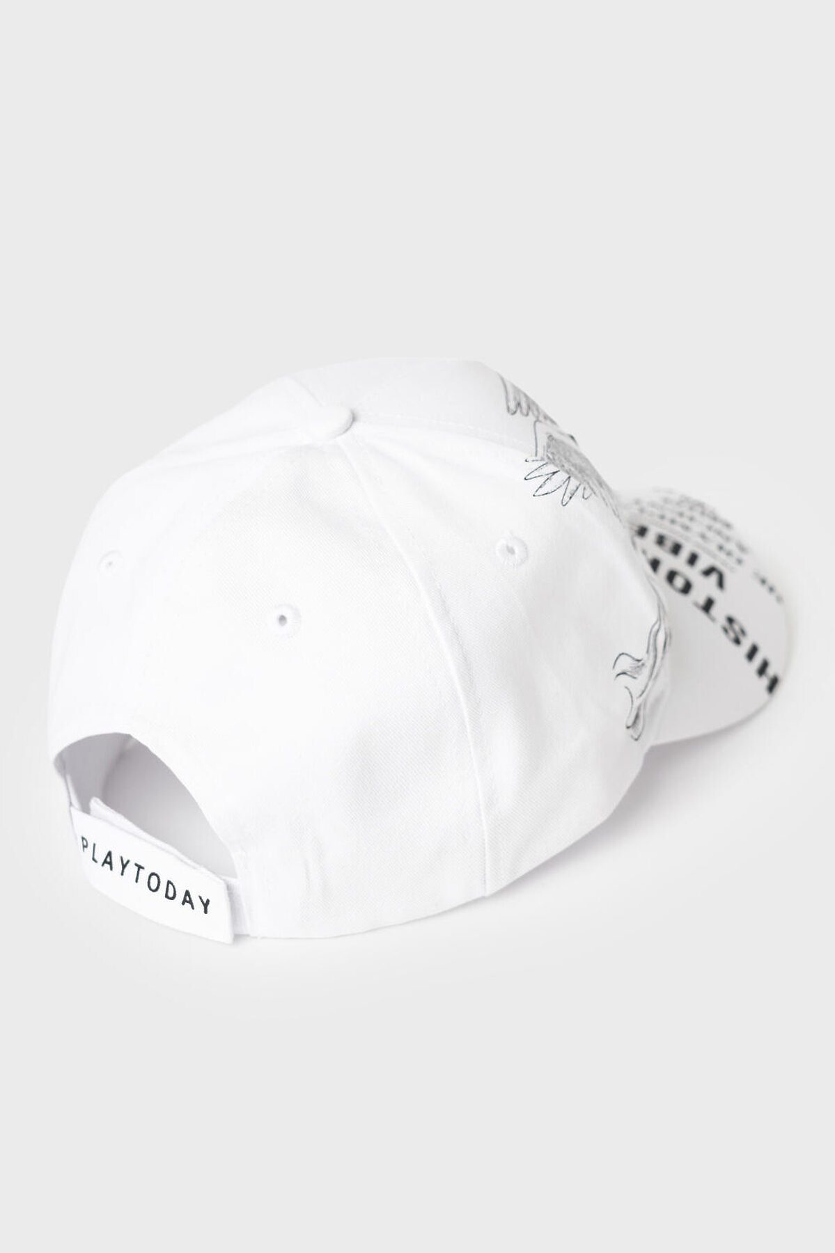 Бейсболка для девочки подростка. Классическая форма с изогнутым козырьком и удобной застёжкой на липучке сзади. Спереди — силиконовая нашивка, а на боковой части и козырьке — крупные графические принты.