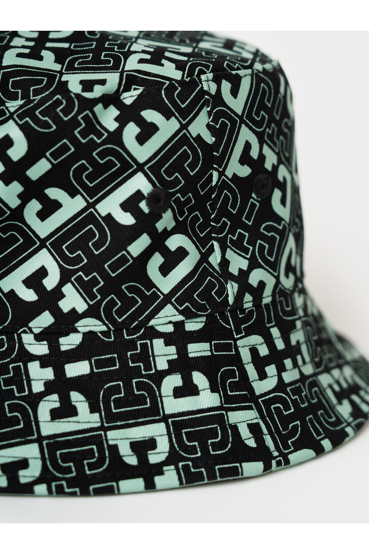 Cтильная двухсторонняя панама для мальчика подростка. Одна сторона выполнена в однотонном мятном цвете с контрастным логотипом, другая — с ярким чёрно-мятным принтом.