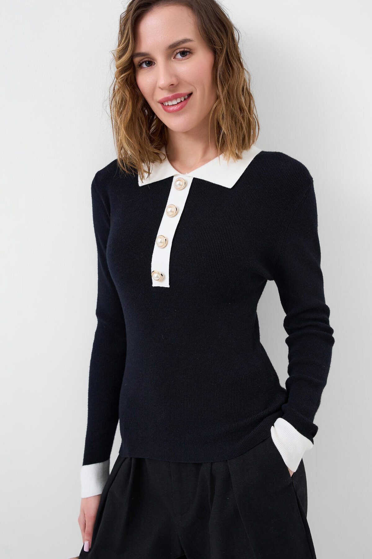 Джемпер трикотажный с воротником поло для женщин PLAYTODAY, черный