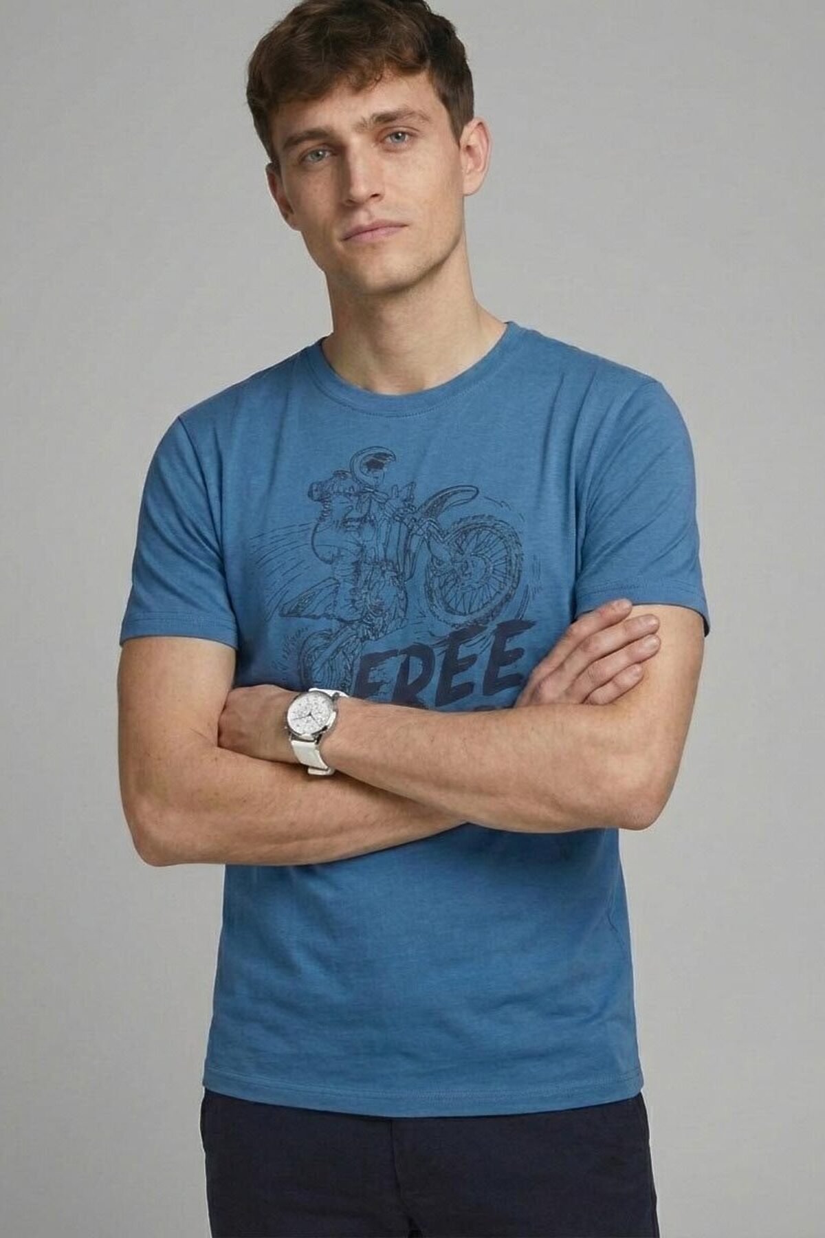 Мужская футболка F5, Regular fit (полуприлегающий силуэт), круглый вырез горловины, короткий рукав. Выполнена из классического трикотажного полотна.