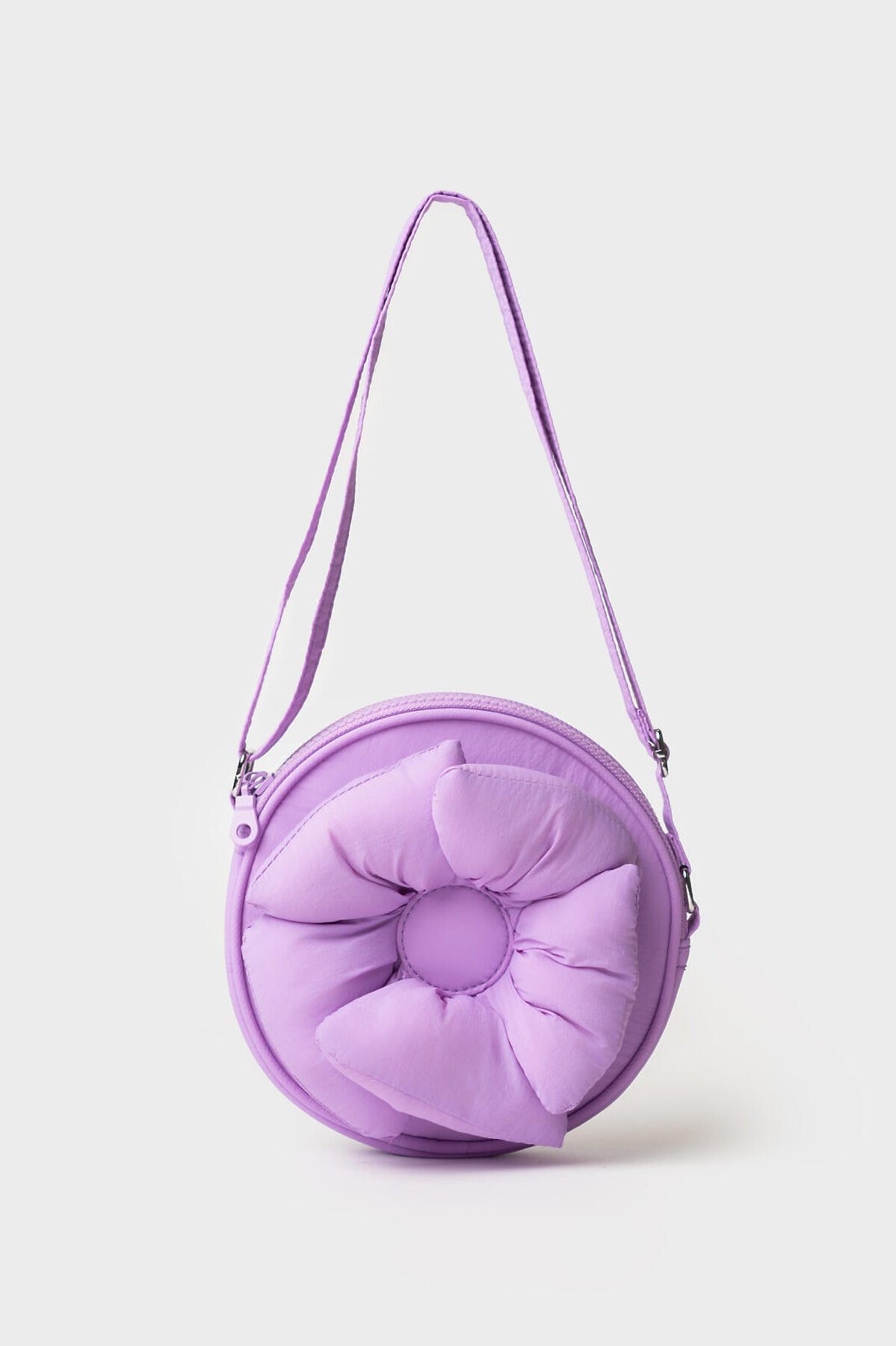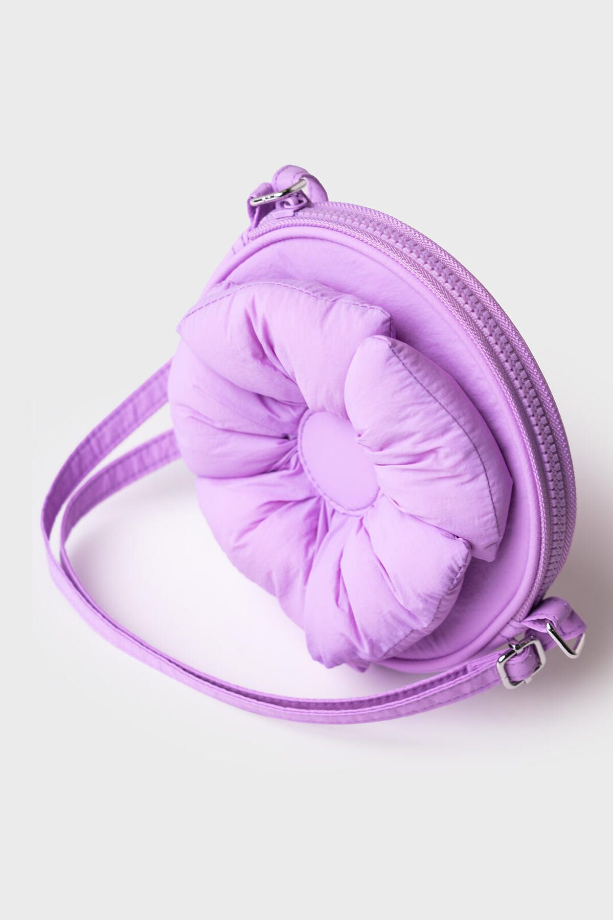 Маленькая круглая сумка-цветок будет интересна для маленьких принцесс. Сумка имеет одно отделение, регулируемый плечевой ремешок. Параметры сумки: высота - 17 см , ширина - 17 см, глубина - 3 см