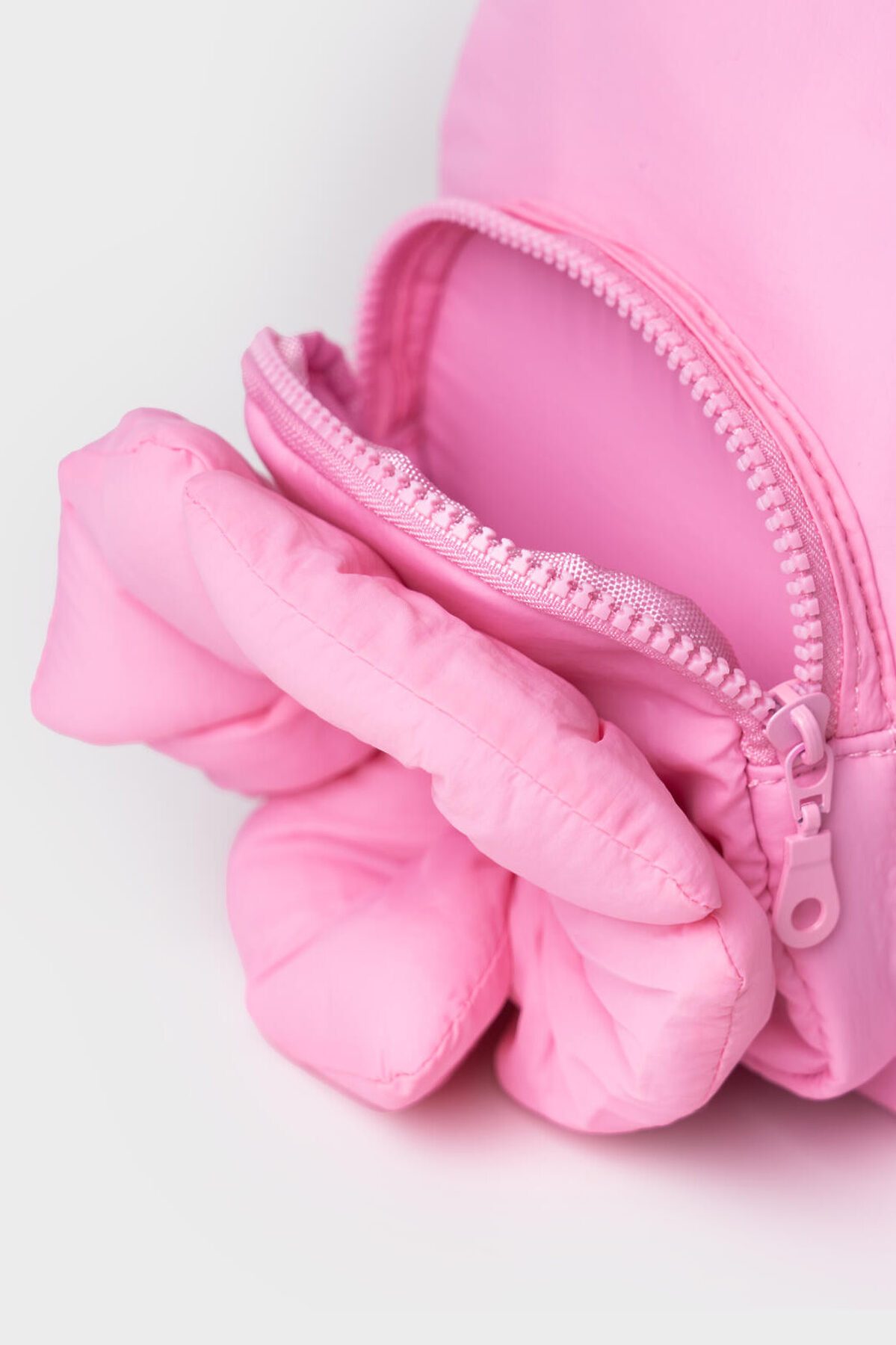 Небольшой рюкзочок с карманом, который украшен объемным большим цветком. Внутри имеется два кармана, один из них на молнии. Лямки рюкзака регулируемые. Параметры рюкзака: высота - 20 см , ширина - 17,5см, глубина - 8 см