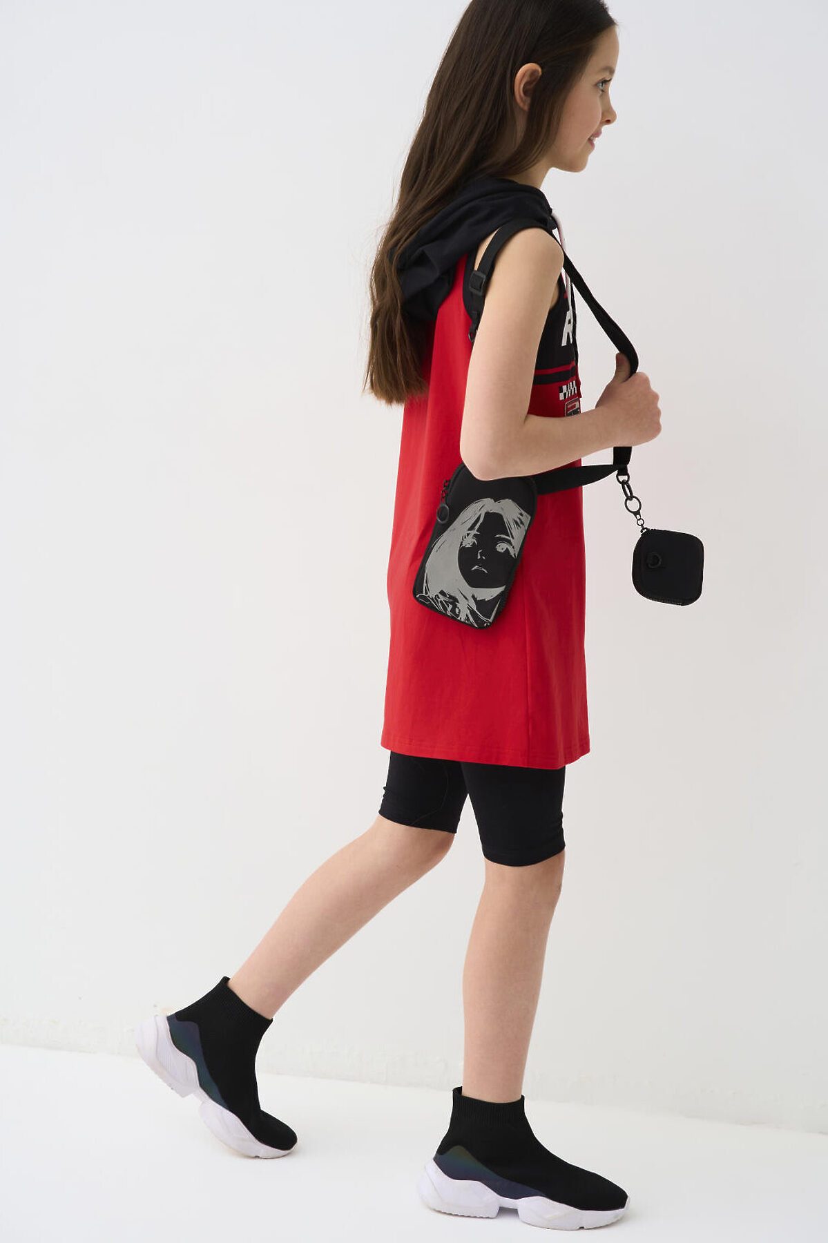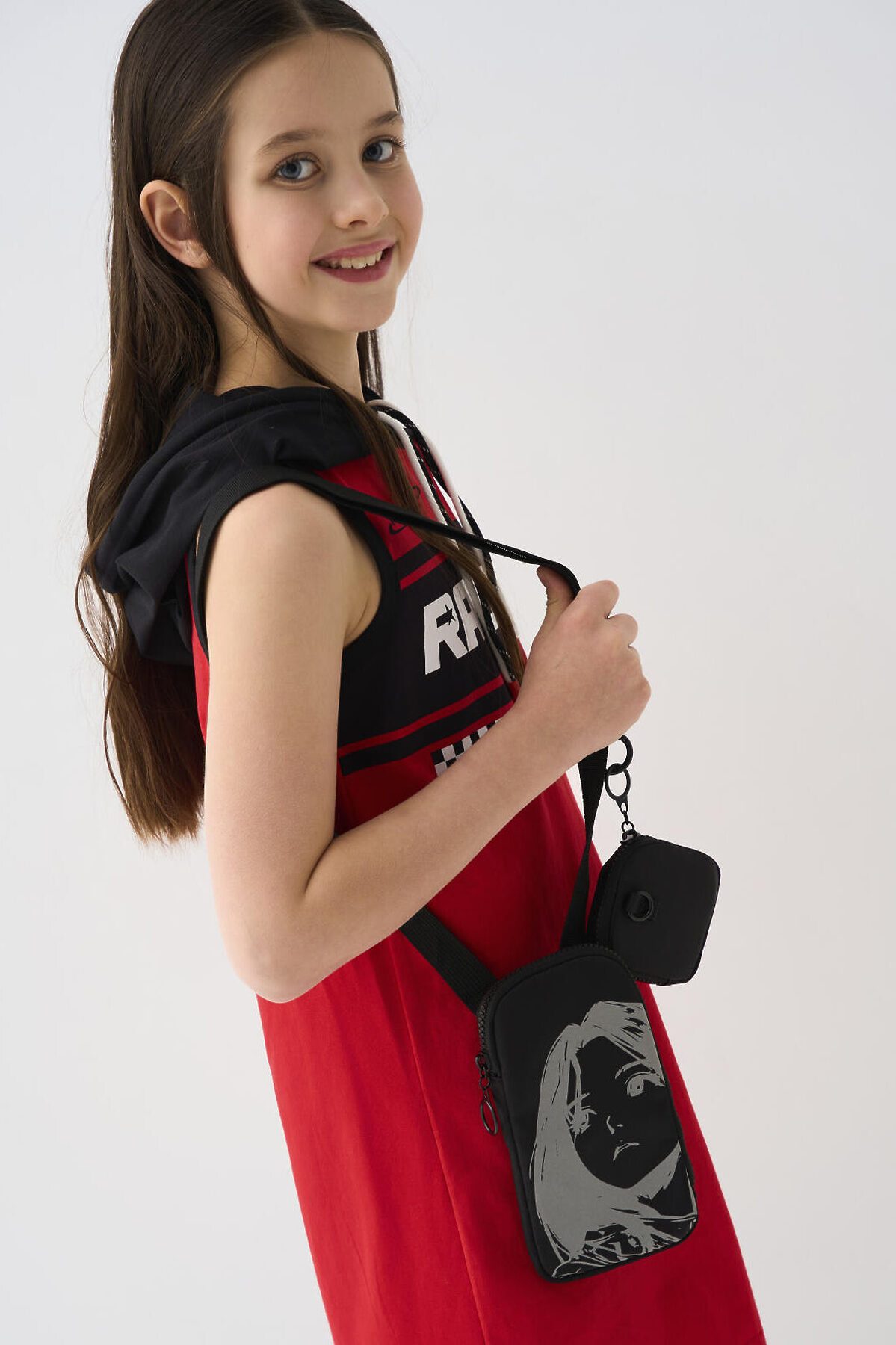 Сумка в корейском стиле для девочки подростка. Стильная текстильная сумка кросс-боди для телефона с чехлом для наушников. Сумка имеет светоотражающий принт. Регулируемый ремень. Основной отсек на молнии. Параметры сумки: высота - 19 см, ширина -10 см, глубина - 2 см. Параметры чехла: высота - 8 см, ширина -8 см, глубина - 1,5 см.