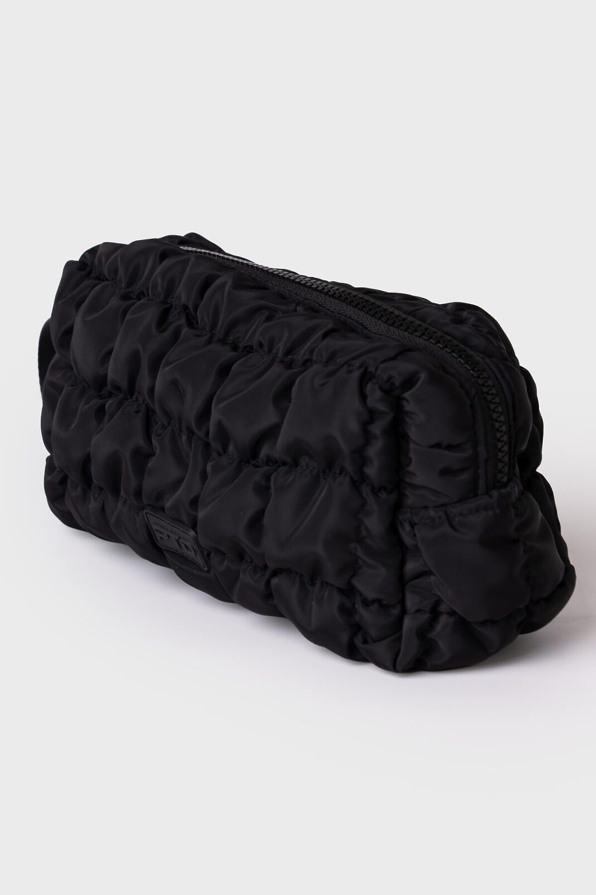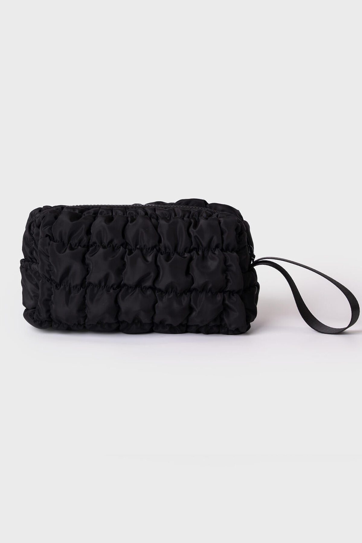 Удобная большая стильная косметичка из стеганного текстиля. Косметичка имеет ручку для ношения в руках. Параметры косметички: высота - 11 см, ширина - 23 см, глубина - 10 см.