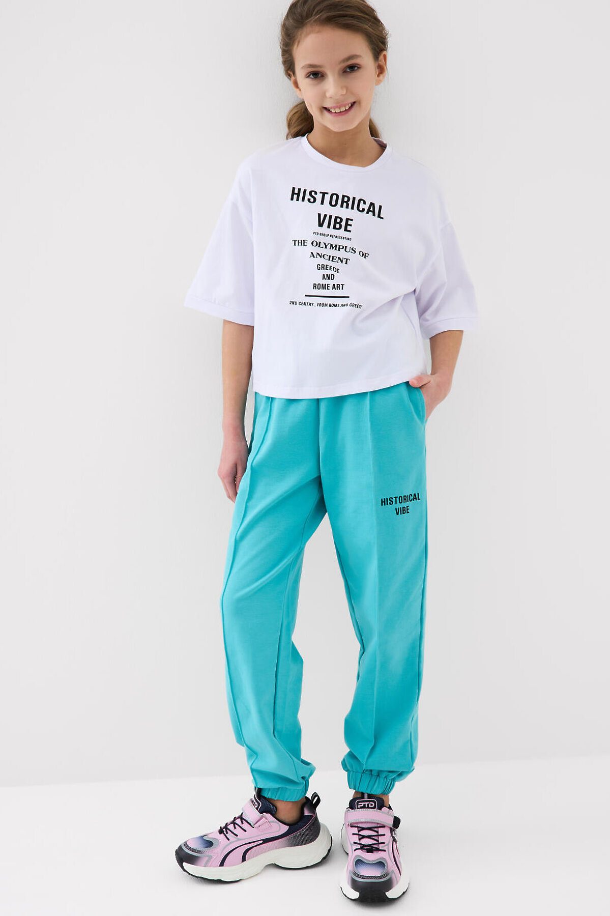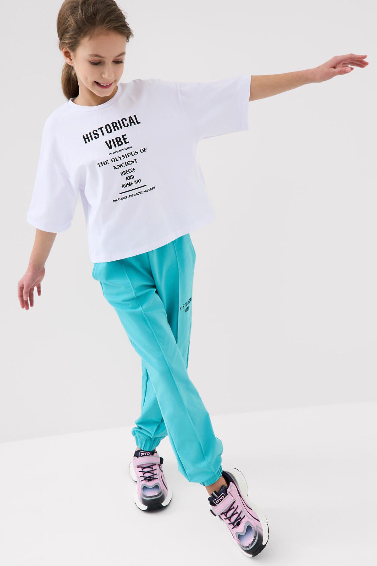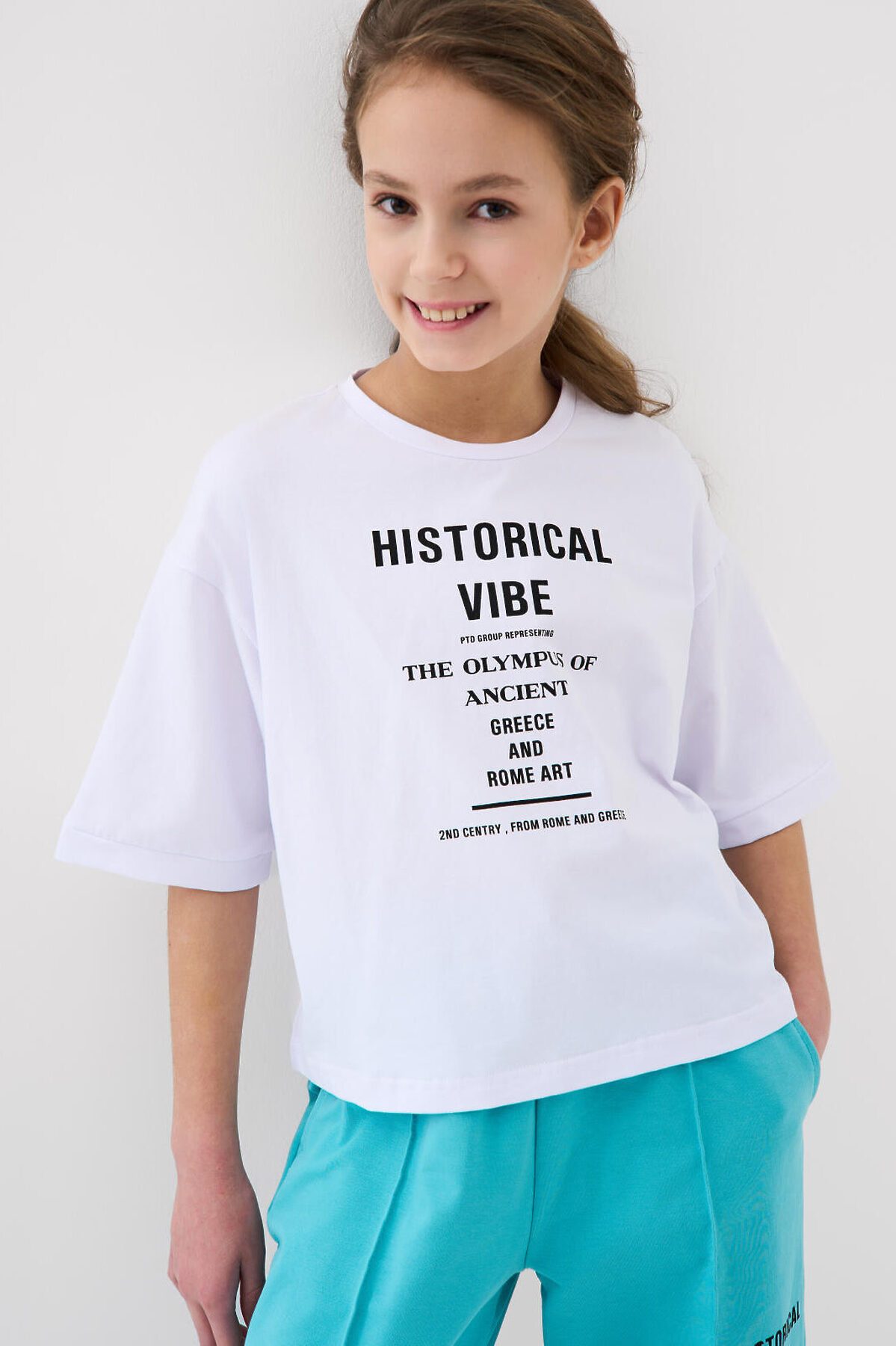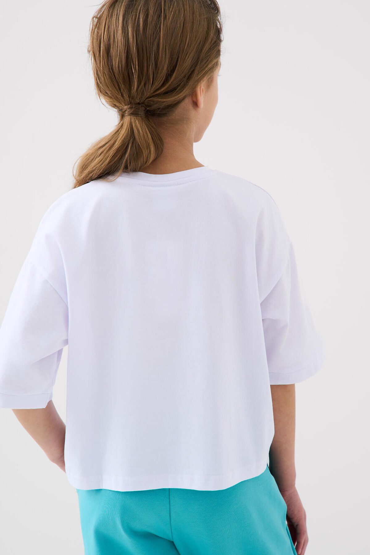 Футболка оверсайз для девочки подростка. Модель выполнена из эластичного хлопкового трикотажа джерси. На груди расположен крупный принт.