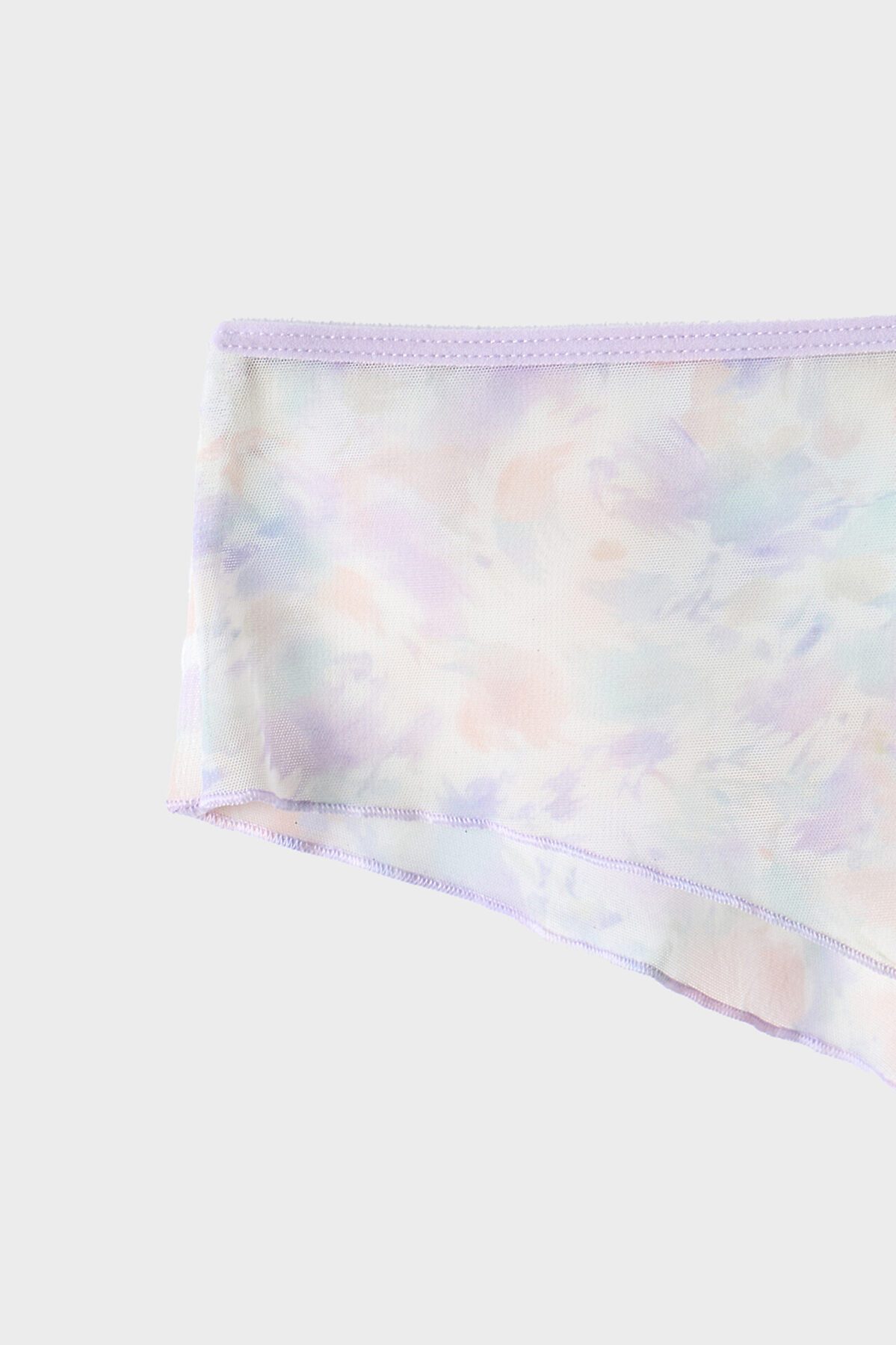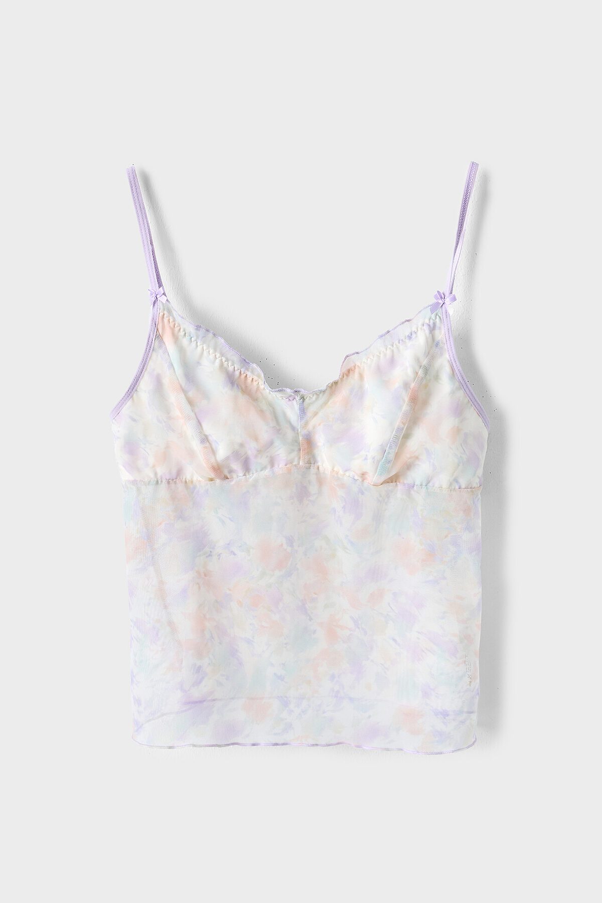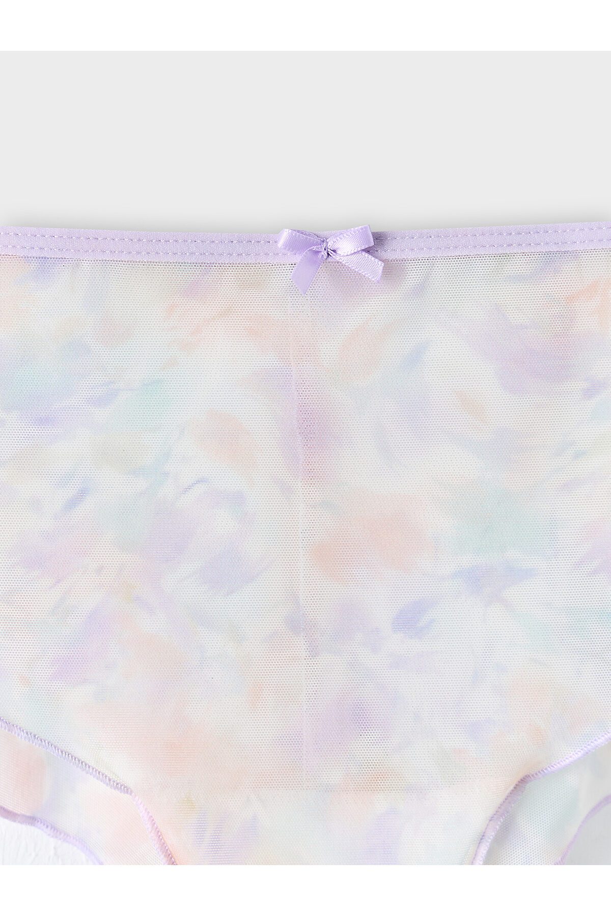 Топ женский из сетки на бретелях. Перед двухслойный с втачными деталями чашек на подкладке из кулирного полотна с эл.тесьмой (жилка WT4-6, E7112 артекс) . Горловина переда обработана контрасными нитями на микрооверлоке. Срезы пройм окантованы эл.тесьмой ловабль 15мм (Артекс F1-15, E2366) с регуляторами 8мм. Спинка цельная. Нижний срез обработан на микрооверлоке. Трусы женские , силуэт шорты , из сетки со средней посадкой. Задняя деталь с центральным швом. Подкладка ластовицы из кулирной глади отлетная по переднему срезу. Верхний срез обработан эл.тесьмой ловабль 15мм (Артекс F1-15, E2366) . Нижние срезы обработаны на микрооверлоке контрасными нитями. По заданию! Декор в виде бантика (или розочки) по центру передней детали трусов и по бретелям.