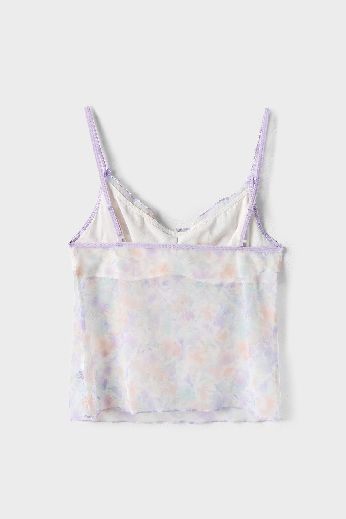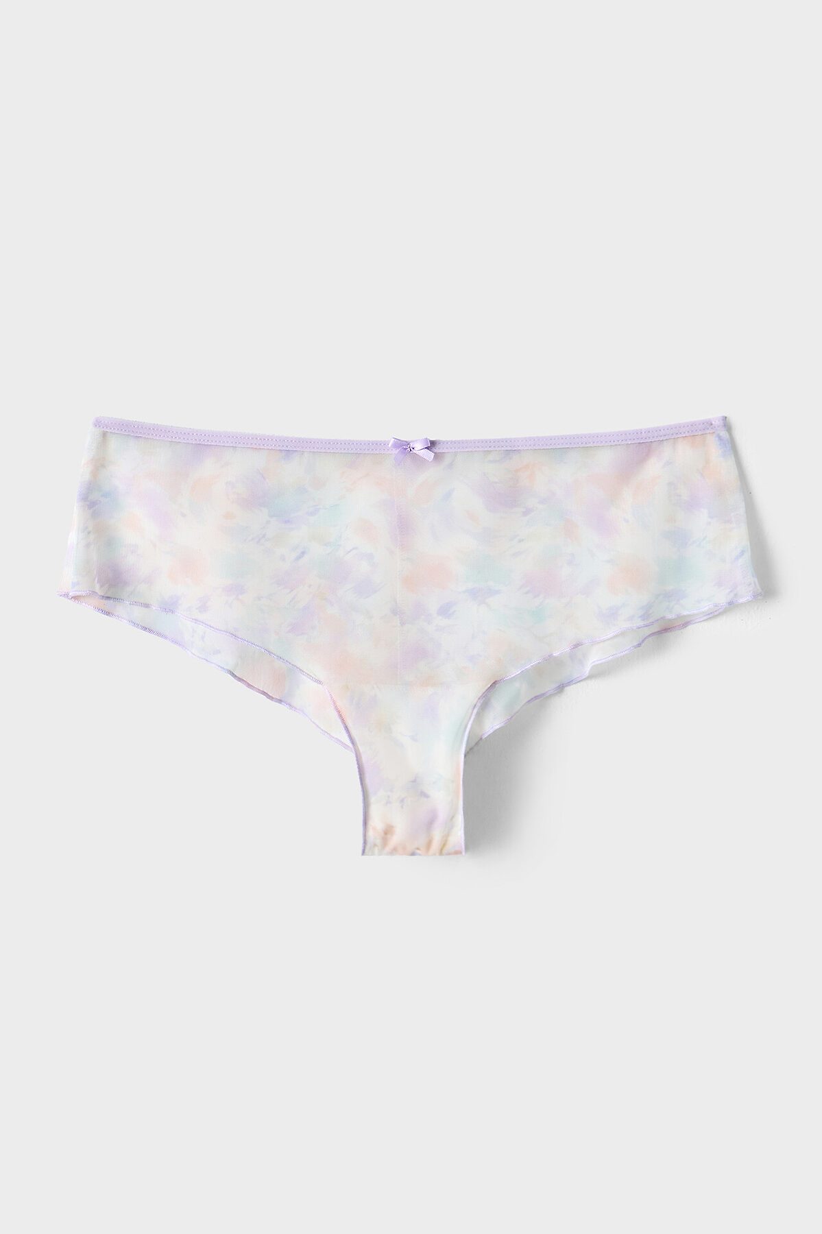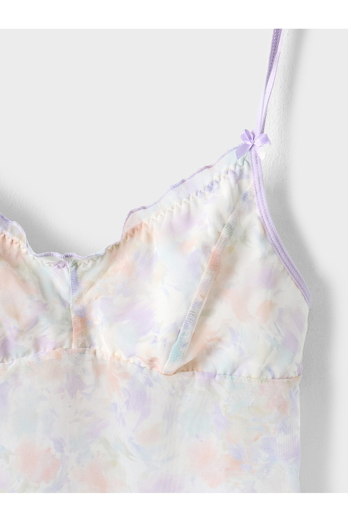 Топ женский из сетки на бретелях. Перед двухслойный с втачными деталями чашек на подкладке из кулирного полотна с эл.тесьмой (жилка WT4-6, E7112 артекс) . Горловина переда обработана контрасными нитями на микрооверлоке. Срезы пройм окантованы эл.тесьмой ловабль 15мм (Артекс F1-15, E2366) с регуляторами 8мм. Спинка цельная. Нижний срез обработан на микрооверлоке. Трусы женские , силуэт шорты , из сетки со средней посадкой. Задняя деталь с центральным швом. Подкладка ластовицы из кулирной глади отлетная по переднему срезу. Верхний срез обработан эл.тесьмой ловабль 15мм (Артекс F1-15, E2366) . Нижние срезы обработаны на микрооверлоке контрасными нитями. По заданию! Декор в виде бантика (или розочки) по центру передней детали трусов и по бретелям.