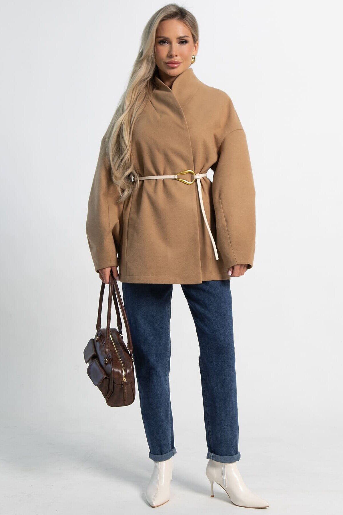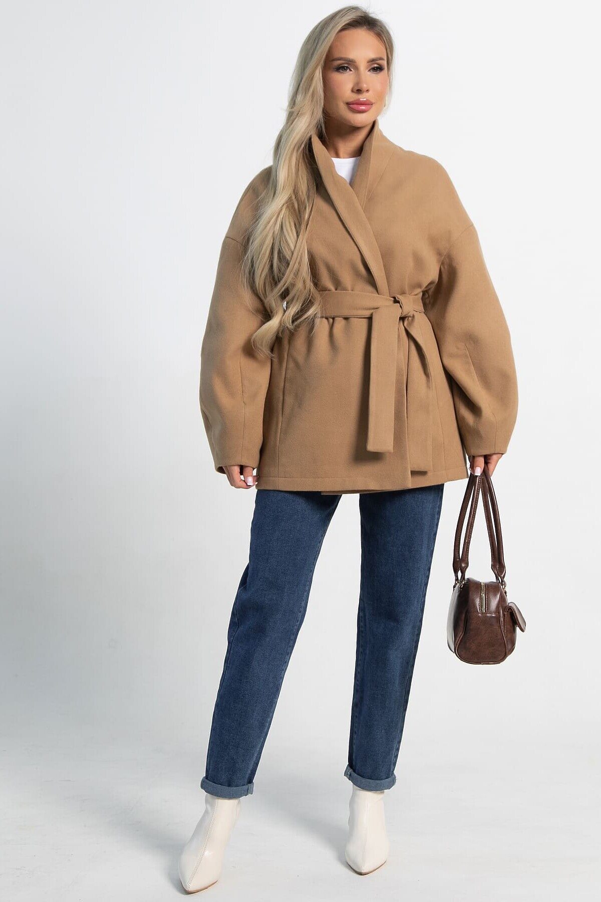 Элегантное женское пальто в изысканном бежевом цвете — ваш незаменимый спутник в межсезонье. Эта модель станет жемчужиной вашего гардероба, гармонично сочетая модный дизайн и практичность. Оно прекрасно подходит как для создания утонченных деловых луков, так и для повседневного использования. В комплекте идет пояс из основной ткани, который позволяет регулировать силуэт, подчеркивая вашу талию и придавая образу женственность. Внутренняя подкладка обеспечивает максимальный комфорт и приятные тактильные ощущения при ношении. Пальто не только согреет вас в прохладные дни, но и добавит нотку элегантности к любому вашему выходу.