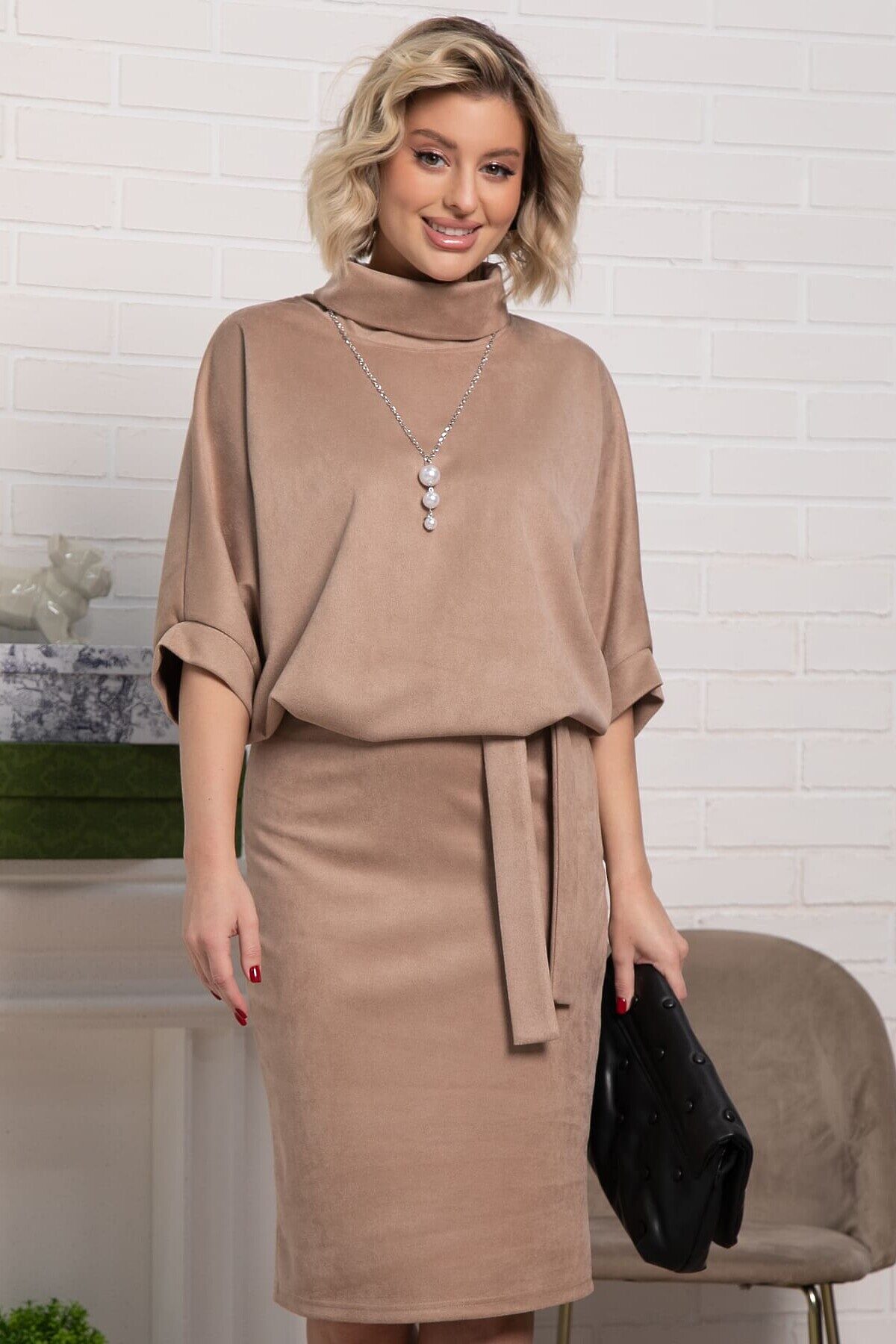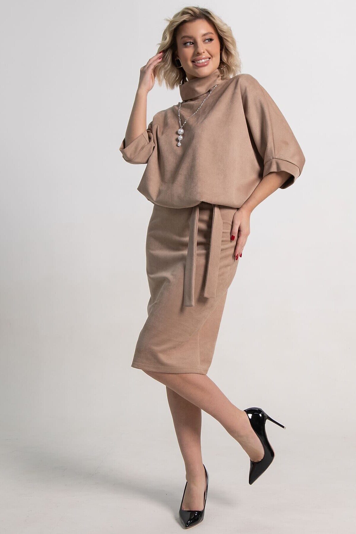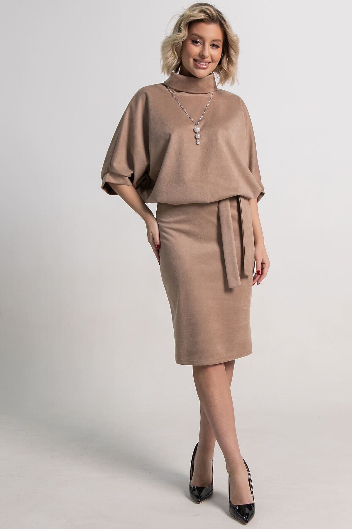 Платье из трикотажа в красивом цвете. Элегантная юбка прилегающего силуэта подчеркнёт красоту женской фигуры, а свободный верх не будет сковывать движений. Платье прекрасно подойдёт в качестве повседневного варианта и будет хорошо сочетаться как с туфлями или ботильонами, так и с кроссовками или ботинками. Благодаря своему фасону платье прекрасно справляется с задачей скрыть небольшие недостатки фигуры и подчеркнуть достоинства. Подвеска с жемчужными бусинами и пояс из основной ткани входят в комплект.