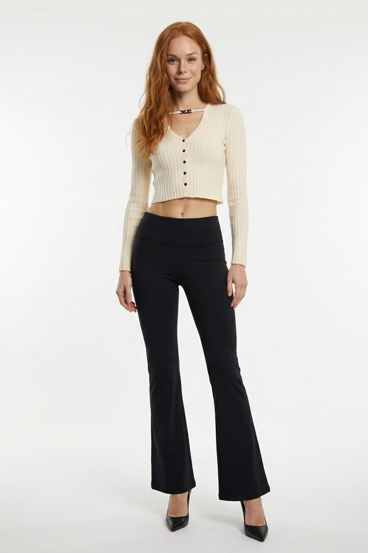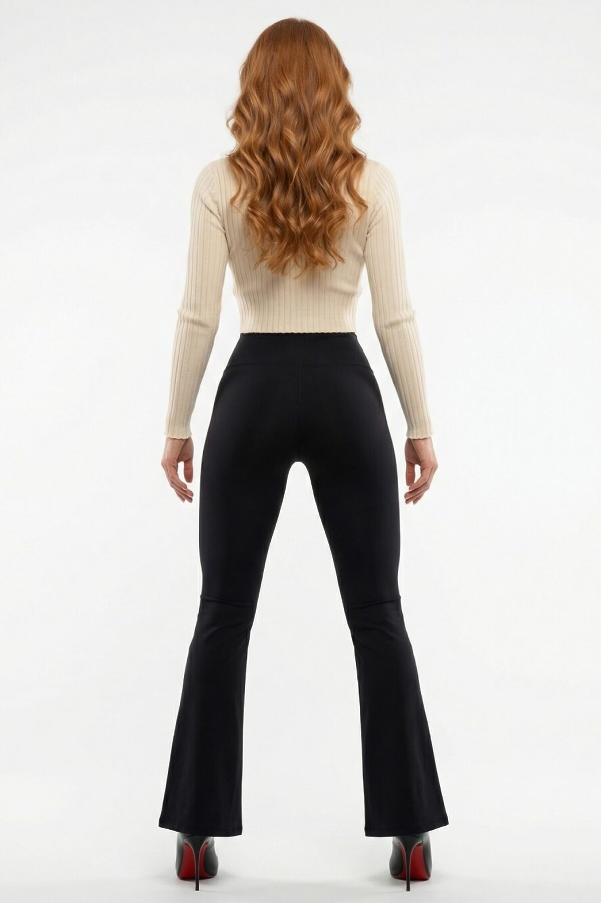 Женские легинсы расклешенные внизу — актуальная модель, сочетающая комфорт базовых легинсов и выразительный силуэт с мягким клёшем от колена. Высокая посадка формирует аккуратную линию талии и визуально вытягивает пропорции. Пояс плотно фиксируется, не скручивается и обеспечивает комфорт в течение дня. Плотный эластичный материал мягко облегает фигуру, не просвечивает и сохраняет форму после носки. Ткань гладкая, приятная к телу, подходит как для повседневных образов, так и для более собранных сочетаний с обувью на каблуке. Расклешенный низ добавляет женственности и делает силуэт более сбалансированным. Модель легко комбинируется с укороченными топами, свитерами, рубашками и жакетами. Лаконичный дизайн и универсальный черный цвет позволяют интегрировать легинсы в любую капсульную коллекцию.