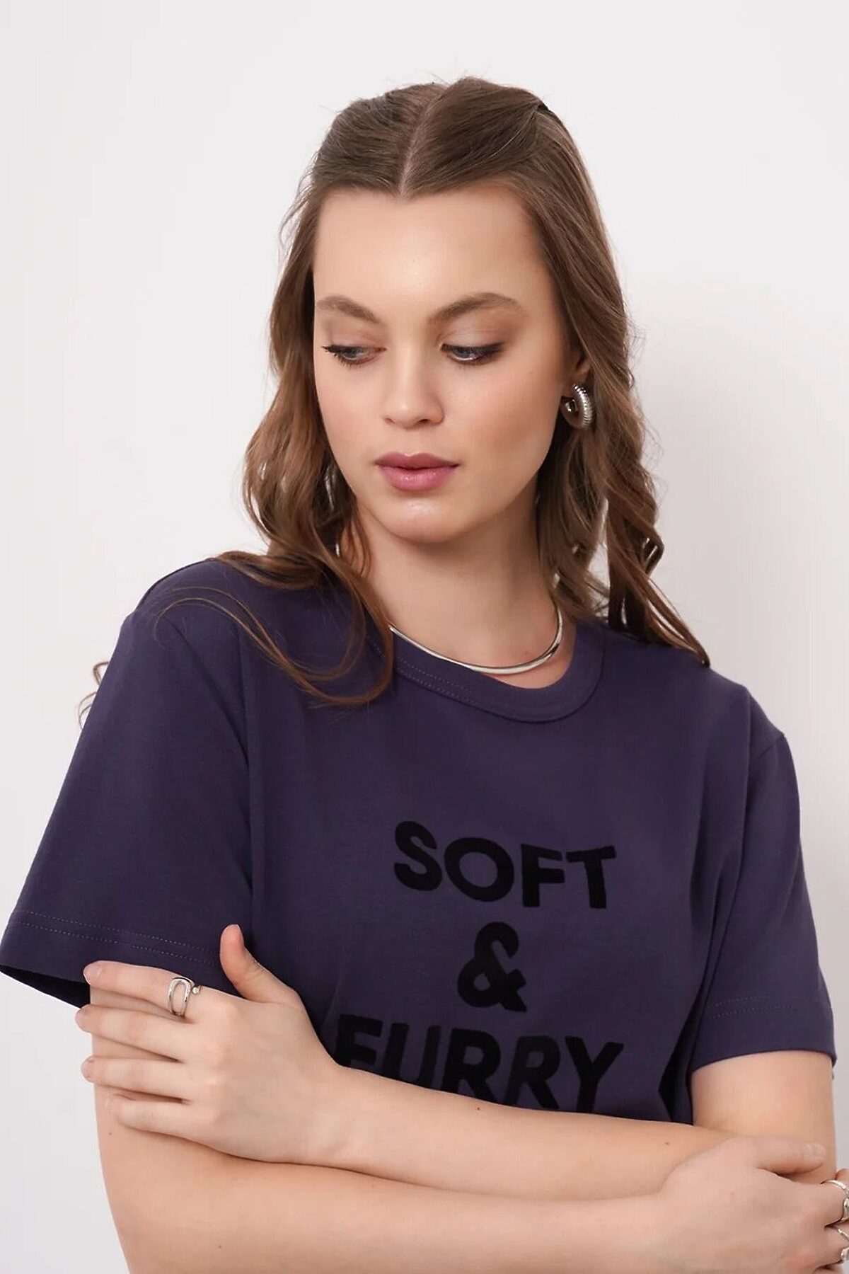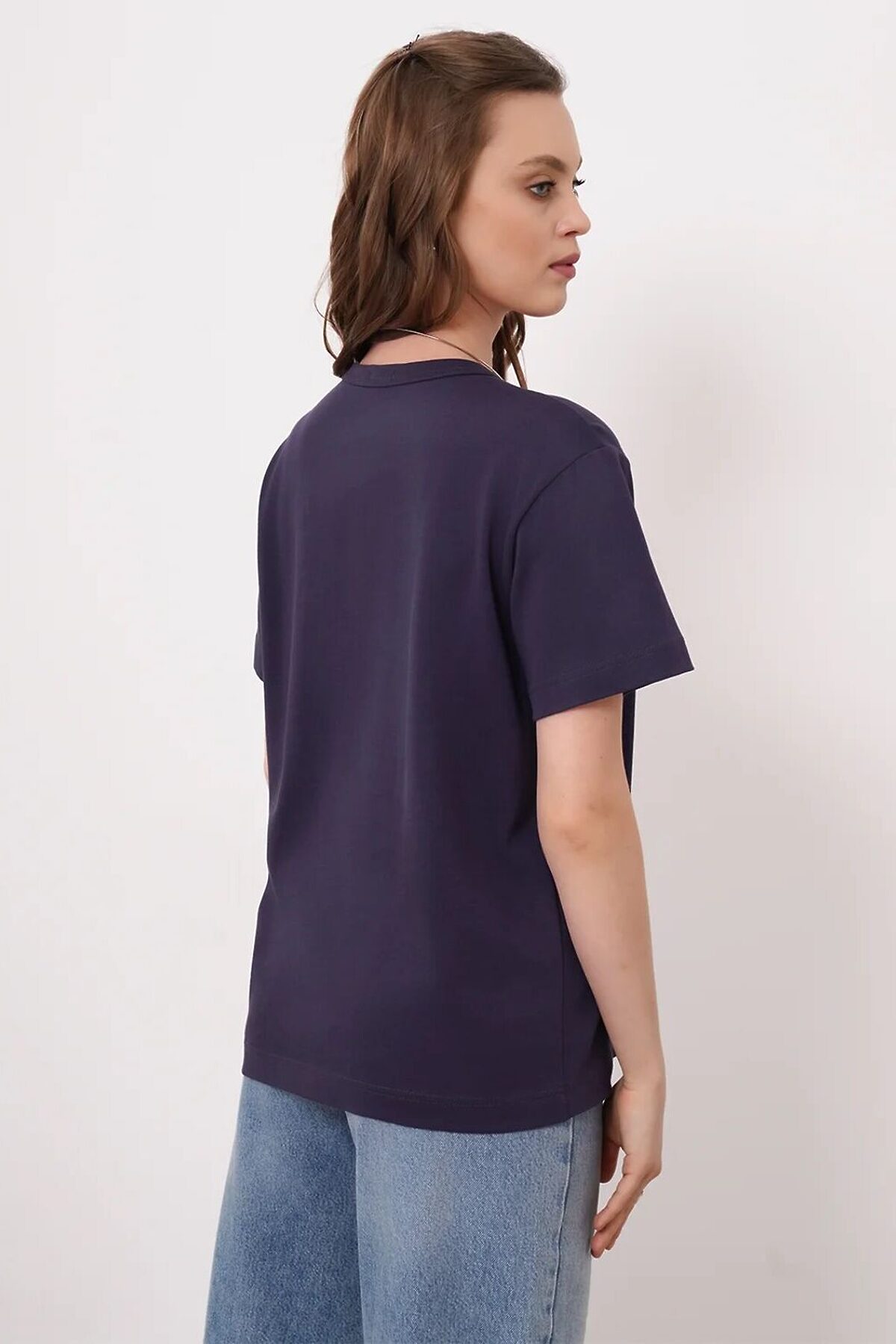 Футболка из хлопкового трикотажного полотна. Округлая горловина с окантовкой. Короткий рубашечный рукав. По переду принт пленка.
