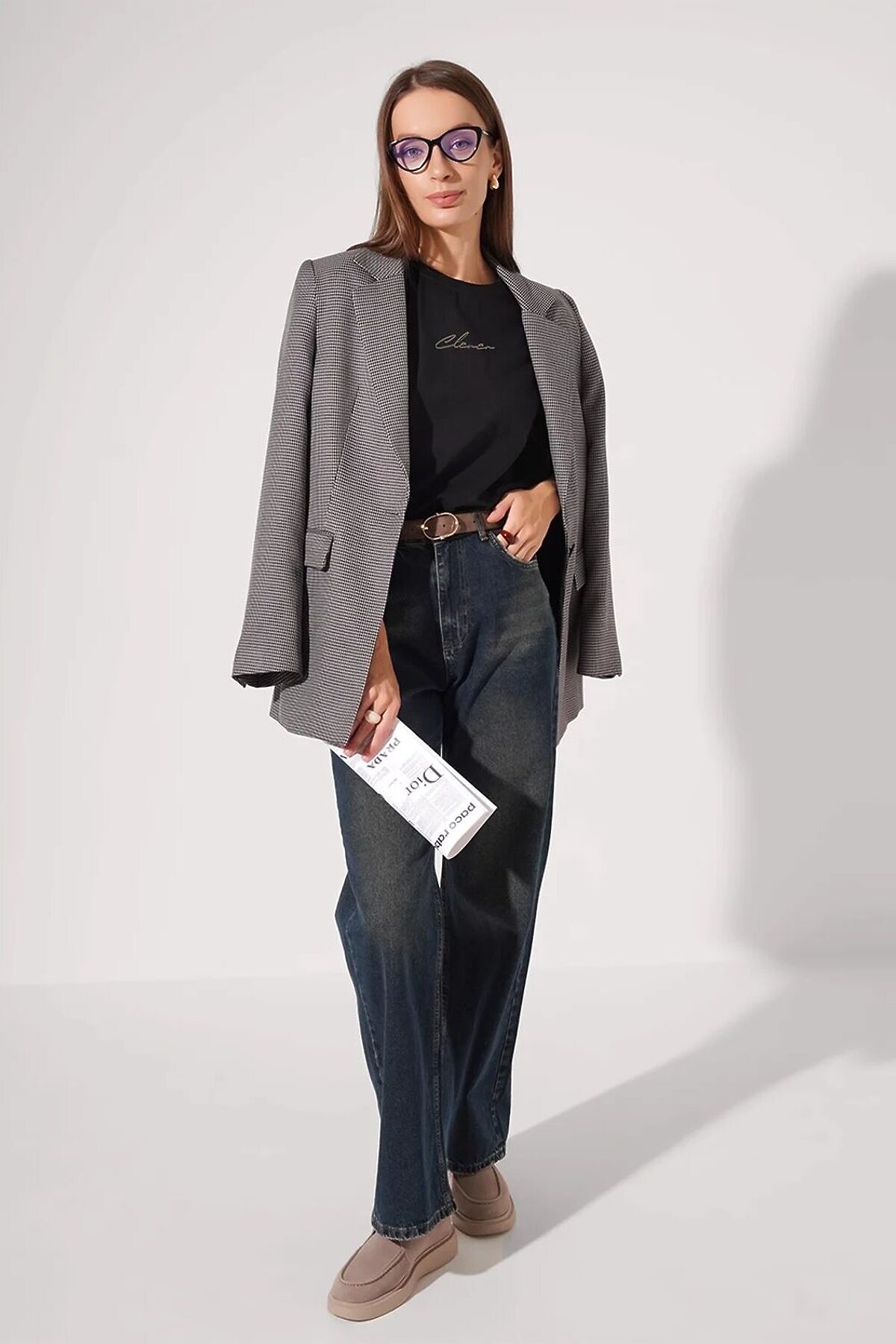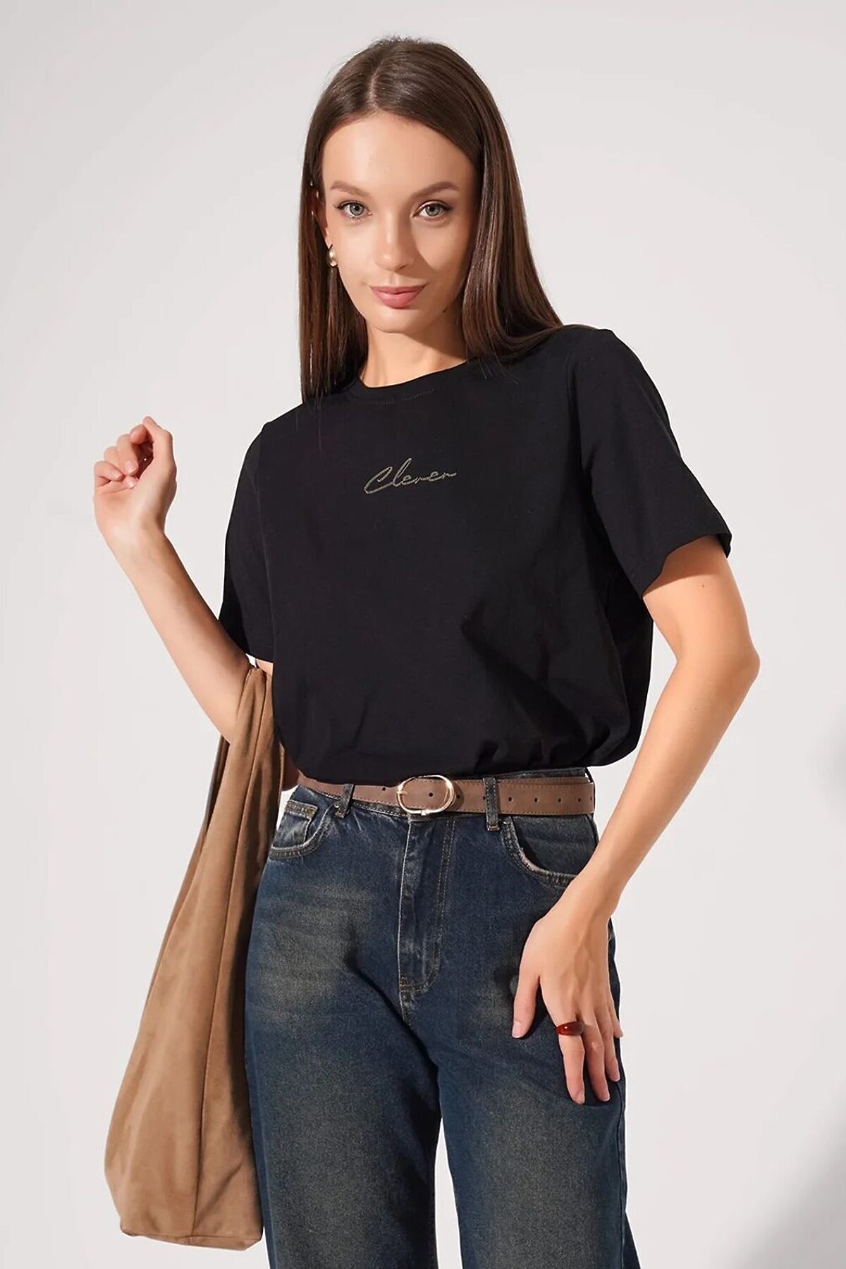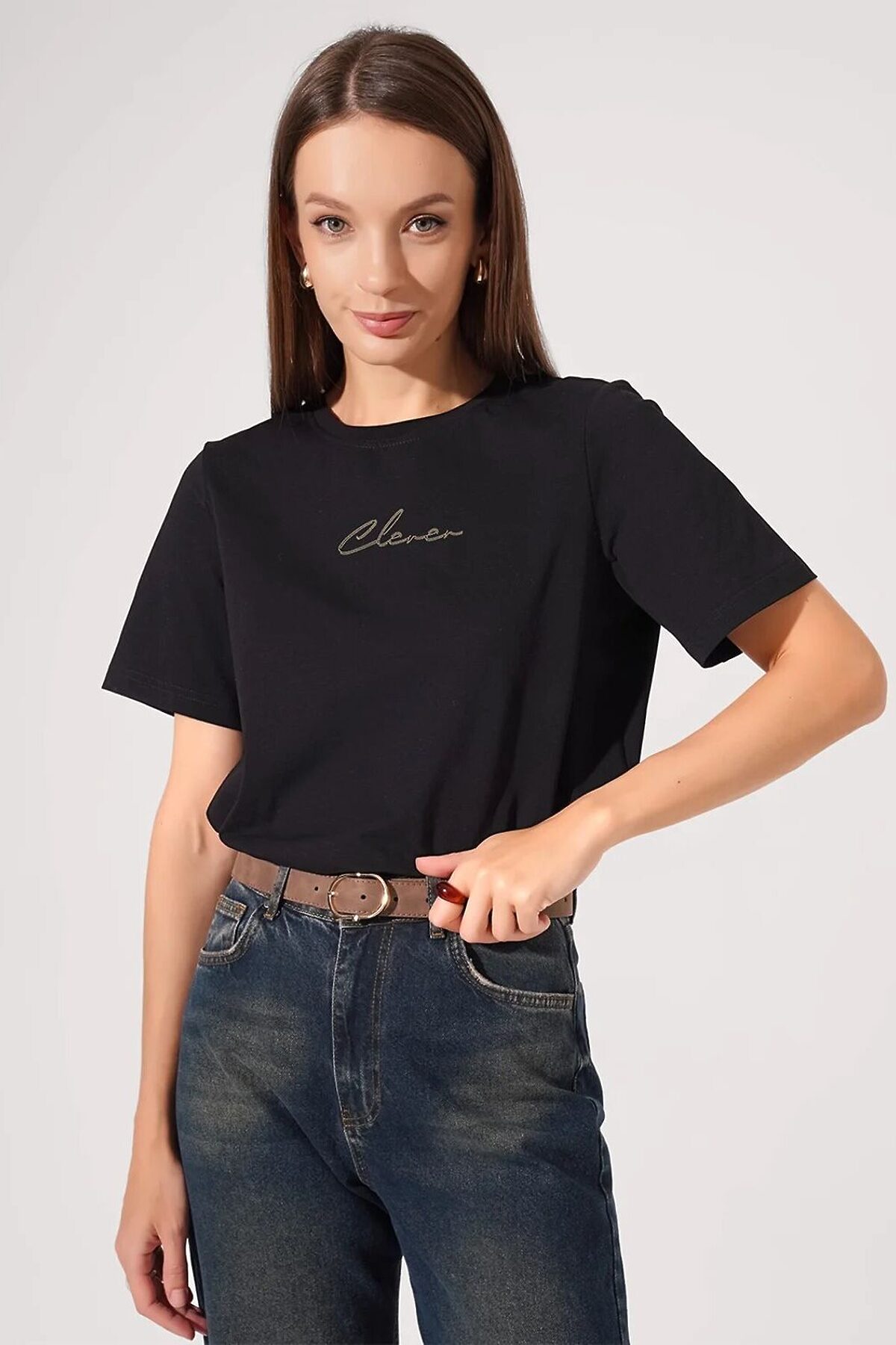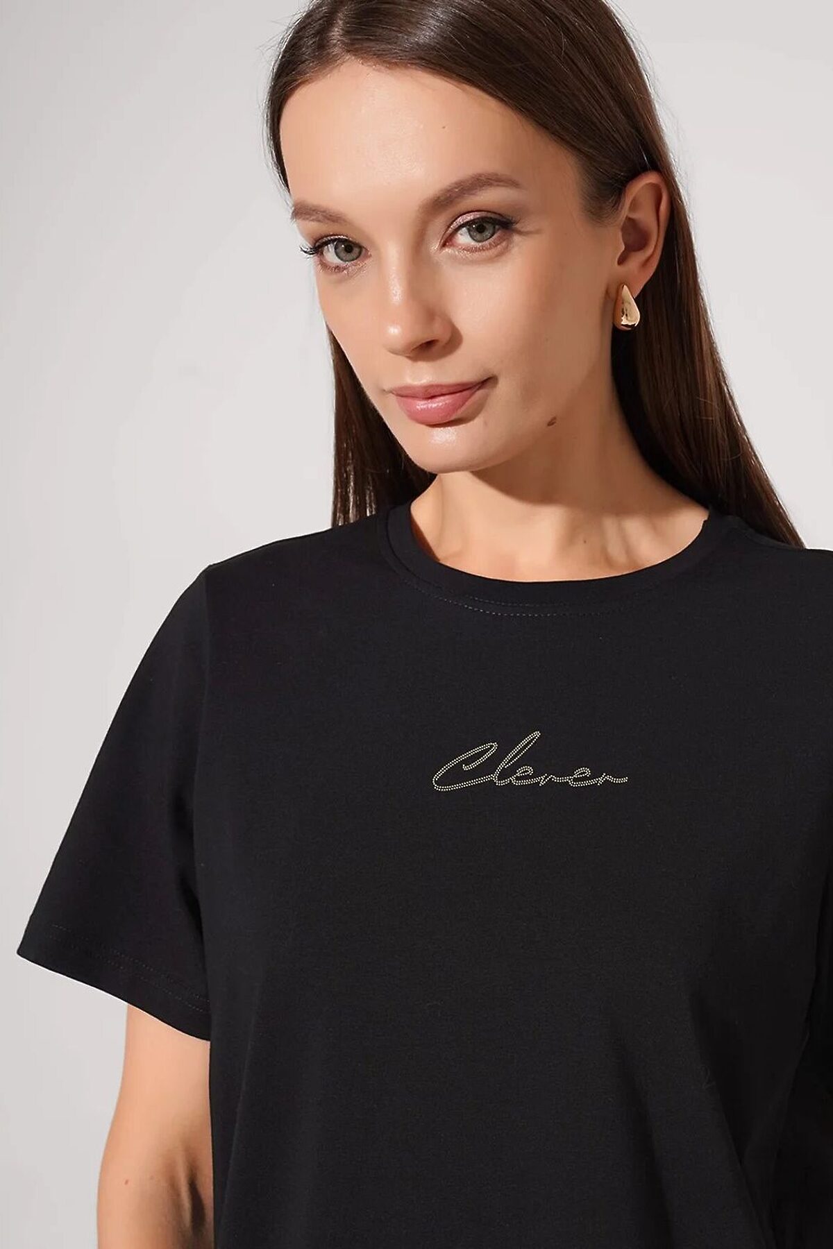 Футболка из эластичного хлопкового трикотажного полотна. Прямой крой и округлая горловина с обтачкой. Короткий втачной рукав. Спереди термопайетки.