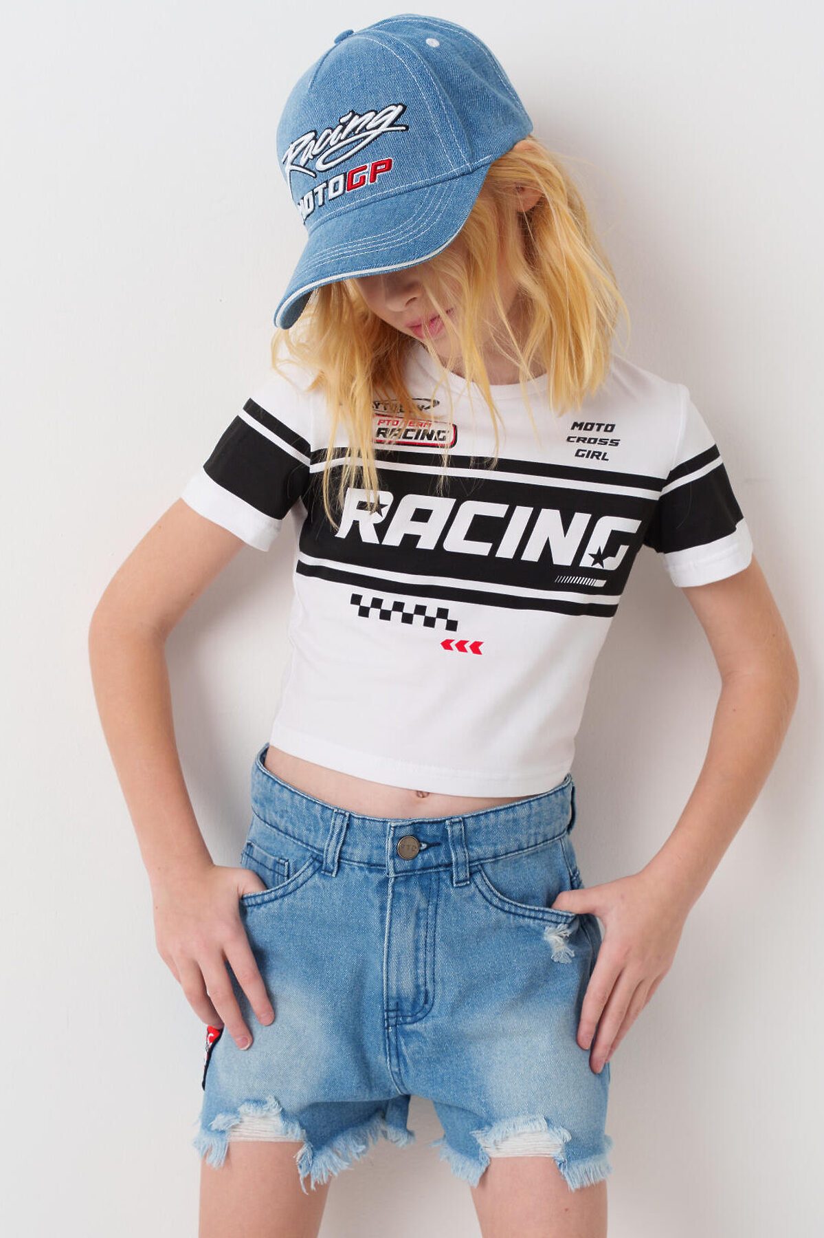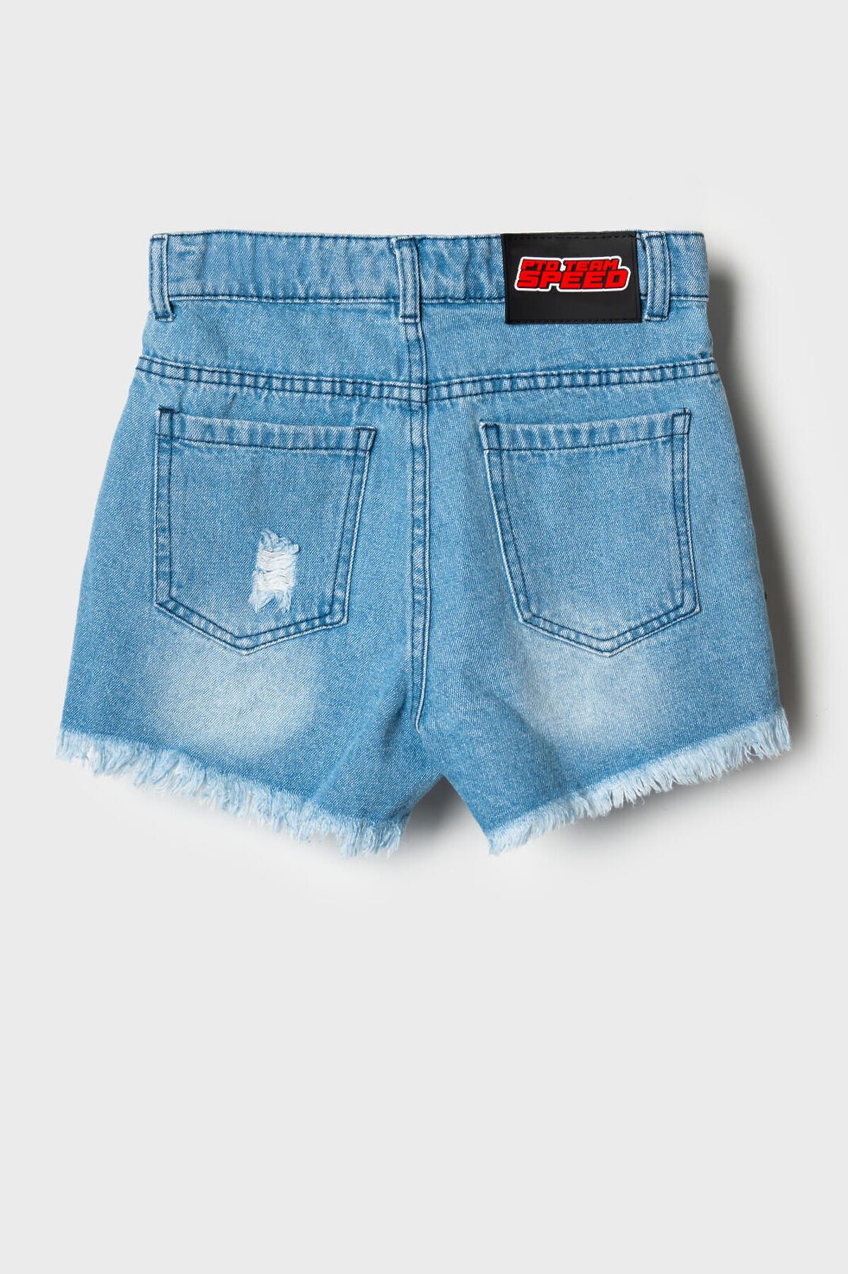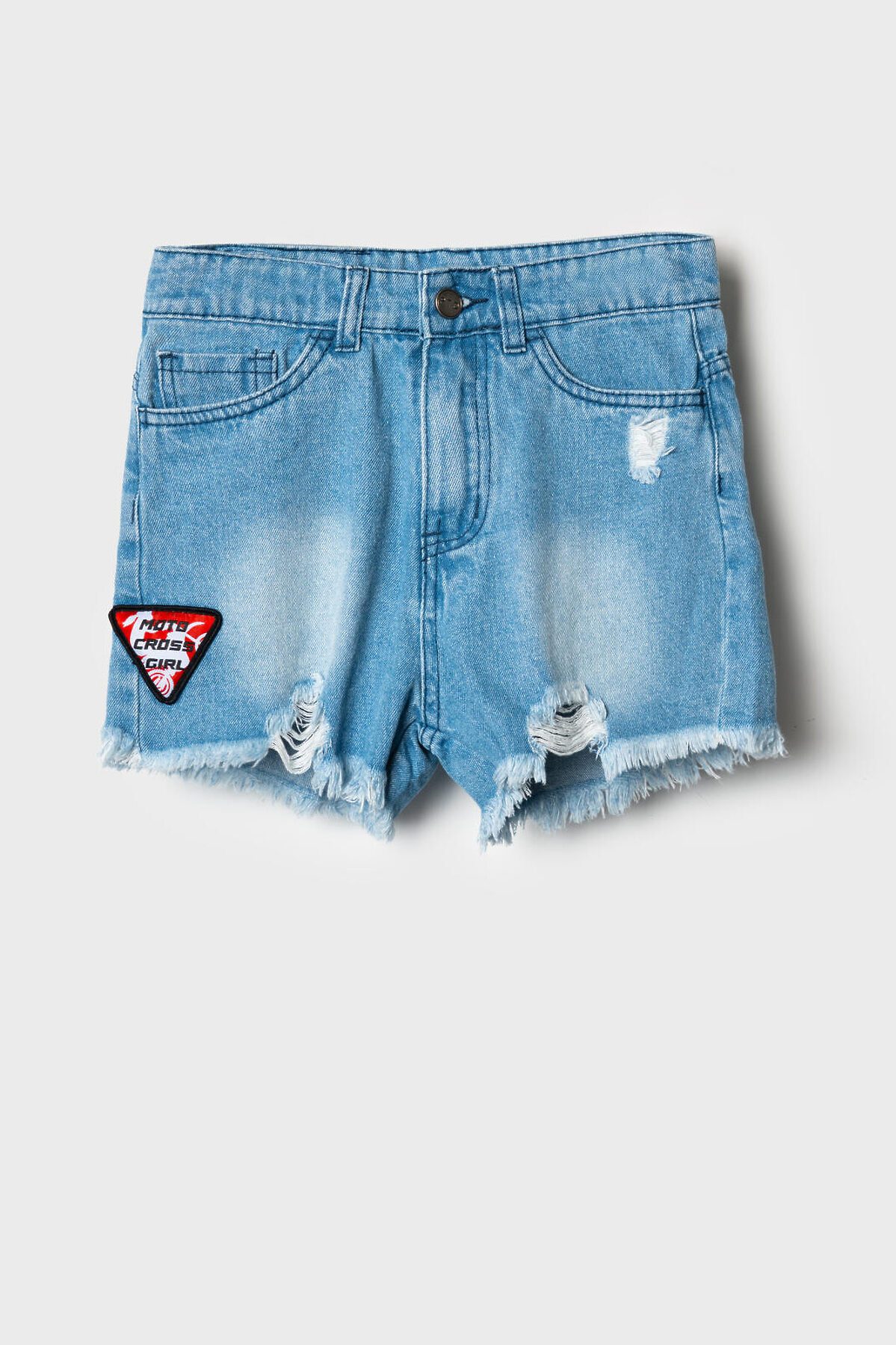 Джинсовые шорты для девочки подростка. Шорты короткие, с модным рваным краем и потертостями. Спереди — карманы и патч, сзади — два накладных кармана и силиконовая нашивка. Шорты застегиваются на болт и молнию. В поясе предусмотрена внутренняя регулировка.