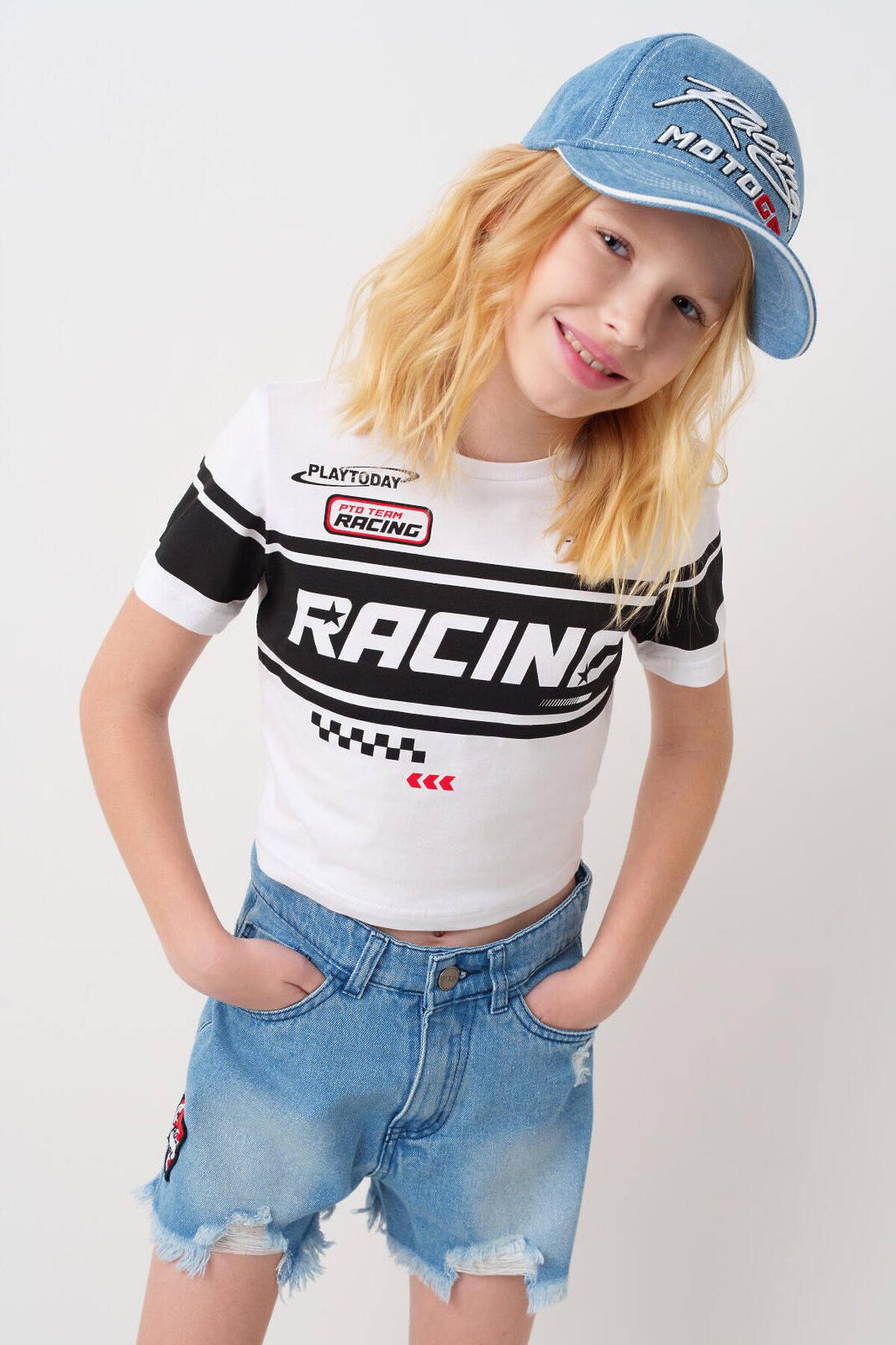 Шорты текстильные джинсовые для девочек PLAYTODAY, синий
